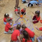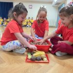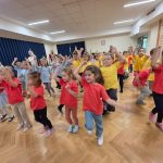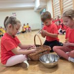 Dnia 3 października w naszym przedszkolu odbyło się radosne świętowanie Dnia ziemniaka. Dzieci miały okazję poznać historię ziemniaka – skąd pochodzi i jak trafił do Polski. Następnie przyszedł czas na ruch i zabawę. Przedszkolaki z zaangażowaniem uczestniczyły w tanecznej zumbie,  która rozgrzała wszystkich do dalszych aktywności. Podczas obchodów naszego ziemniaczanego święta odbyły się różnorodne konkurencje z ziemniakami i warzywami m.in. sadzimy i zbieramy ziemniaki, bieg z ziemniakiem na łyżce, łuskanie grochu. Nie zabrakło również zabaw sensorycznych, takich jak ukryte warzywa, zgadnij jaki to owoc – zabawy pobudzająca zmysł dotyku, węchu i smaku. Na sam koniec dzieci stworzyły piękne prace kolorując kredami, pisakami i stemplując farbami portrety Pana i Pani Bulwy. To był dzień pełen radości, ruchu, nauki i wspólnej zabawy, który zakończył się pysznym obiadem z pieczonymi ziemniakami w roli głównej.