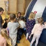 23 października Dzieci wzięły udział w seansie edukacyjnym w mobilnym planetarium „Orbitek” pod tytułem „Świat przyrody”. Podczas zajęć przedszkolaki miały okazję poznać różnorodne zjawiska przyrodnicze oraz ciekawostki o świecie roślin i zwierząt. Seans był prowadzony w atrakcyjnej, multimedialnej formie, co wzbudziło duże zainteresowanie i zachwyt dzieci. Zajęcia rozwijały ciekawość poznawczą, wyobraźnię oraz chęć odkrywania przyrody w sposób interaktywny i angażujący. Dziękujemy za świetną zabawę!