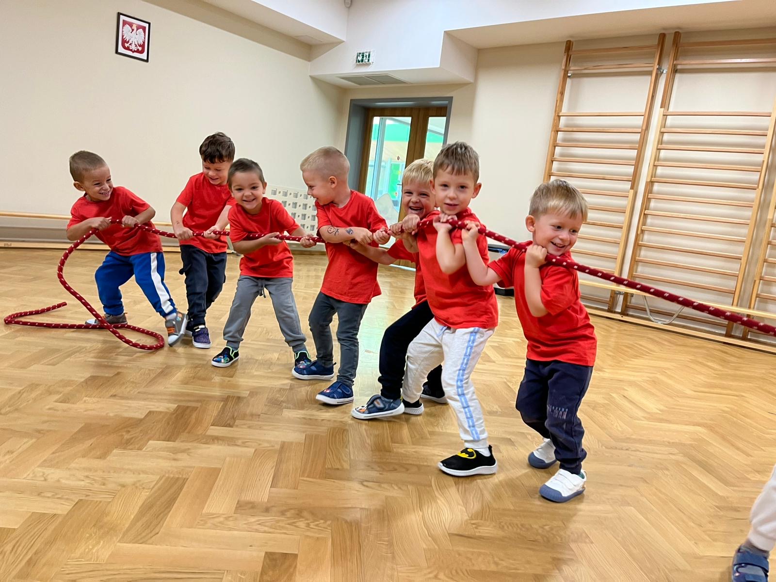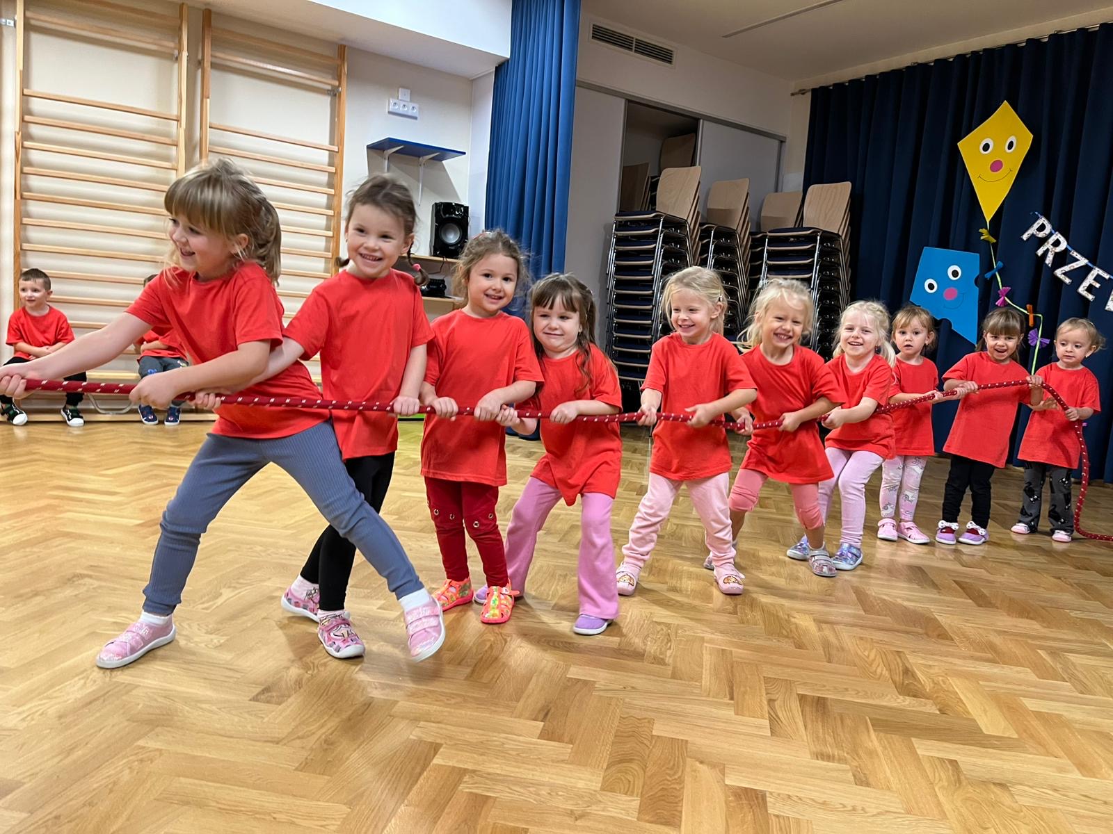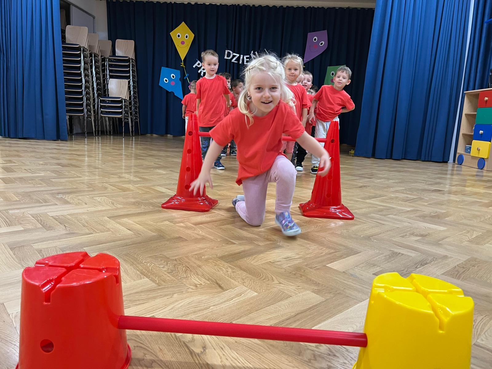 26 września obchodziliśmy Europejski Dzień Sportu – radosne święto aktywności fizycznej i zdrowego stylu życia. Celem wydarzenia było zachęcenie dzieci do ruchu, współpracy oraz kształtowanie pozytywnych nawyków związanych z aktywnością fizyczną już od najmłodszych lat. Przedszkolaki z wielkim zaangażowaniem uczestniczyły w różnorodnych zabawach ruchowych i grach zespołowych. Dzieci pokonywały tor przeszkód, brały udział w przeciąganiu liny, tańczyły i bawiły się przy muzyce. Dużo radości sprawiły również wspólne zabawy z chustą animacyjną, które sprzyjały integracji i współdziałaniu w grupie. Był to dzień pełen uśmiechu, energii i dobrej zabawy!