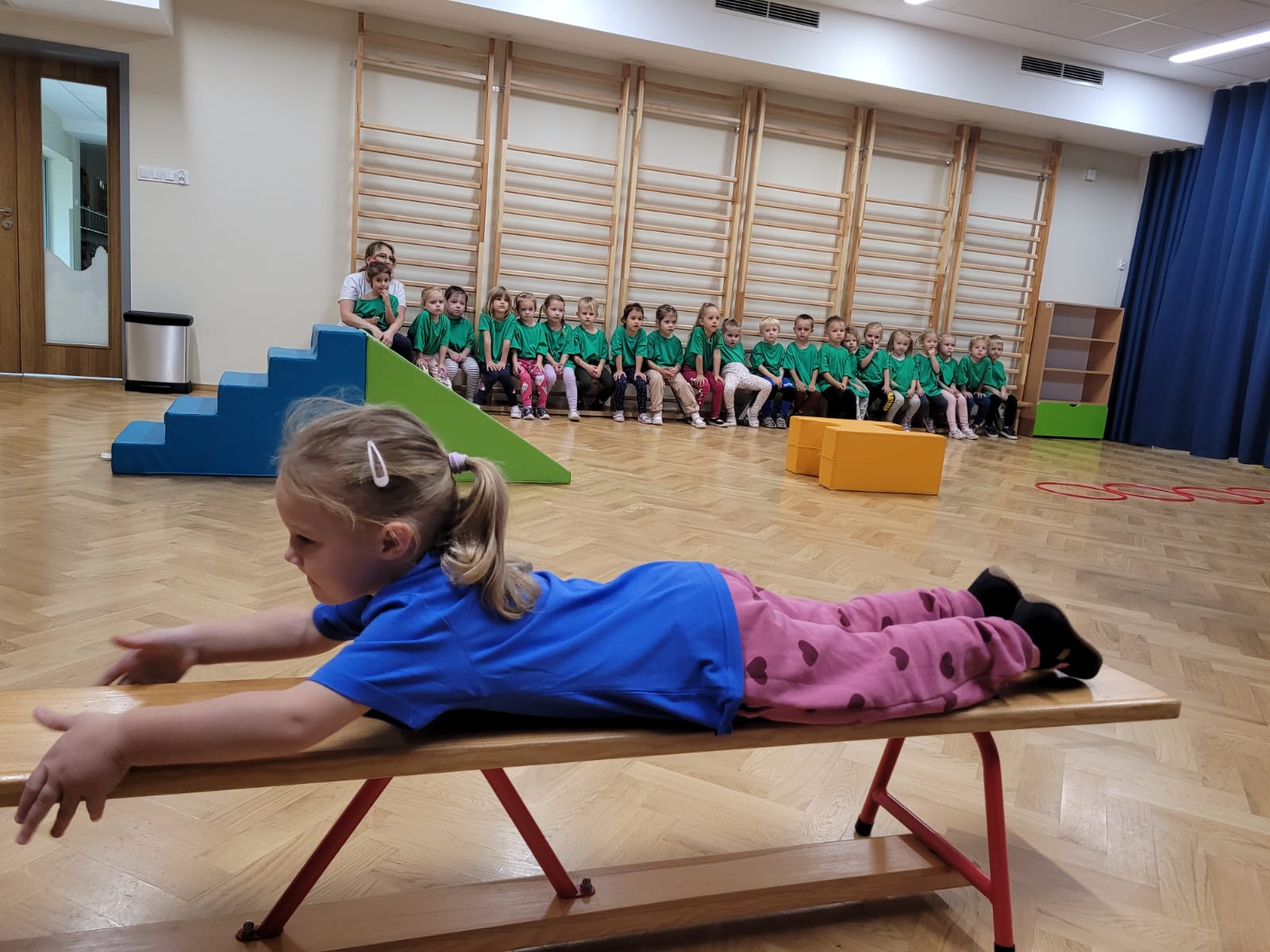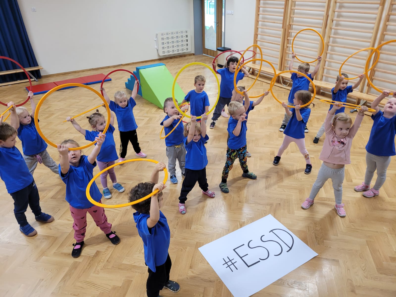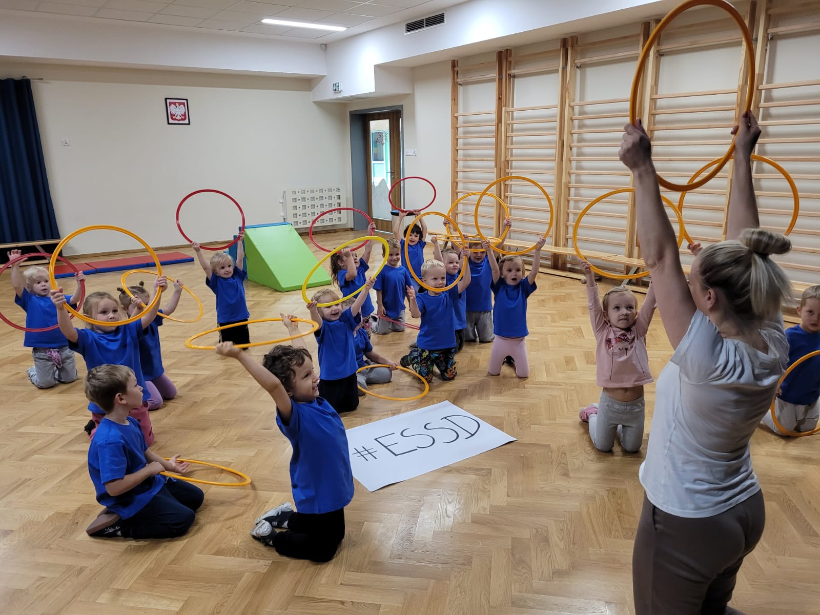 W piątek 27  września nasza grupa włączyła się w obchody „Europejskiego Dnia Sportu Szkolnego”. Celem tej międzynarodowej inicjatywy jest promowanie wśród dzieci aktywności fizycznej. W ramach ESSD dzieci wraz z kolegami z grupy „Misiów” zapoznały się z nazwą wydarzenia oraz porozmawiały z nauczycielem o tym dlaczego ruch i aktywność fizyczna jest ważna w codziennym życiu. Następnie przebrały się w stroje gimnastyczne, wykonały krótką rozgrzewkę i wzięły udział w przygotowanym dla nich torze przeszkód. Po wykonaniu wszystkich zadań dzieci wykonały ćwiczenia rozciągające. Ten dzień miał na celu rozwijać sprawność fizyczną dzieci i zachęcić je do aktywności fizycznej.