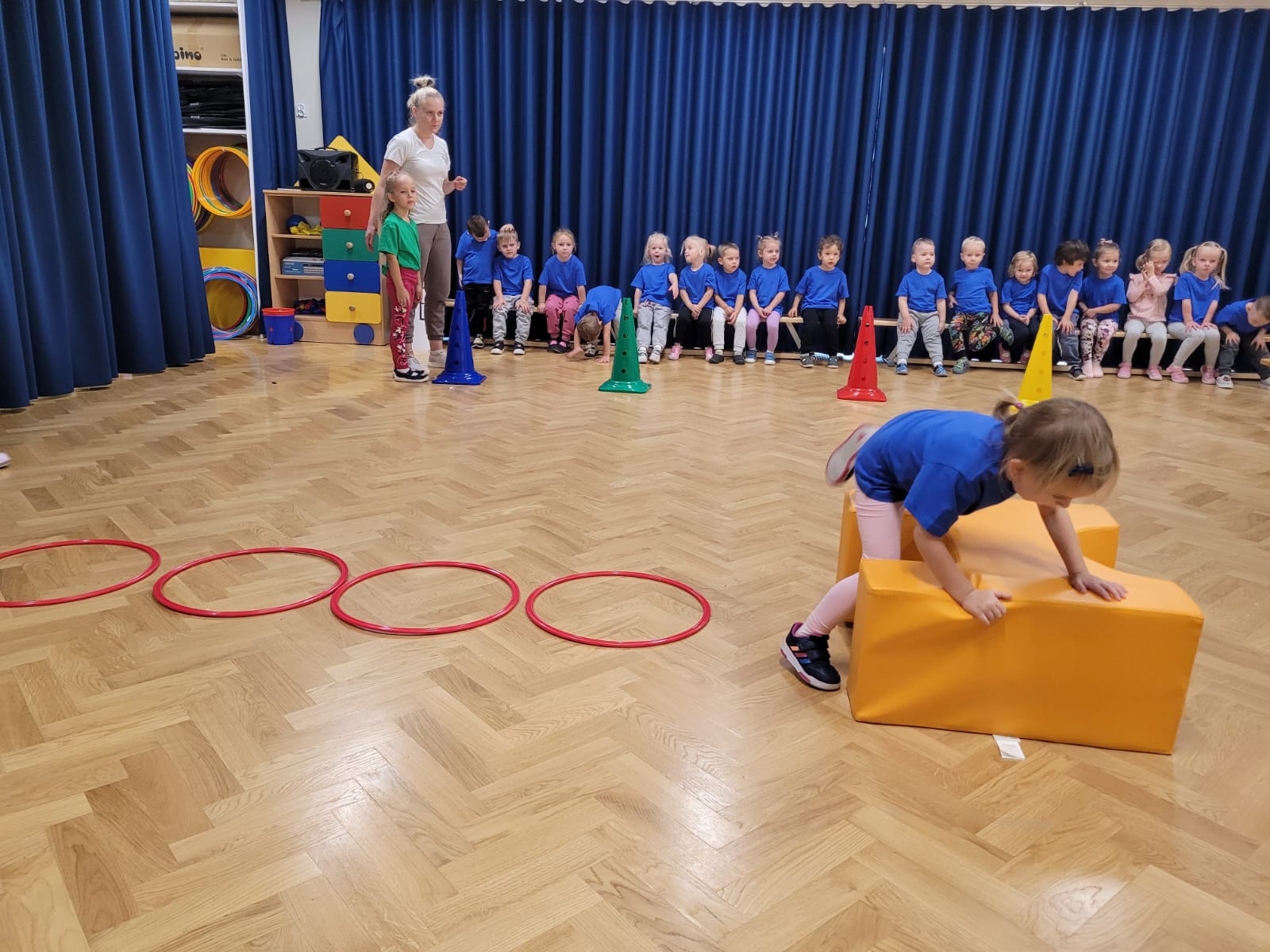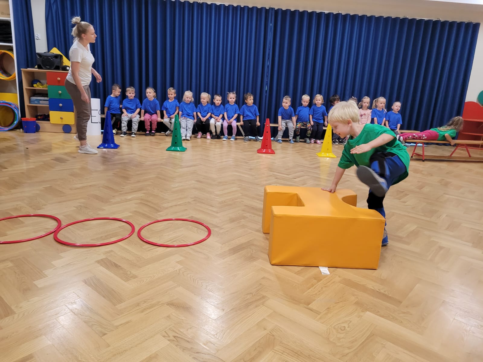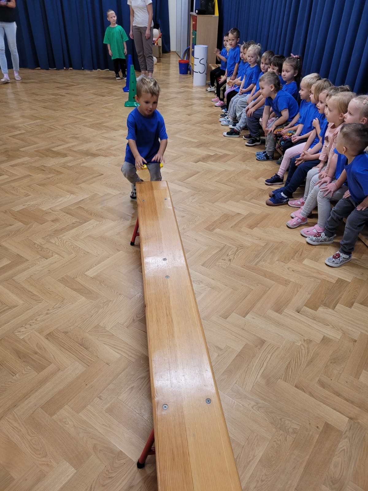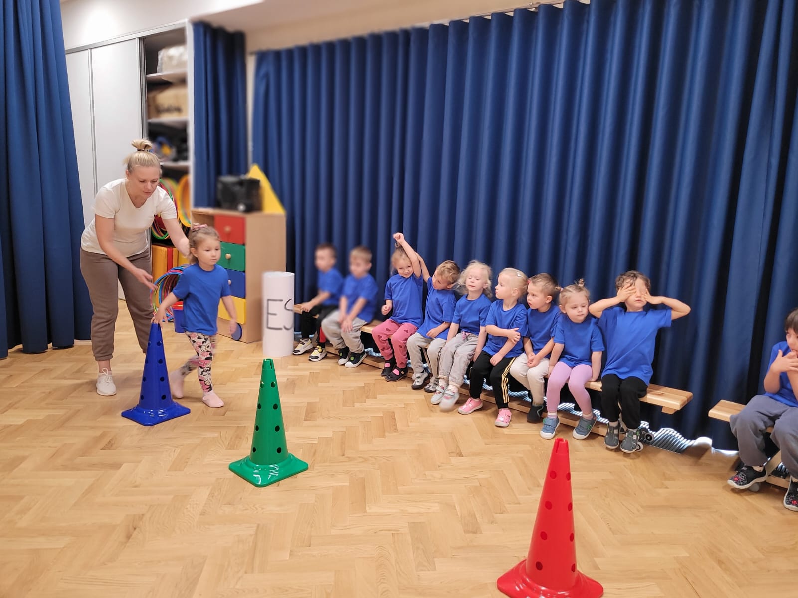 W piątek 27  września nasza grupa włączyła się w obchody „Europejskiego Dnia Sportu Szkolnego”. Celem tej międzynarodowej inicjatywy jest promowanie wśród dzieci aktywności fizycznej. W ramach ESSD dzieci wraz z kolegami z grupy „Misiów” zapoznały się z nazwą wydarzenia oraz porozmawiały z nauczycielem o tym dlaczego ruch i aktywność fizyczna jest ważna w codziennym życiu. Następnie przebrały się w stroje gimnastyczne, wykonały krótką rozgrzewkę i wzięły udział w przygotowanym dla nich torze przeszkód. Po wykonaniu wszystkich zadań dzieci wykonały ćwiczenia rozciągające. Ten dzień miał na celu rozwijać sprawność fizyczną dzieci i zachęcić je do aktywności fizycznej.