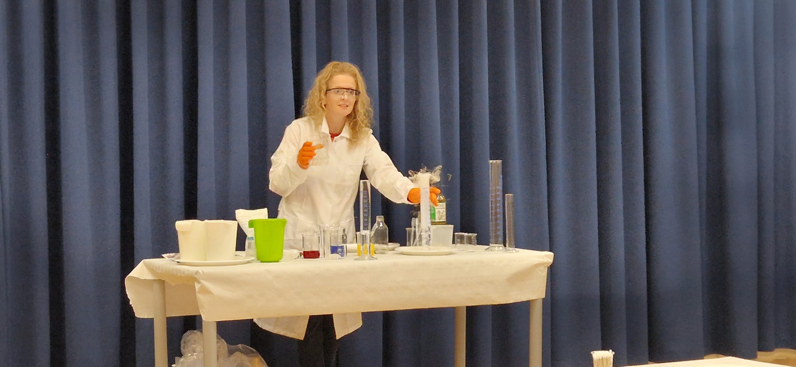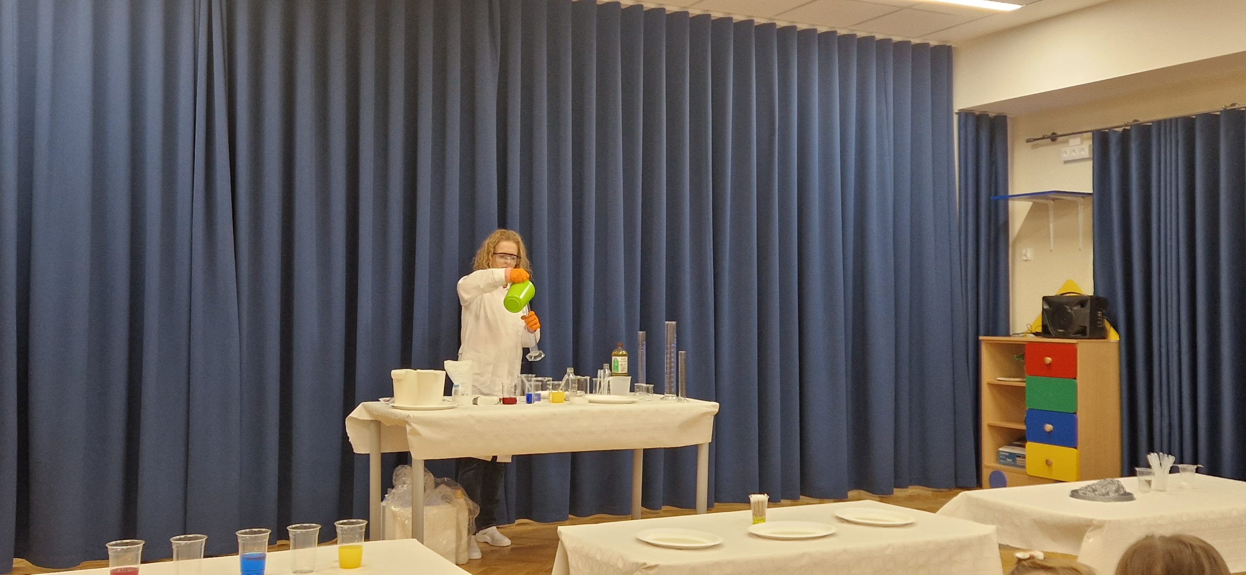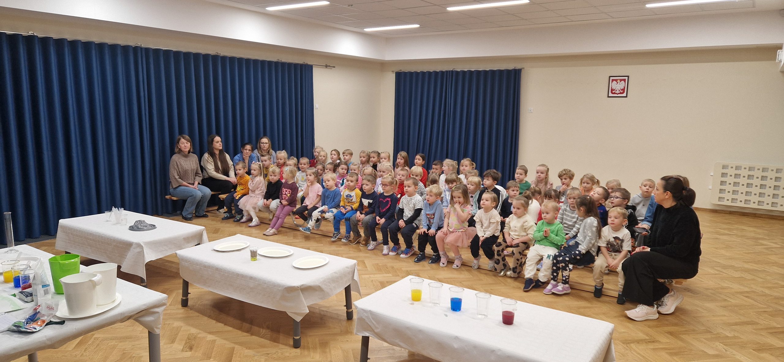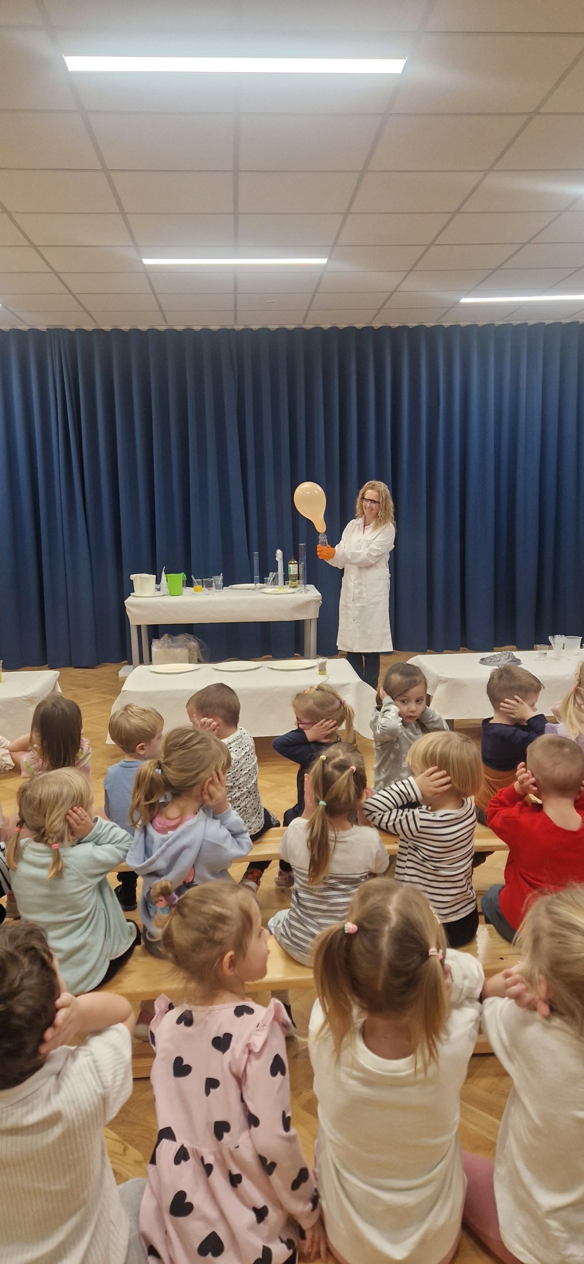 14 listopada grupa III wzięła udział w bardzo ciekawych zajęciach chemicznych, które poprowadziła Pani chemiczka – mama naszych kolegów z przedszkola. Dzieci z dużym zainteresowaniem obserwowały przebieg zajęć oraz brały aktywny udział w przeprowadzanych doświadczeniach. Miały okazję zaobserwować i poznać odpowiedź na kilka pytań: Jak zachowuje się suchy lód, który może poparzyć skórę i czym on się różni od zwykłych kostek lodu. Jak można zrobić wulkan za pomocą sody oczyszczonej? Dlaczego kolory na mleku rozpływają się po powierzchni mleka pod wpływem płynu do naczyń oraz jak łączyć kolory ze sobą za pomocą papierowych pasków. Dowiedziały się, że chemia towarzyszy nam na co dzień i jest związana z różnymi czynnościami wykonywanymi w domu. Poznały znaczenie oznaczeń na produktach chemicznych i uświadomiły sobie, że niektóre z nich mogą być niebezpieczne i nie wolno dopuszczać ich do kontaktu ze skórą. Uczestnictwo w zajęciach wywołało wiele emocji i zachwytu. Dziękujemy!