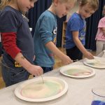 Przy pomocy mleka, barwników i odrobiny płynu do naczyń powstały barwne, wirujące obrazy. Dzieci obserwowały, jak kolory magicznie się rozprzestrzeniają, tworząc niepowtarzalne wzory.