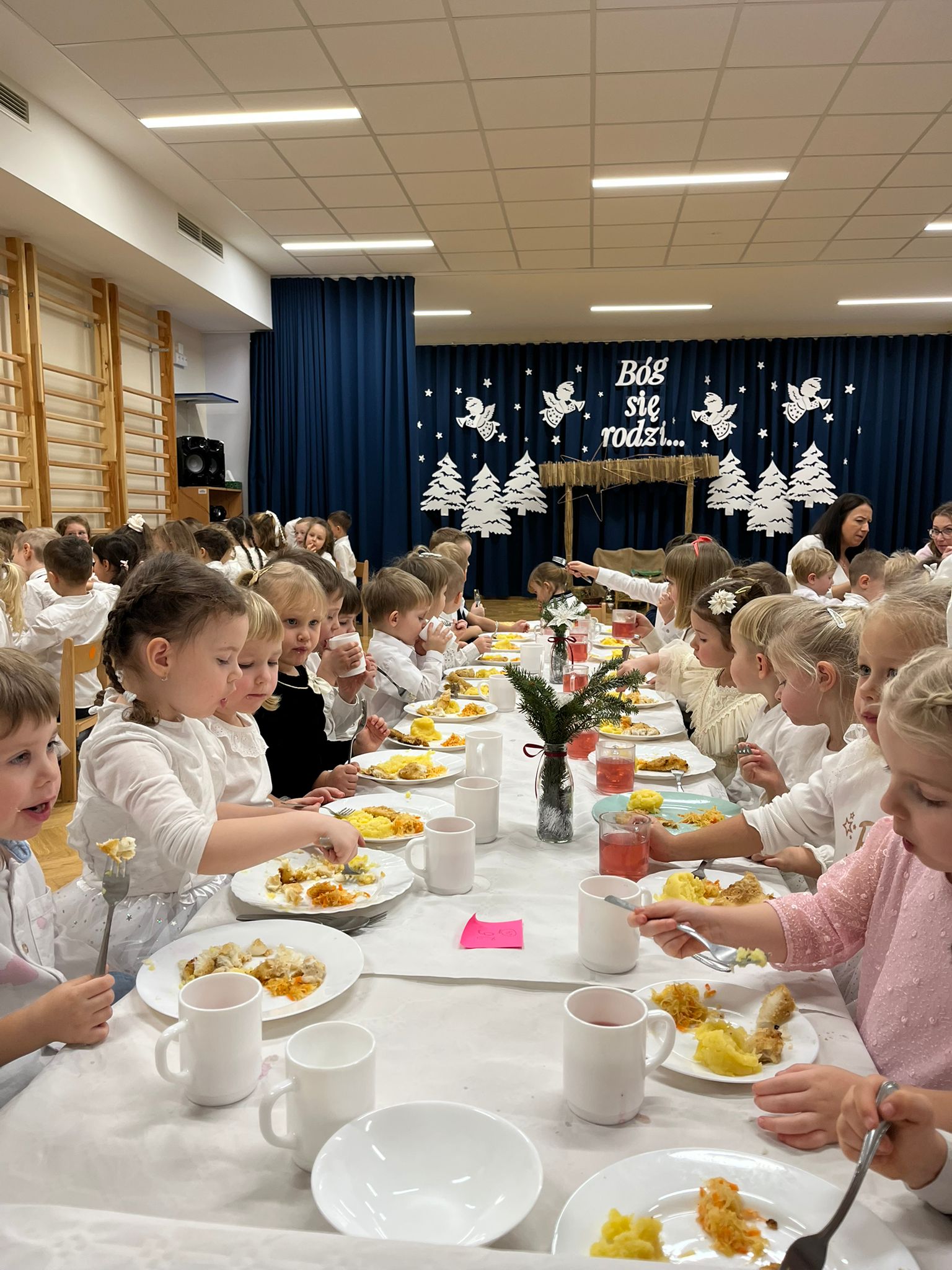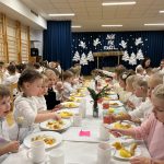 19 grudnia W naszym przedszkolu odbyło się spotkanie wigilijne, podczas którego dzieci z grupy Lisków zaprezentowały piękny ,świąteczny program artystyczny. Wspólne kolędowanie i rozmowy przy wigilijnym stole stworzyły ciepłą, radosną atmosferę. Spotkanie było okazją do pielęgnowania tradycji bożonarodzeniowych oraz wspólnego przeżywania magicznego czasu Świąt.