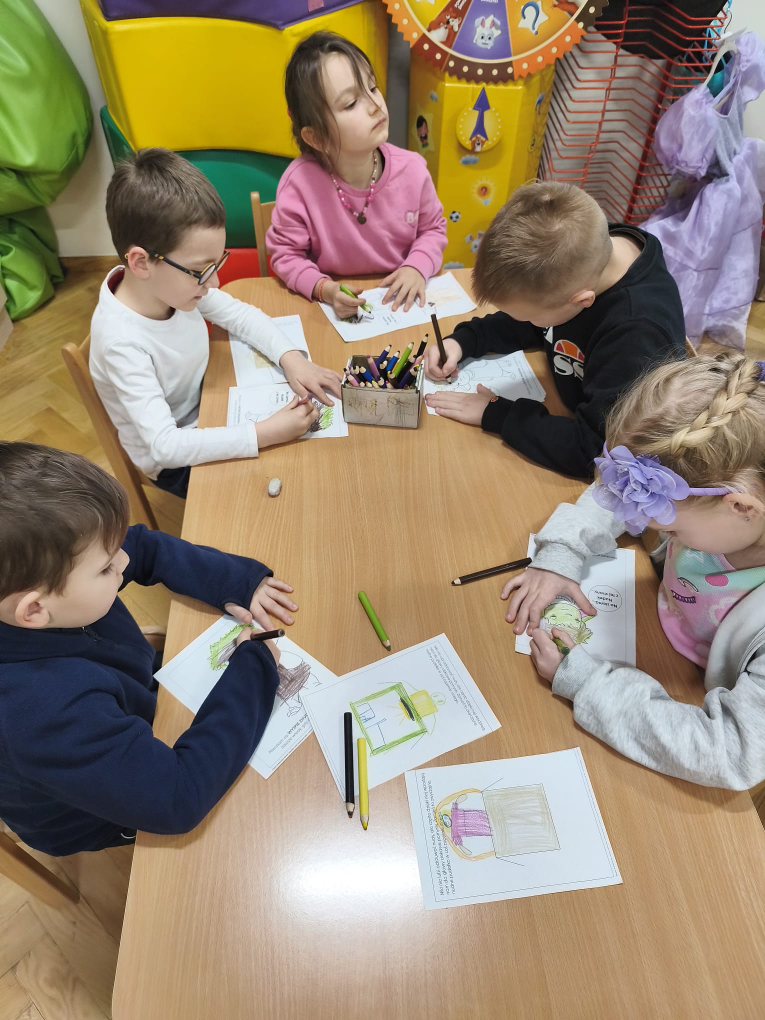 Podczas zajęć dzieci wysłuchały opowieści o Nudku, rozmawiały o sytuacjach, w których odczuwają znudzenie oraz dzieliły się własnymi sposobami na spędzanie wolnego czasu. Zajęcia zachęcały do samodzielnego poszukiwania pomysłów, rozwijania kreatywności oraz uświadamiały, że nuda nie zawsze jest czymś złym – często bywa początkiem ciekawych zabaw i nowych pomysłów.