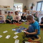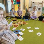 Nie zabrakło także ciekawych zagadek, quizów oraz różnorodnych zadań do rozwiązania, które rozwijały logiczne myślenie, spostrzegawczość i współpracę w grupie. Dzieci brały udział w zabawach ruchowych oraz zadaniach tematycznych związanych z dinozaurami.