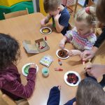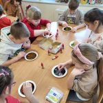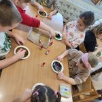 W dniu 17 grudnia w naszej grupie odbyły się zajęcia rozwijające zmysł wzroku, jako kolejne zadanie w ramach Ogólnopolskiego Projektu Edukacyjnego „Gramy Zmysłami”. Celem zajęć było stymulowanie percepcji wzrokowej, rozwijanie spostrzegawczości oraz zainteresowanie dzieci prostymi doświadczeniami badawczymi. Podczas zajęć przedszkolaki uczestniczyły w eksperymencie z mlekiem, barwnikami spożywczymi oraz płynem do naczyń. Obserwowały zmiany zachodzące na talerzykach, po dodaniu poszczególnych składników, zwracając uwagę na mieszanie się kolorów, ich ruch oraz powstające barwy i wzory. Zajęcia wzbudziły duże zainteresowanie i zaangażowanie dzieci, sprzyjały koncentracji uwagi oraz rozwijały umiejętność obserwowania i wyciągania wniosków. Aktywność przebiegała