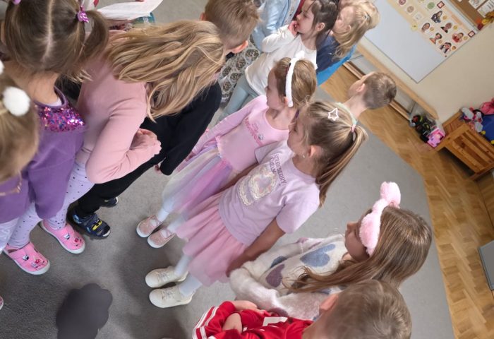 Po pełnej wrażeń wycieczce do kina na spektakl przyszła pora na kolejną dawkę niespodzianek! Świętowaliśmy Dzień Dziewczynek..Z tej okazji koledzy z grupy złożyli swoim koleżankom najserdeczniejsze życzenia, odśpiewali 100 lat i wręczyli drobne upominki, aby dziewczynki czuły się wyjątkowo. Śmiech, radość i dobra zabawa zagościły w grupie!!! Powiemy ochoczo, że było uroczo!!:)