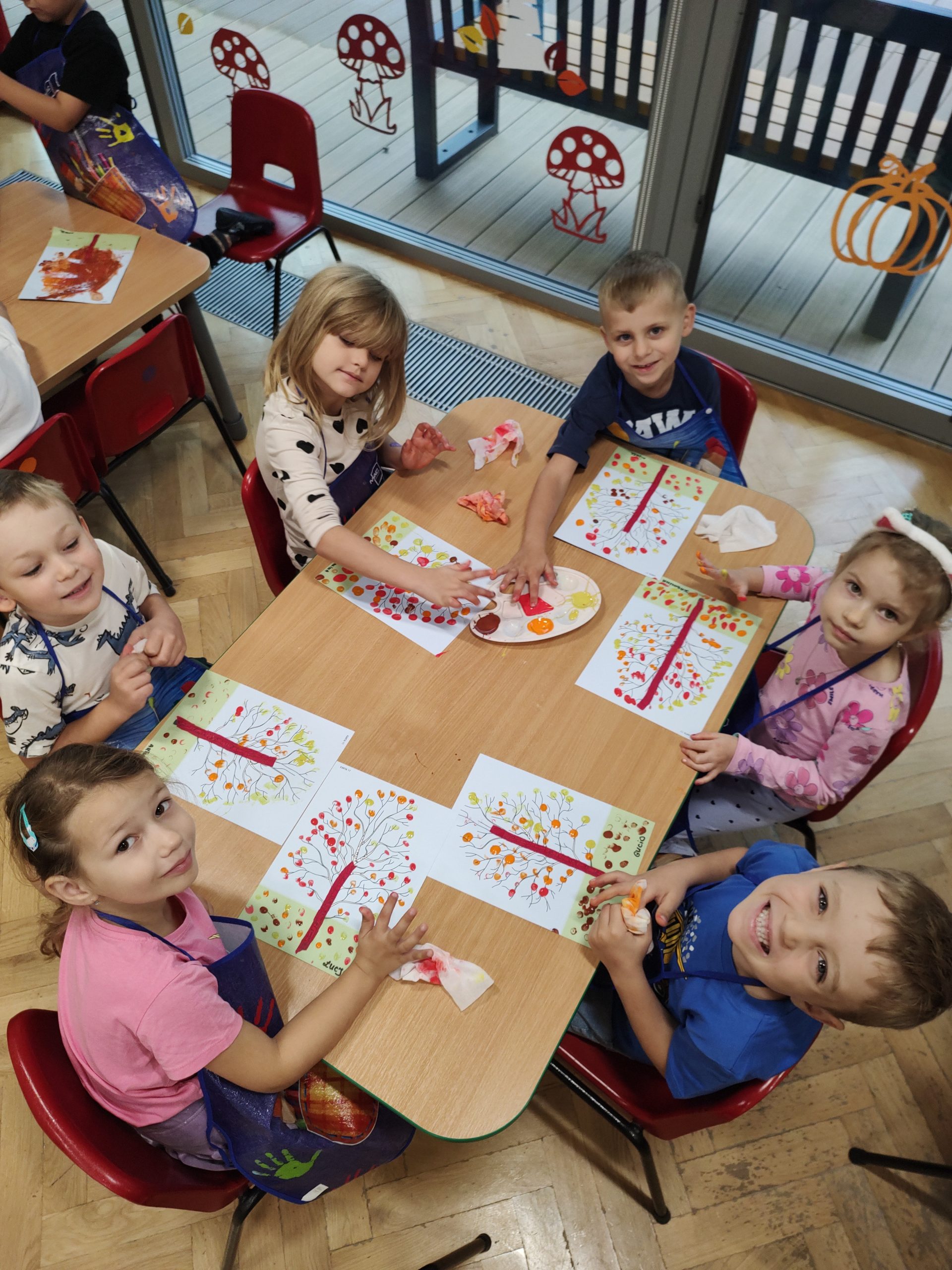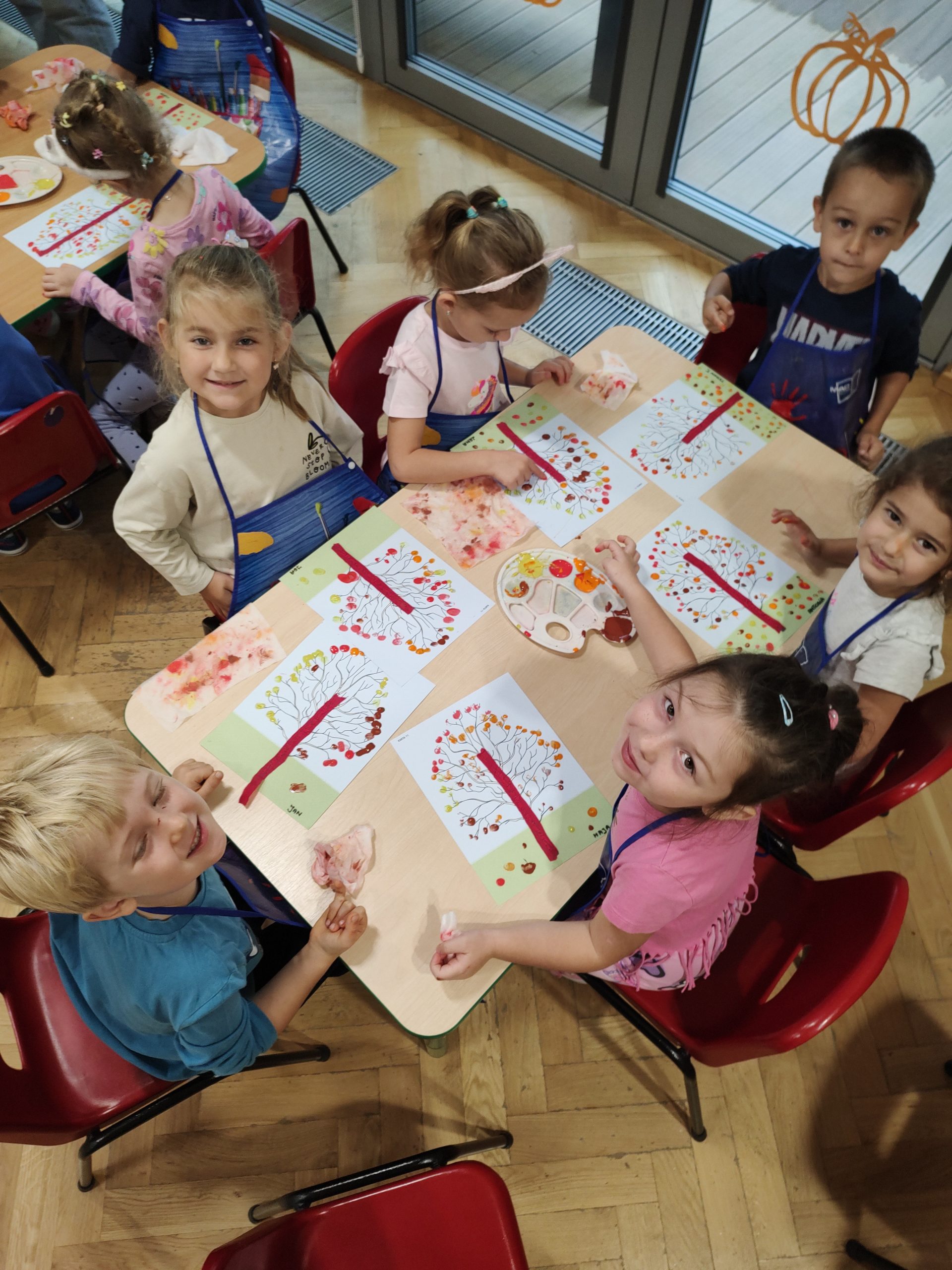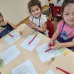 Dzieci z gr.IV. na zajęciach plastycznych wykonały ” Jesienne drzewo” metodą stemplowania. Podczas tworzenia tej pracy ćwiczyły precyzję ruchów rąk i palców, rozpoznawały i nazywały kolory typowe dla jesieni ale także rozwijały kreatywność i wyobraźnię. Powstały piękne, jesienne obrazy!!!!