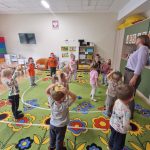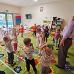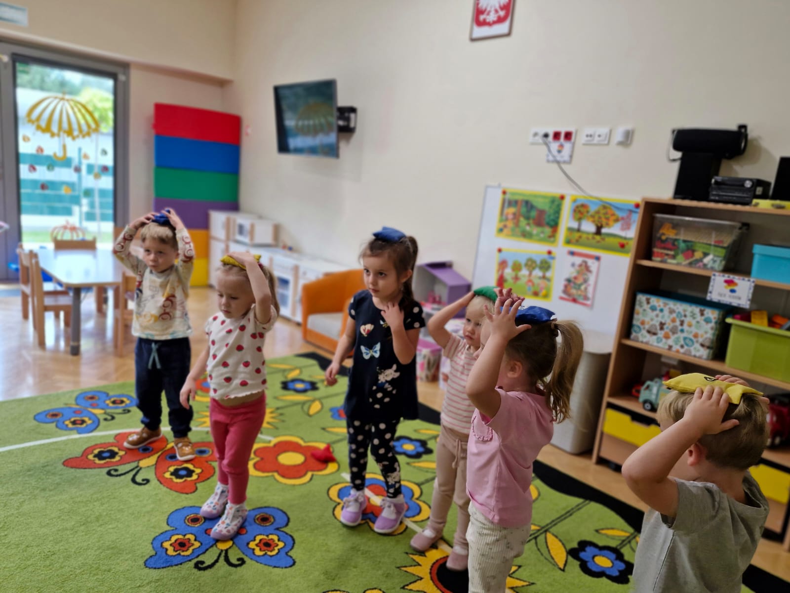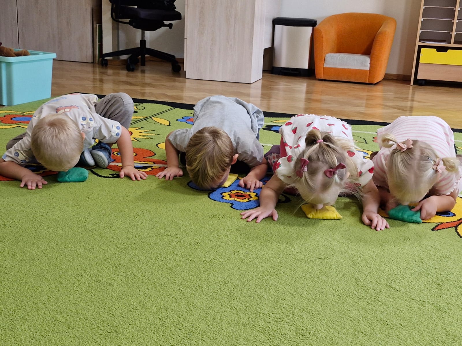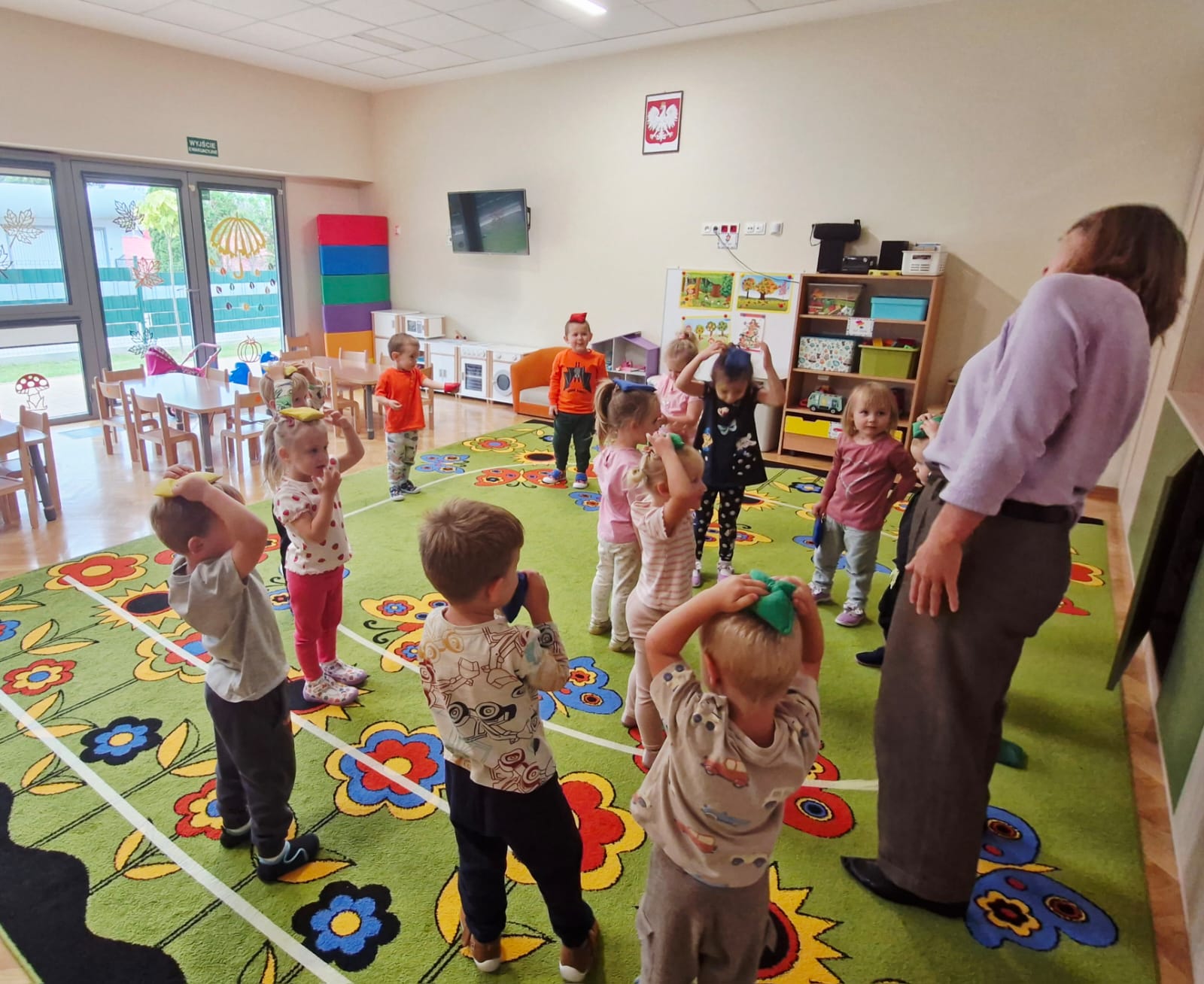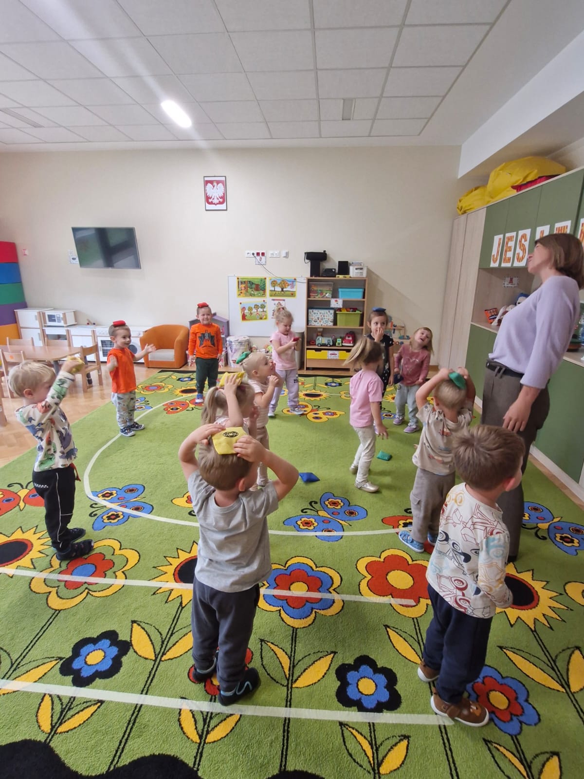 26 września nasza grupa Jeżyków aktywnie uczestniczyła w obchodach Europejskiego Dnia Sportu Szkolnego, którego celem jest promowanie sportu oraz aktywności fizycznej jako najlepszej formy spędzania wolnego czasu. Przedszkolaki brały udział w różnorodnych ćwiczeniach z wykorzystaniem przyborów gimnastycznych: krążków, woreczków... Wśród zadań znalazły się m.in. powitalna sztafeta, rzut woreczkiem do celu, wyścigi z woreczkiem na głowie. Dzieci z entuzjazmem podejmowały wyzwania, a element rywalizacji dostarczył im wiele pozytywnych emocji. Takie zajęcia rozwijają orientację w schemacie ciała i przestrzeni, poprawiają zwinność, siłę, wytrzymałość oraz poczucie równowagi. Nasze dzielne Jeżyki z radością i zaangażowaniem pokonywały kolejne sportowe wyzwania.