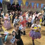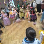 Podczas balu było wiele wesołych zabaw, tańców i konkursów, w których dzieci chętnie i z dużym zaangażowaniem brały udział. W przerwie na uczestników czekał słodki poczęstunek, który dodał energii do dalszej zabawy.