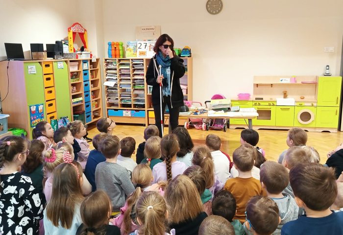 W naszym przedszkolu odbyły się wyjątkowe warsztaty, które poprowadziła instruktorka pracująca z osobami niewidomymi. Dzieci miały okazję dowiedzieć się, w jaki sposób można pomóc osobie niewidomej w codziennych sytuacjach, jak wygląda ich świat oraz jak radzą sobie z różnymi czynnościami. Przedszkolaki poznały pismo Braille’a i zobaczyły, jak osoby niewidome czytają i liczą za pomocą specjalnych […]