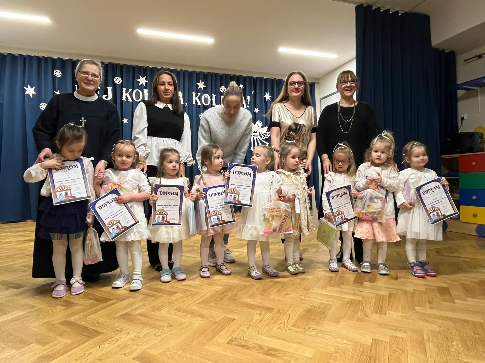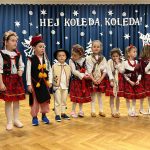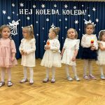 29.01 w naszym przedszkolu odbył się KONKURS KOLĘD I PASTORAŁEK” HEJ KOLĘDA, KOLĘDA”. Konkurs połączony był ze wspólnym kolędowaniem oraz prezentacją układów tanecznych w świątecznej atmosferze. Dziewczynki z gr. V zaprezentowały taniec aniołków- bardzo ciekawy i efektowny układ taneczny.
