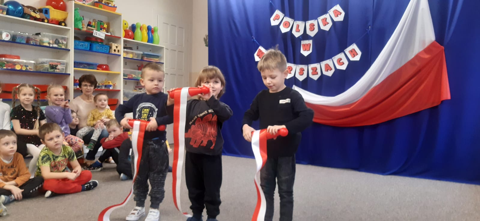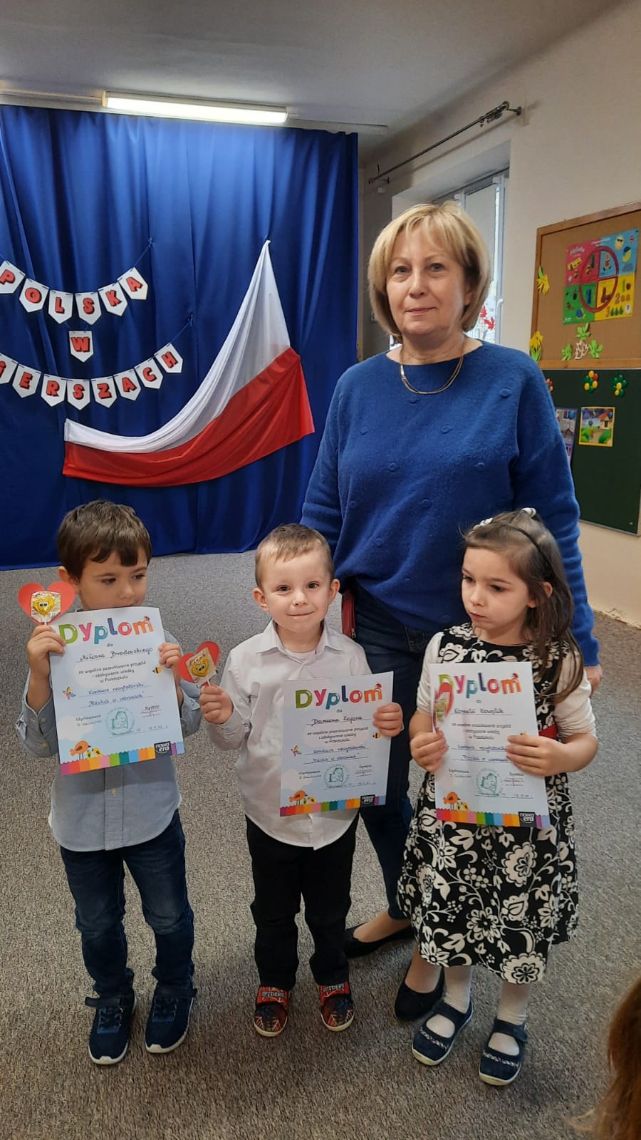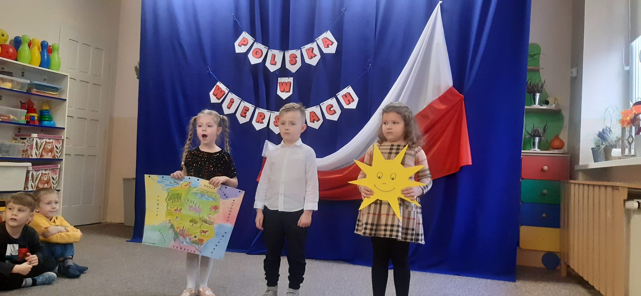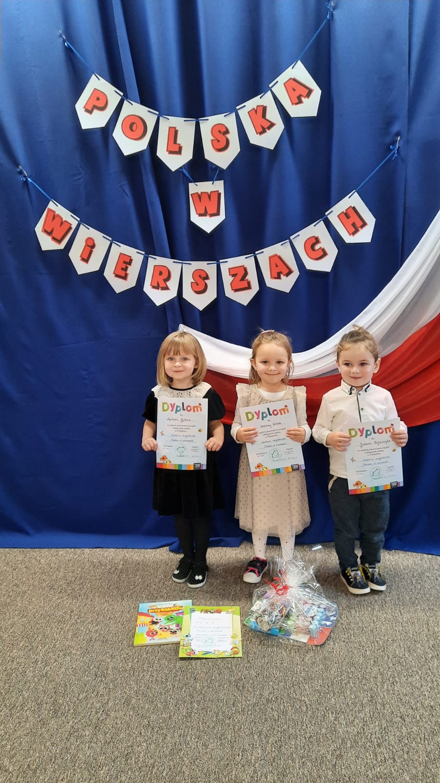 „Polska w wierszach” pod takich hasłem 18 listopada odbył się w naszym przedszkolu konkurs recytatorski. Dzieci prezentowały wiersze oraz piosenki o tematyce patriotycznej. Wszyscy uczestnicy otrzymali dyplomy i upominki, a każda z grup wyróżniona została przez Panią Dyrektor nagrodą. Konkurs został zorganizowany w ramach programu czytelniczego „Mali czytelnicy” realizowanego w naszym przedszkolu.