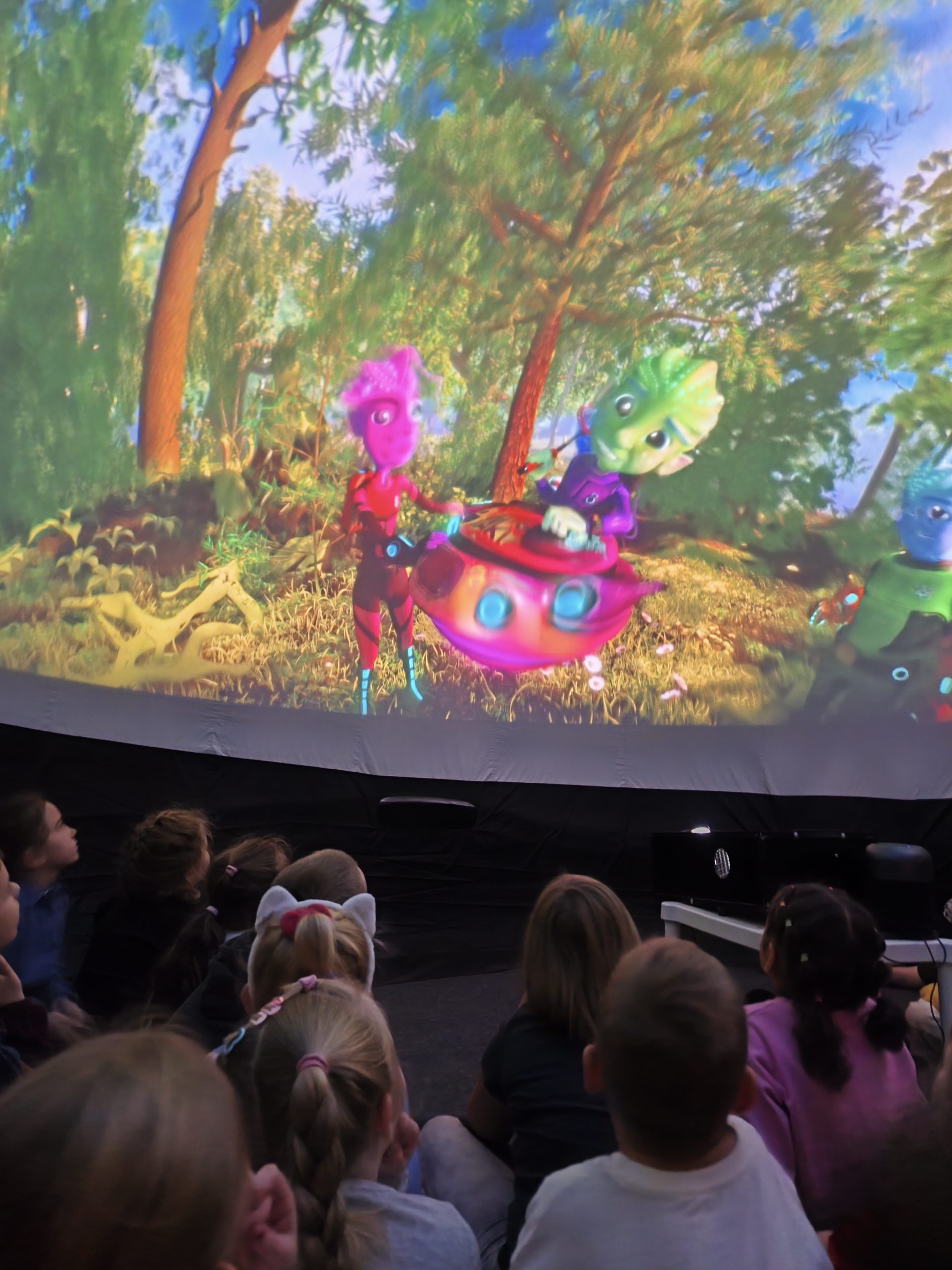 W dniu 23.10 dzieci z naszej grupy uczestniczyły w Interaktywnym seansie podczas którego mogły pomoc kosmicznym przyjaciołom Imani, Aki i Johnowi uratować ich ukochany las! Mali widzowie dowiedzieli się : Czego rośliny potrzebują do życia? Jak ważne są naturalne siedliska dla wszystkich żywych istot? Jak współpraca i odpowiedzialność mogą zmienić świat? To była pełna przygód i nauki wyprawa, która na długo zostanie w ich serduszkach!