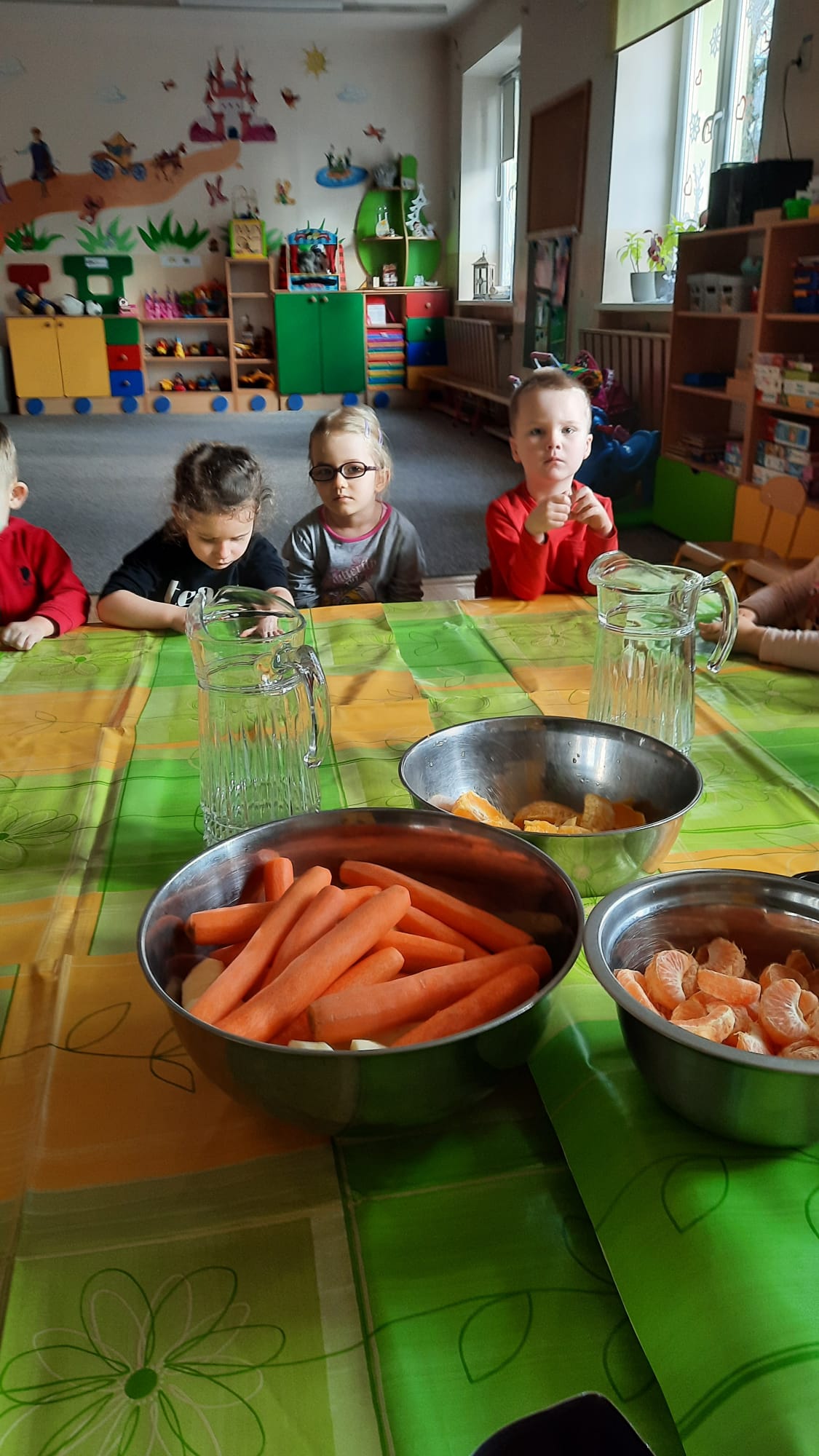 Program „Kubusiowi Przyjaciele Natury” to największy ogólnopolski program edukacyjny o tematyce ekologicznej dla przedszkoli. W ramach realizacji programu, najmłodsi poznają zasady dbania o środowisko naturalne, aktywnego wypoczynku i odżywiania. Nauczą się segregować odpady, wybierać odpowiednie formy ruchu oraz rozpoznawać korzyści jakie płyną ze spożywania warzyw i owoców. Razem z Kubusiem maluszki przygotowały sok owocowy z jabłek, marchewki, pomarańczy, bananów. Było pyszne!