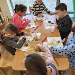 W dniu 12 marca dzieci z naszej grupy w ramach Ogólnopolskiego Projektu Edukacyjnego „Gramy Zmysłami” wykonały kwiatki sensoryczne. Zadanie polegało na wyklejaniu płatków kwiatów różnymi materiałami sypkimi, tj.: płatkami owsianymi, siemieniem lnianym, ryżem, kaszą jaglaną, kawą, ziarnami słonecznika. Praca ta dostarczyła dzieciom najwięcej wrażeń dotykowych, ale również wzrokowych i węchowych. Przedszkolaki świetnie się przy tym bawiły.