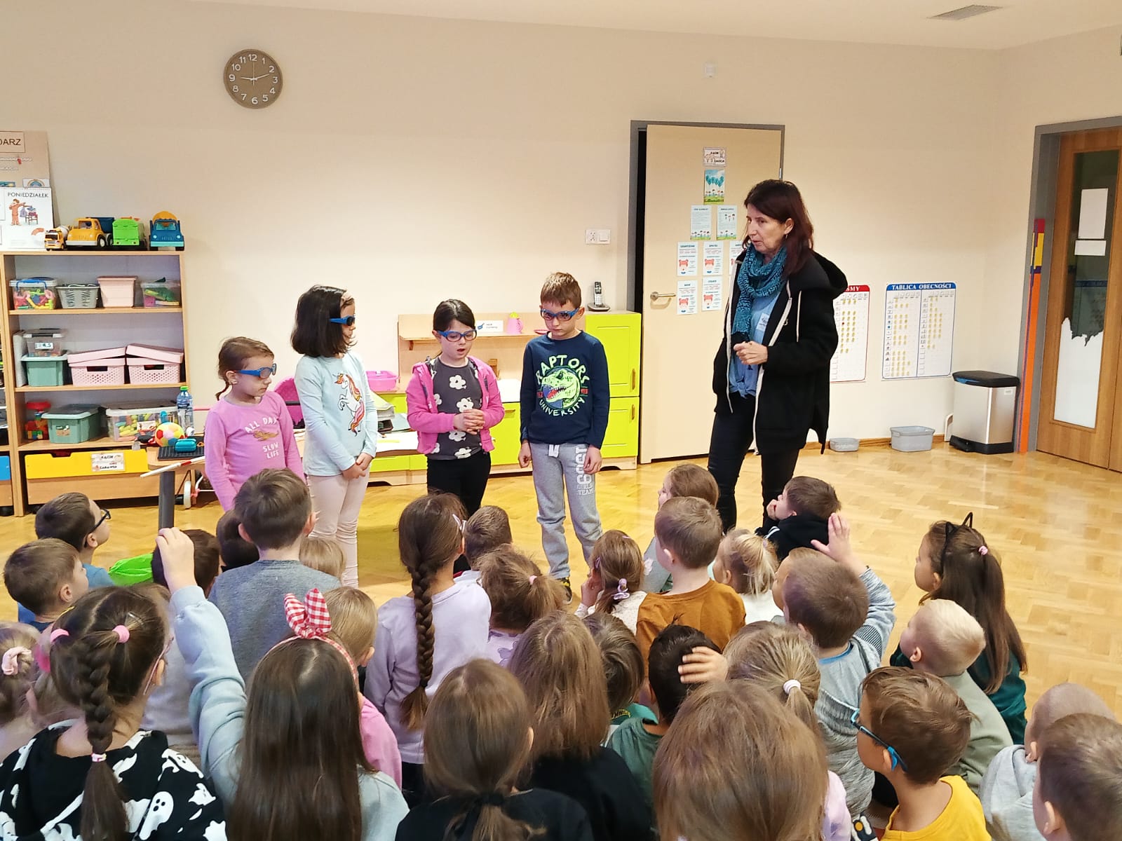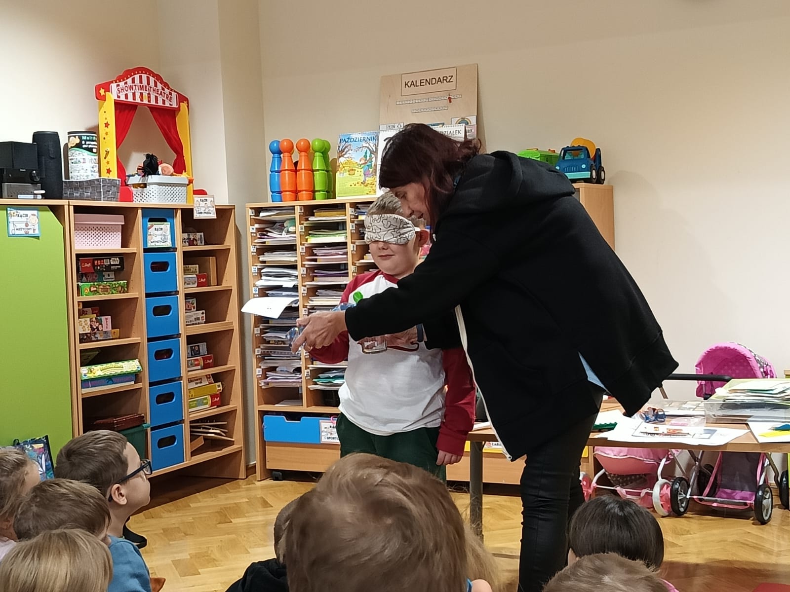 W naszym przedszkolu odbyły się wyjątkowe warsztaty, które poprowadziła instruktorka pracująca z osobami niewidomymi. Dzieci miały okazję dowiedzieć się, w jaki sposób można pomóc osobie niewidomej w codziennych sytuacjach, jak wygląda ich świat oraz jak radzą sobie z różnymi czynnościami.