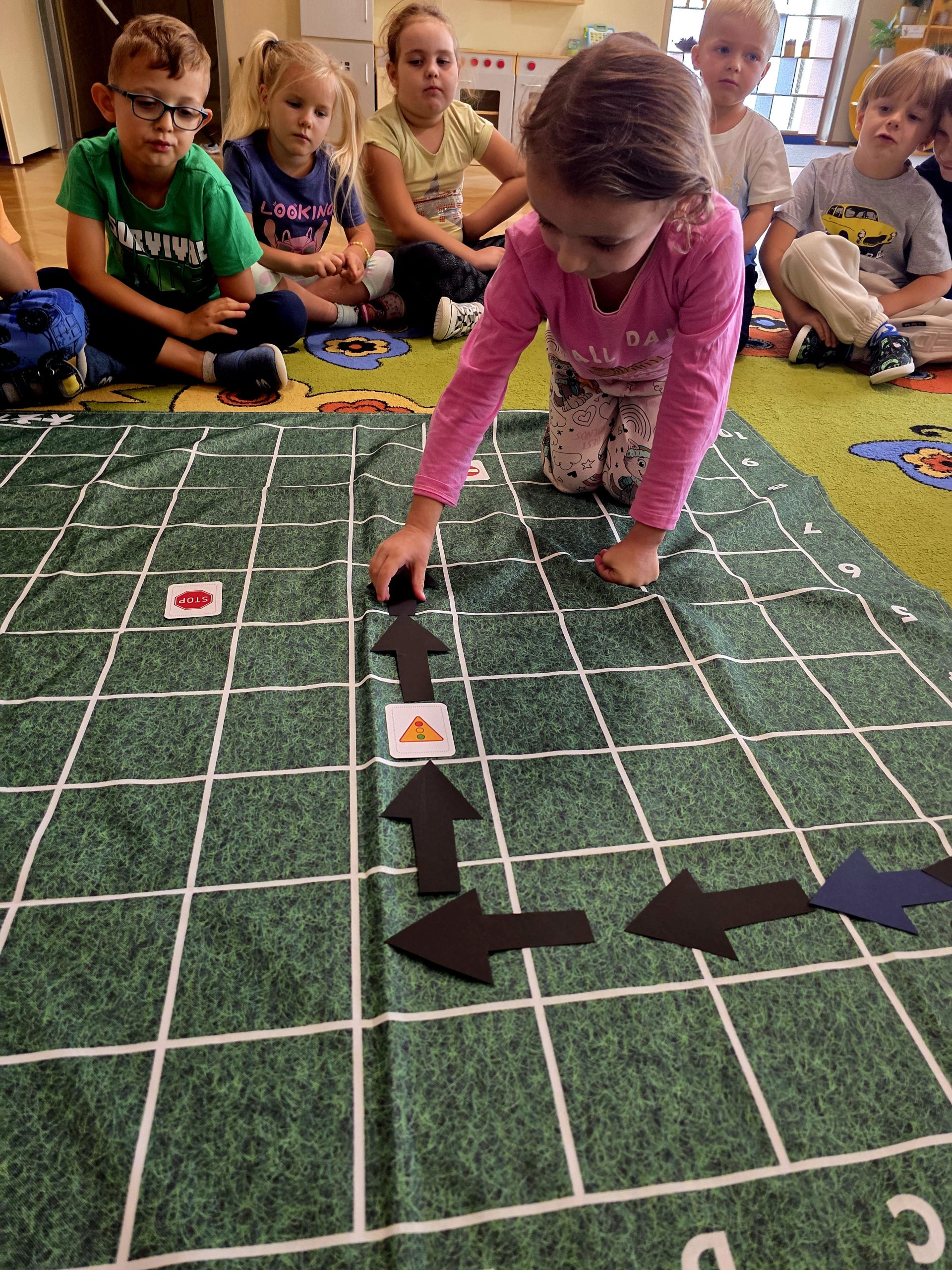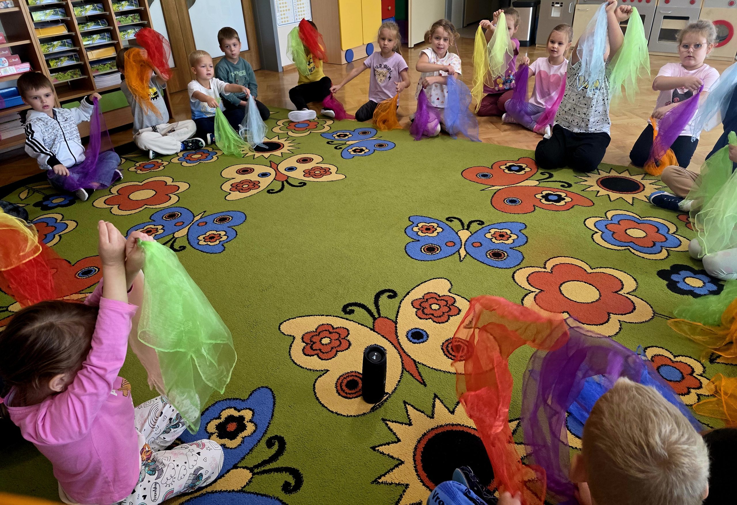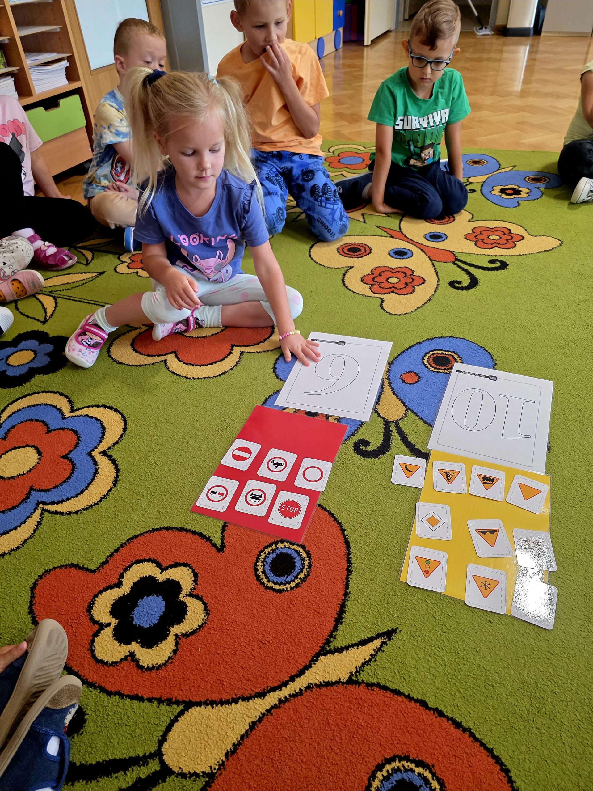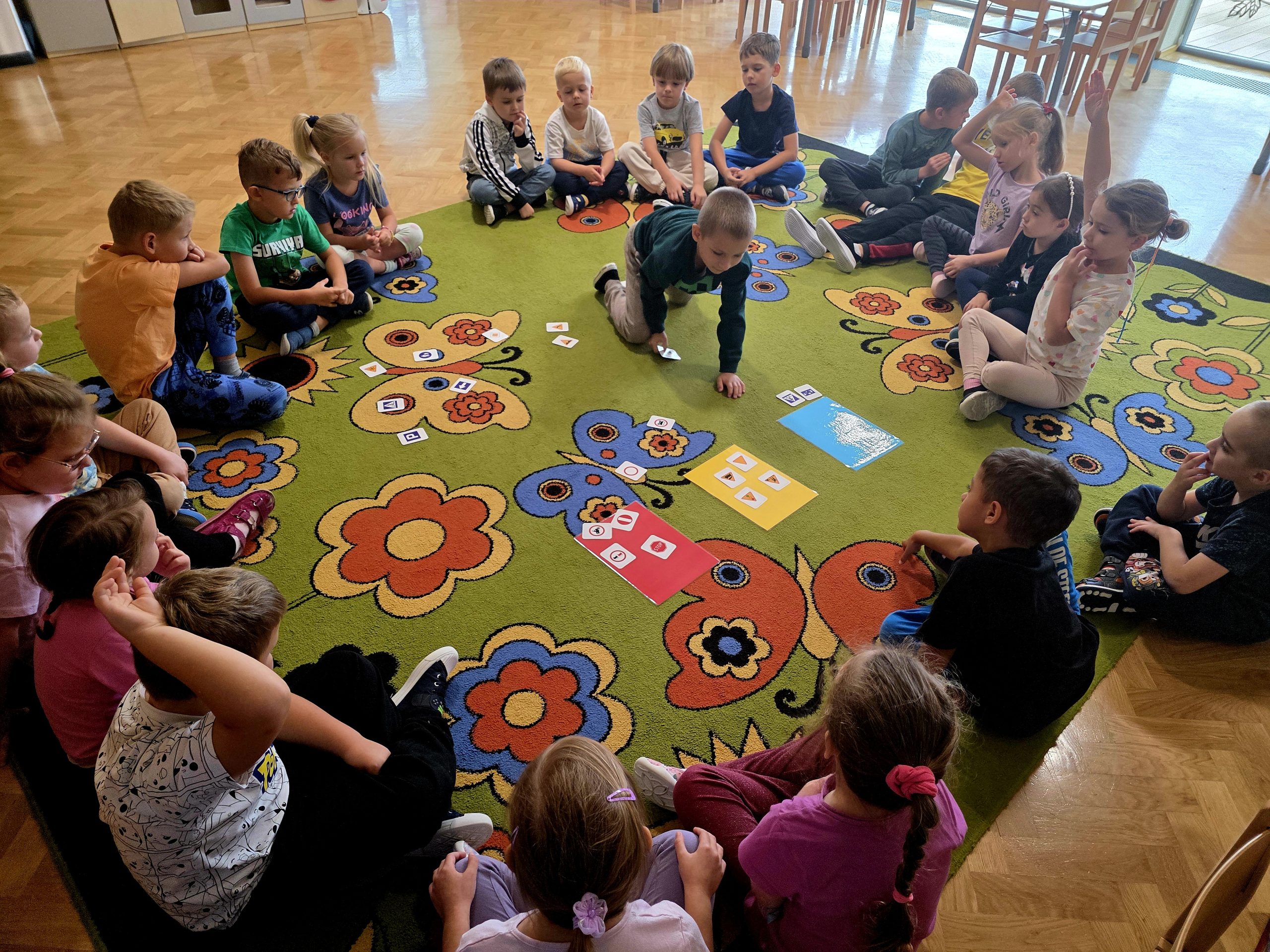Podczas zajęć Liski brały udział w zabawach, które umożliwiły rozwijanie kompetencji matematycznych. Przedszkolaki doskonaliły orientację przestrzenną, tworzenie zbiorów, liczenie oraz porównywanie gdzie jest więcej, a gdzie mniej przedmiotów. Zabawy matematyczne sprawiły dzieciom ogromną radość.