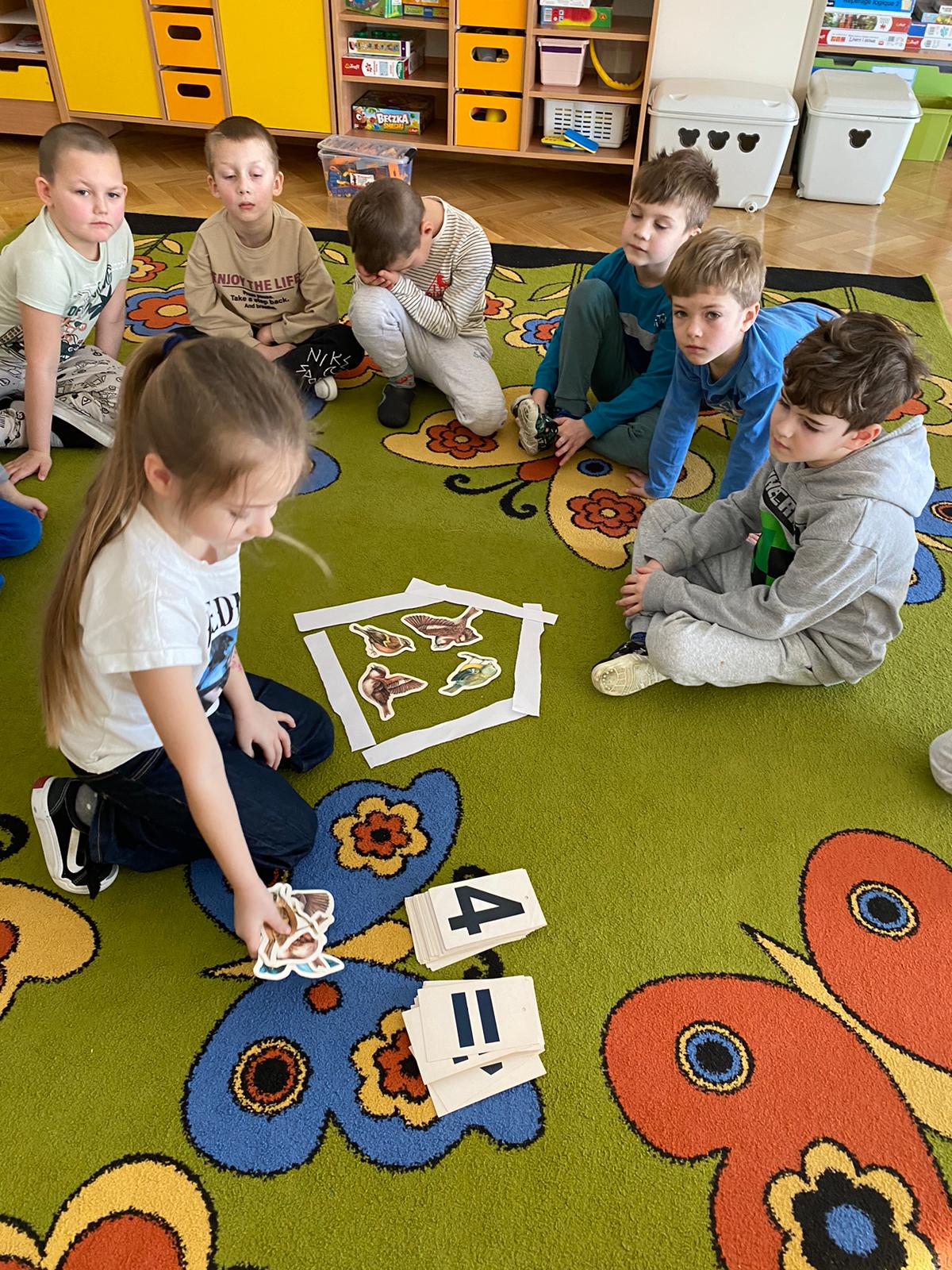 Grupa VI – Dzieci liczą ptaki na dywanie