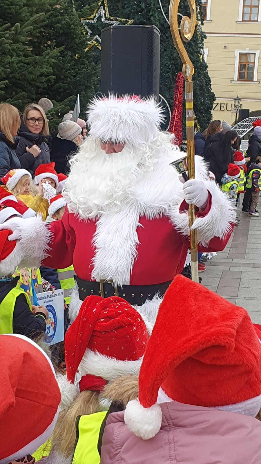 W poniedziałek 8 grudnia tarnowski rynek wypełnił się radosnym śpiewem i dziecięcym śmiechem. Dzieci z naszego Przedszkola razem z innym przedszkolakami uroczyście powitały Świętego Mikołaja, który pojawił się wśród migoczących świateł i zimowej dekoracji.