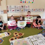 Zajączki uczestniczyły w zajęciach dydaktycznych rozwijających świadomość patriotyczną i wiedzę na temat naszej Ojczyzny. Przedszkolaki z dużym zainteresowaniem obejrzały prezentacje multimedialne i projekcję filmu o powstaniu państwa polskiego, poznając i utrwalając symbole narodowe. Dzieci recytowały wiersze pt.: „Barwy ojczyste” Cz. Janczarskiego oraz „Katechizm polskiego dziecka” Władysława Bełzy. W tygodniu poświęconym majowym świętom, dzieci rozwiązywały łamigłówki dotyczące polskich legend. Swoje emocje dzieci wyraziły również w pracach plastycznych. Grupa „Zajączków” wypełniła plasteliną herb Warszawy oraz wykonała flagę Polski i Unii Europejskiej, a także pokazała swoje zdolności wykonując godło Polski w różnych technikach plastycznych. Przedszkolaki były dumne ze swoich prac, które były twórcze i pięknie prezentowały się w holu przedszkolnym.