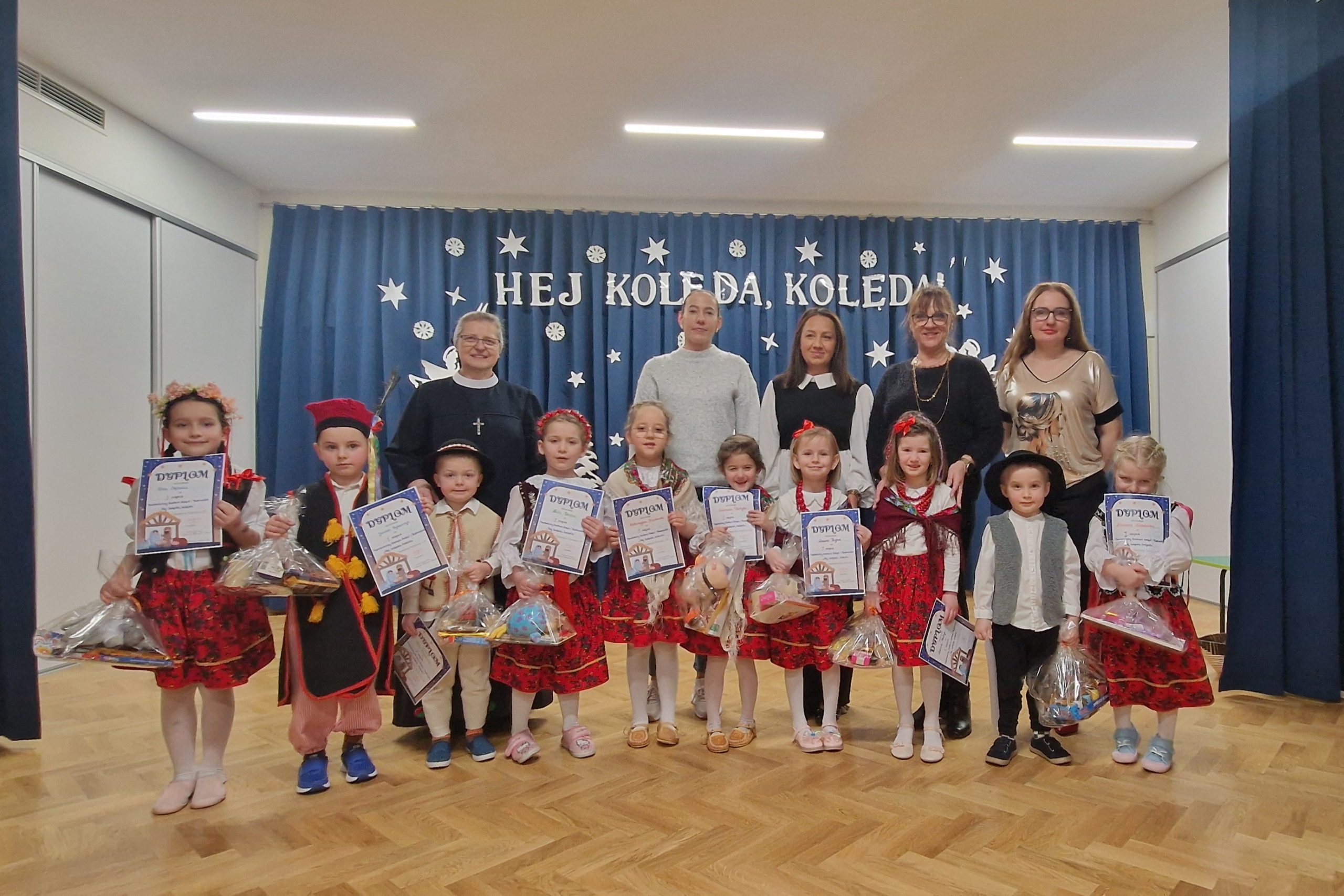 29 stycznia w naszym przedszkolu odbył się konkurs kolęd i pastorałek. Grupę III dzielnie i odważnie reprezentowany dwie koleżanki, które zaprezentowały kolędę „Jezusa Narodzonego”. Dziewczynki wystąpiły z wielkim zaangażowaniem i radością, zachwycając publiczność pięknym śpiewem oraz opanowaniem scenicznym. Udział w konkursie był dla nich cennym doświadczeniem, a jednocześnie okazją do rozwijania swoich pasji i umiejętności artystycznych. Ogromne brawa dla obydwu wykonawczyń.