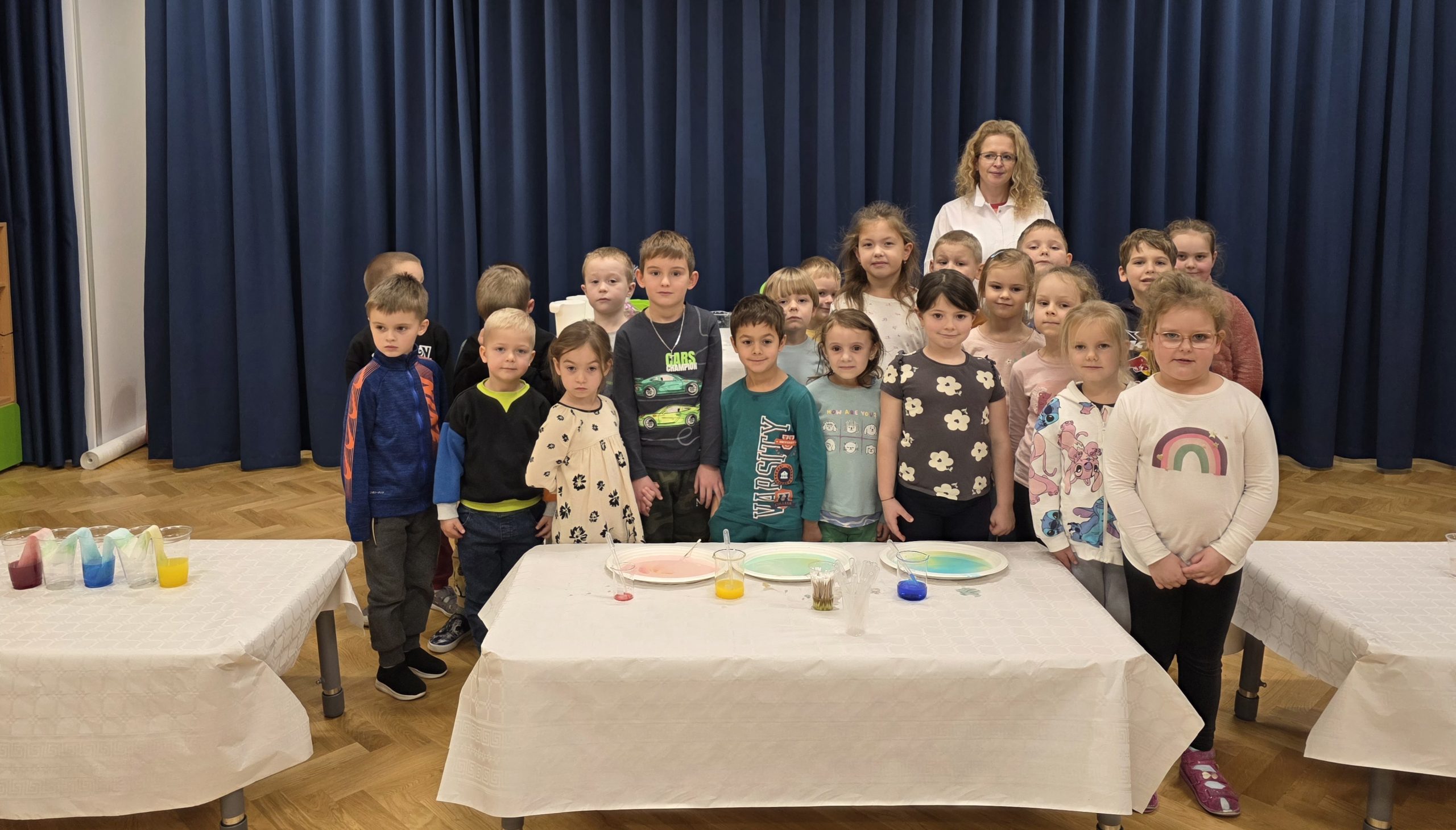 W piątek 14 listopada w przedszkolu odbyły się ciekawe warsztaty chemiczne, prowadzone przez Panią chemik. Zaprezentowała ona przedszkolakom szereg ciekawych i bardzo efektownych doświadczeń chemicznych. Głównym celem spotkania było rozbudzenie wyobraźni dziecięcej oraz zapoznanie z nowymi zjawiskami i pojęciami. Dzieci z ciekawością oglądały  kolorowe eksperymenty, takie jak wulkan i słoniowa pasta do zębów. Wiele fascynacji dostarczyły im również doświadczania, w których mogły aktywnie uczestniczyć.  Dzieci uwielbiają odkrywać to, co nowe i nieznane i dlatego warsztaty sprawiły dzieciom wiele radości.
