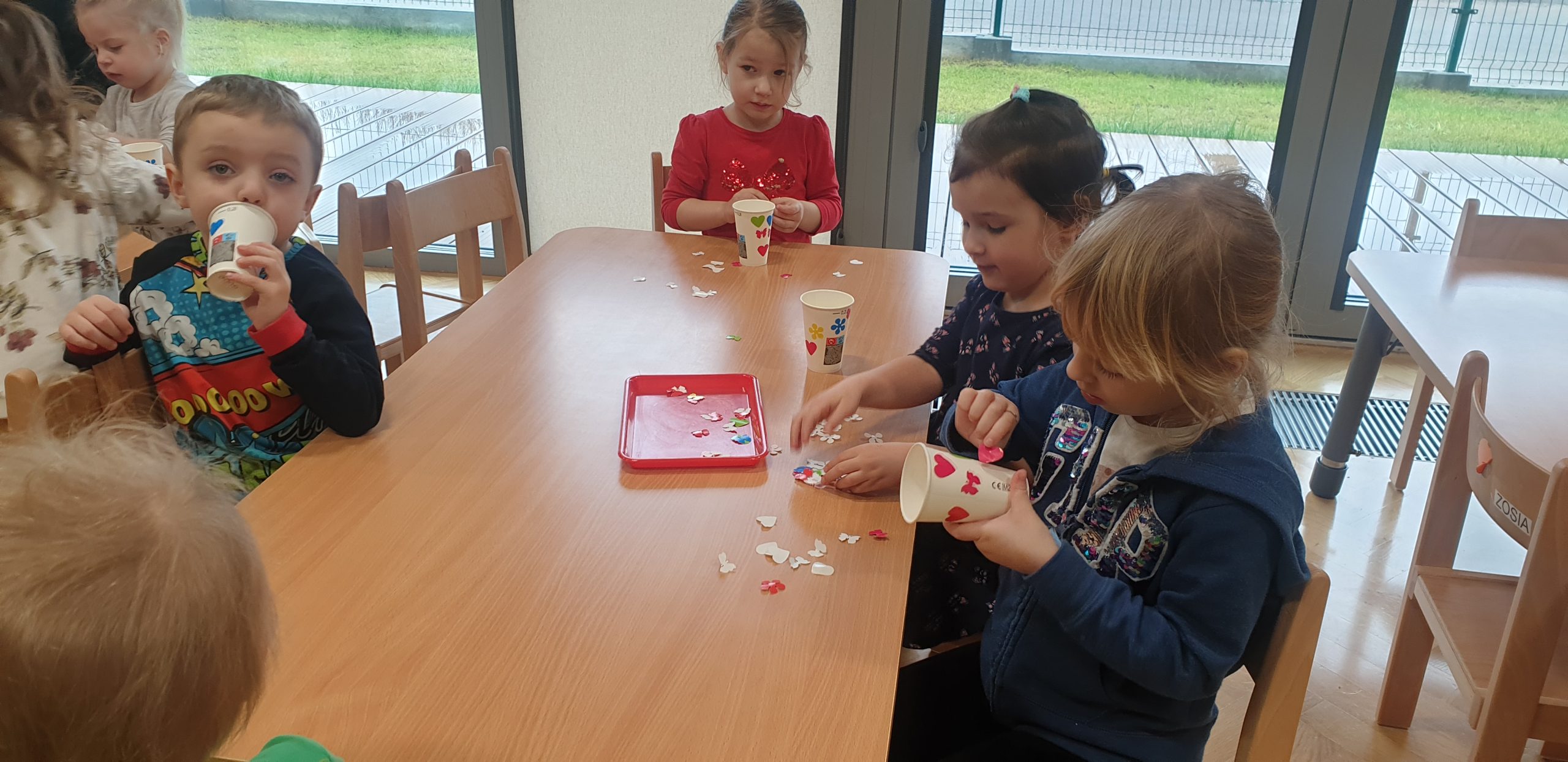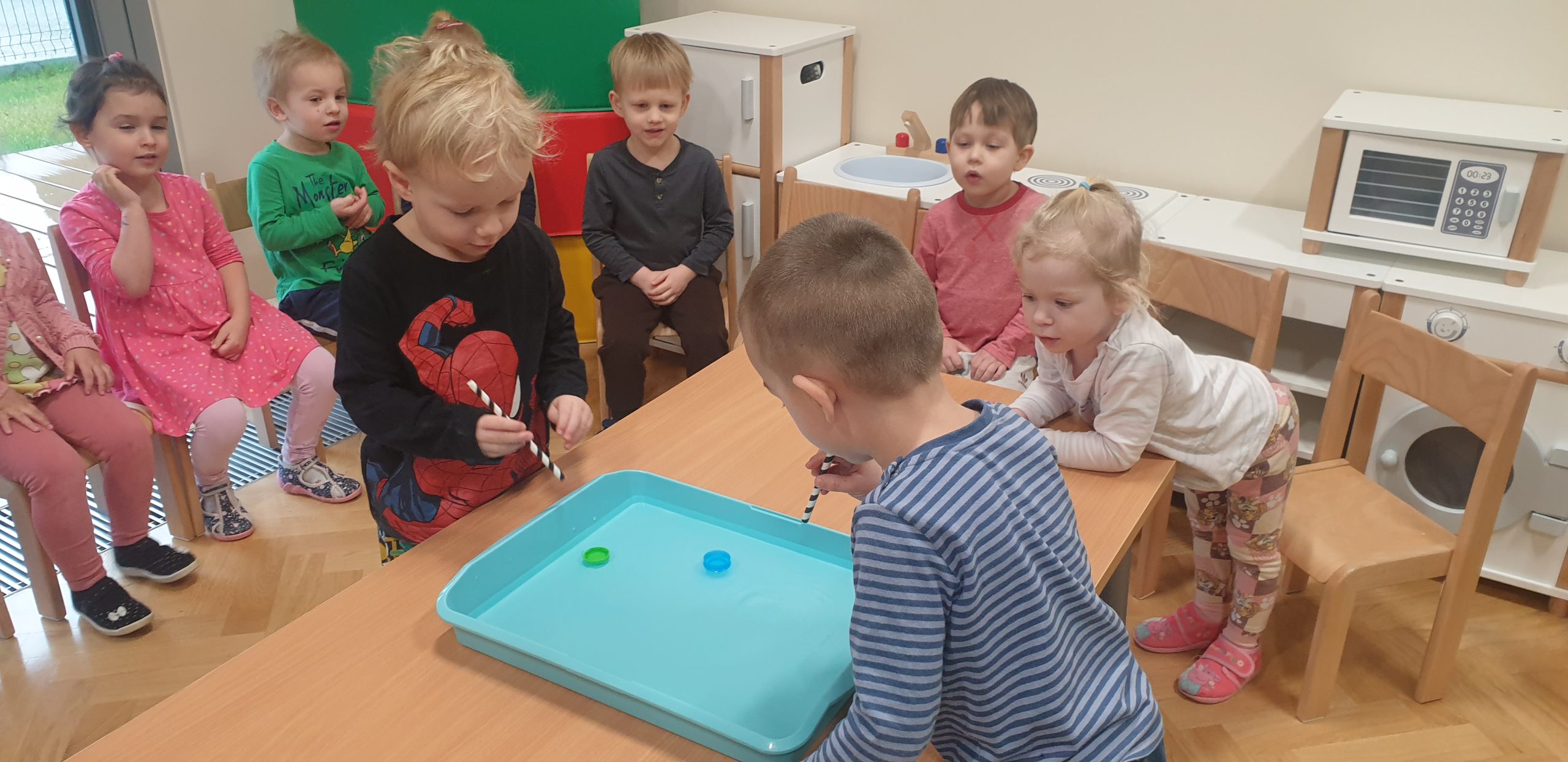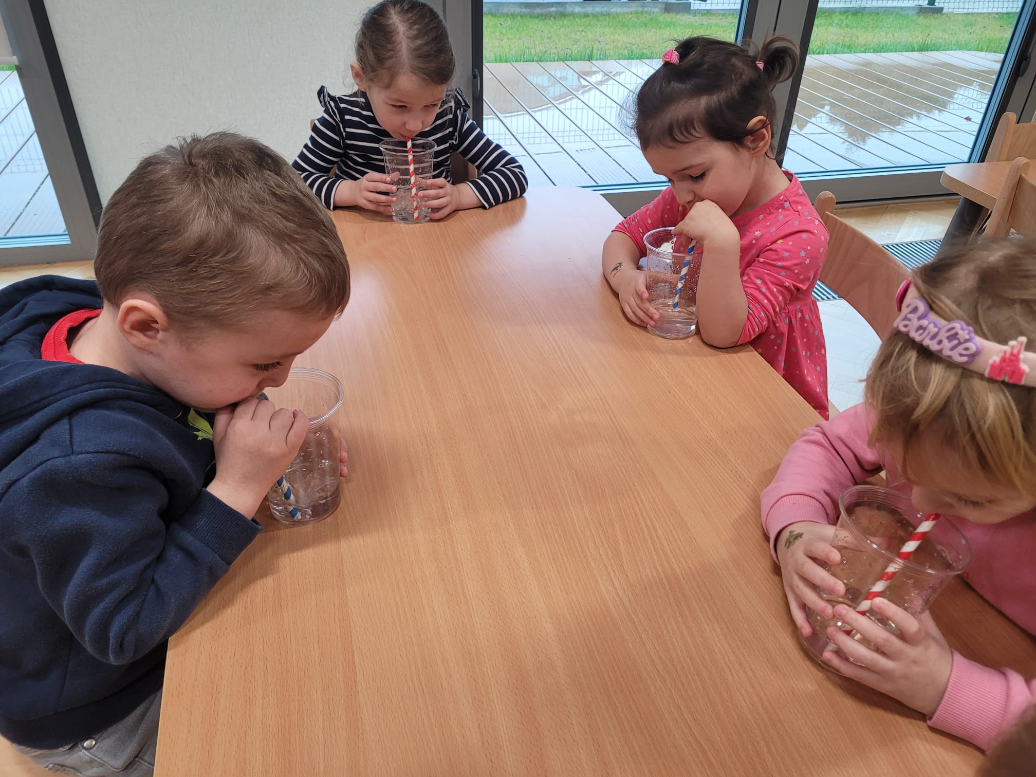 W dniach 11-15 marca realizowaliśmy w naszej grupie Program „Mamo, Tato wolę wodę!”. Dzieci dowiedziały się jak woda krąży po Ziemi, poznały sposoby jak można oszczędzać wodę. Wykonywaliśmy wiele ćwiczeń oddechowych robią wodne bąbelki czy też eksperymenty z wodą. Dzieci wykonały swoje kubeczki na wodę, kropelki wody z niebieskiej bibuły, a także dzięki zmysłowi smaku rozróżniały poprzez degustację różne smaki wody. Bawiliśmy się wspólnie do piosenek o wodzie, a tydzień zakończyliśmy ćwiczeniami gimnastycznymi z butelką wody!