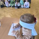 z różnymi niepełnosprawnościami. Przedszkolaki wykonywały proste zadania z zasłoniętymi oczami np. rysowanie, próbowały porozumiewać się bez użycia mowy,