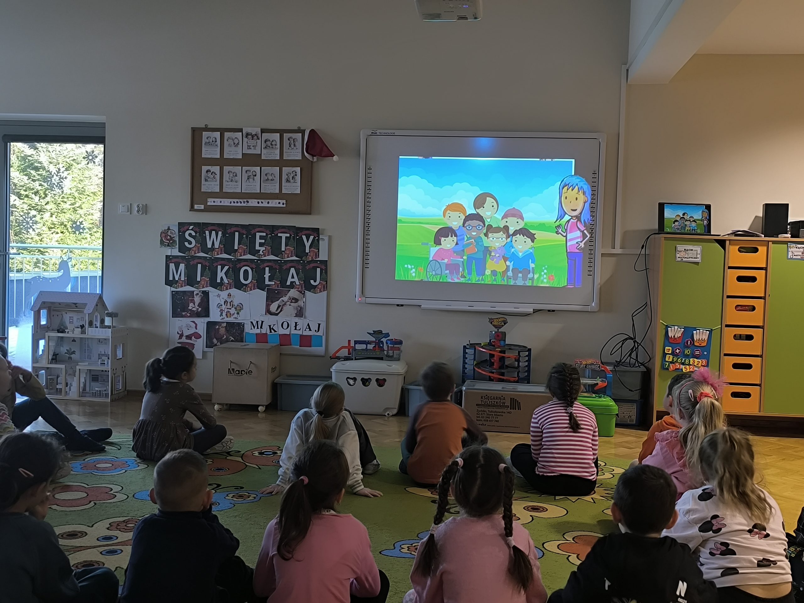 Zajęcia rozpoczęły się od obejrzenia filmiku edukacyjnego, następnie na podstawie wiersza odbyła się rozmowa kierowana na temat różnic między ludźmi oraz sposobów, w jakie dzieci mogą wspierać rówieśników z niepełnosprawnością. Dzieci obejrzały ilustracje przedstawiające osoby z różnymi niepełnosprawnościami (ruchową, wzrokową, słuchową, intelektualną), a następnie omawiały, w jaki sposób mogą wspólnie się bawić i pomagać sobie w codziennych sytuacjach.