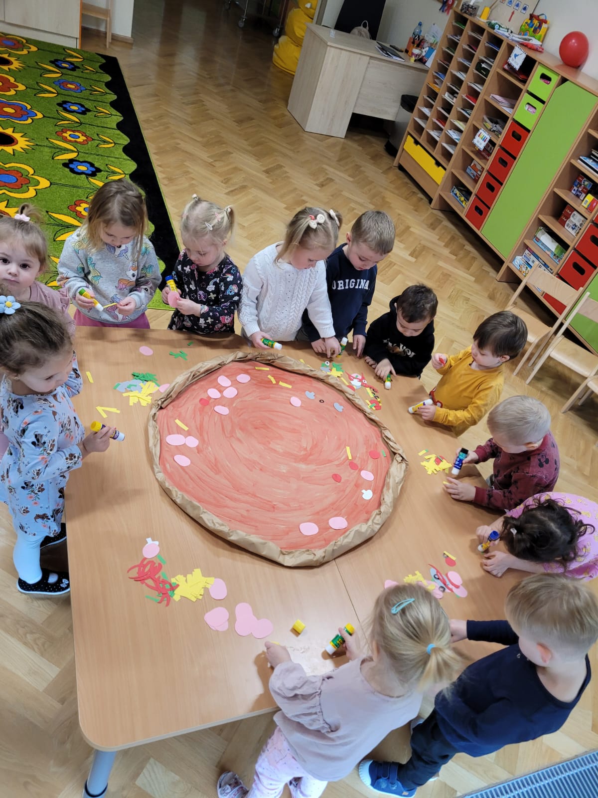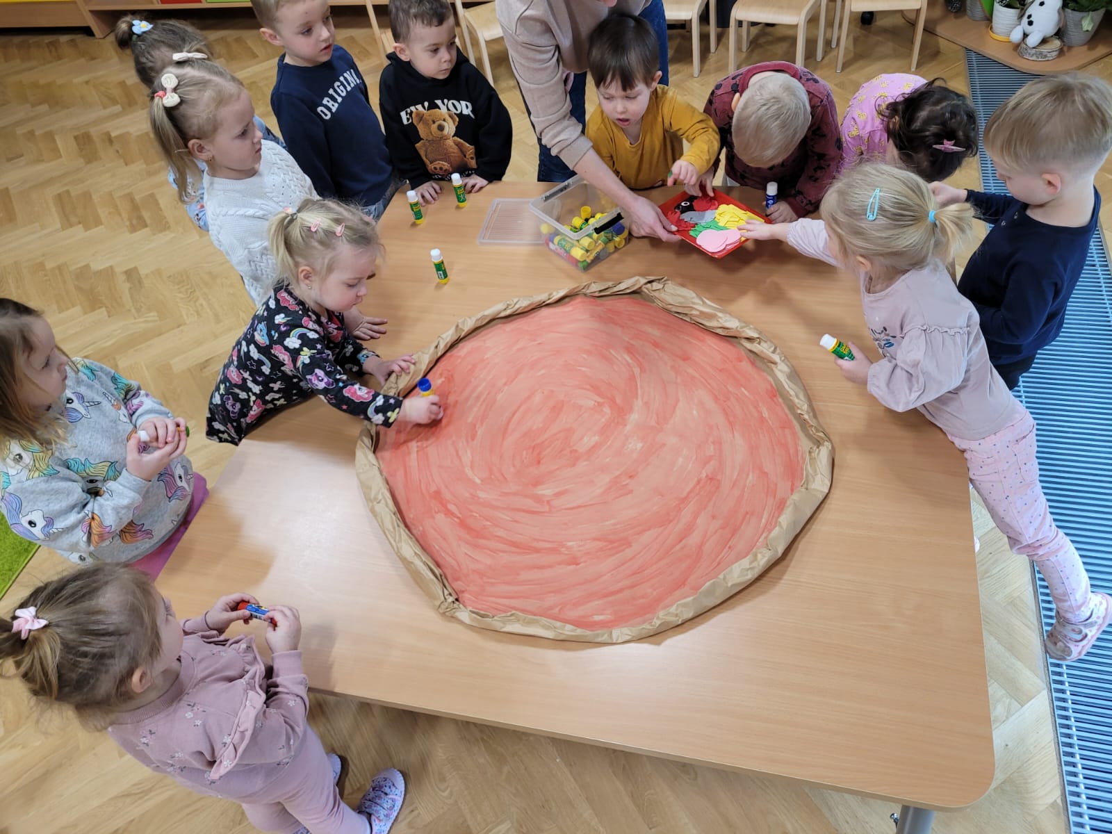 Dnia 9 lutego Jeżyki obchodziły „Międzynarodowy Dzień Pizzy”. Tego dnia nasza sala zamieniła się w prawdziwą, włoskią pizzerie. Na zajęciach dzieci miały okazję zobaczyć jak powstaje ten kultowy włoski placek i jakich składników potrzeba, aby go przygotować. Poznały historię jego powstania oraz dowiedziały się, z którego kraju pochodzi. Dzieci w trakcie zabaw świetnie się bawiły, poszukiwały niezbędnych produktów ujętych na liście zakupów i wkładały je do sklepowego koszyka, układały „pizzowe” puzzle oraz tańczyły przy piosence z pizzą w roli głównej. Przedszkolaki miały także możliwość stworzenia kolorowych, smakowicie wyglądających placków, używając do tego przeróżnych materiałów oraz stosując różne techniki plastyczne. Pomimo, iż pizze te były papierowe, bardzo rozbudzały nasze apetyty. To był niezwykle smakowity dzień!