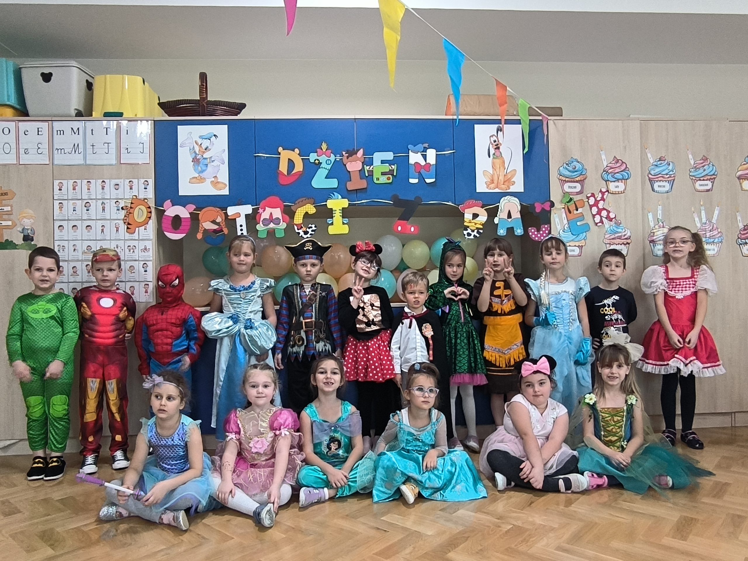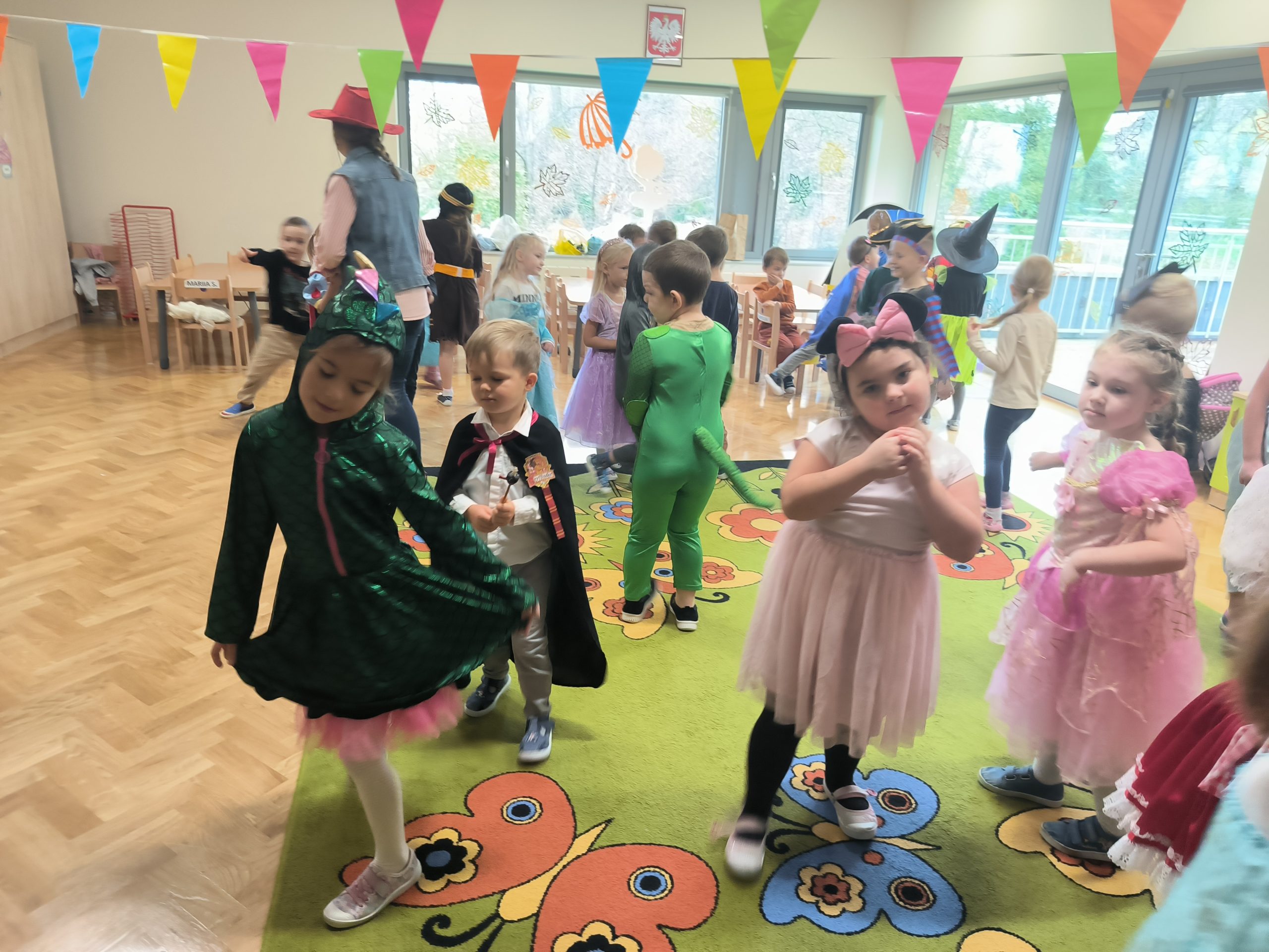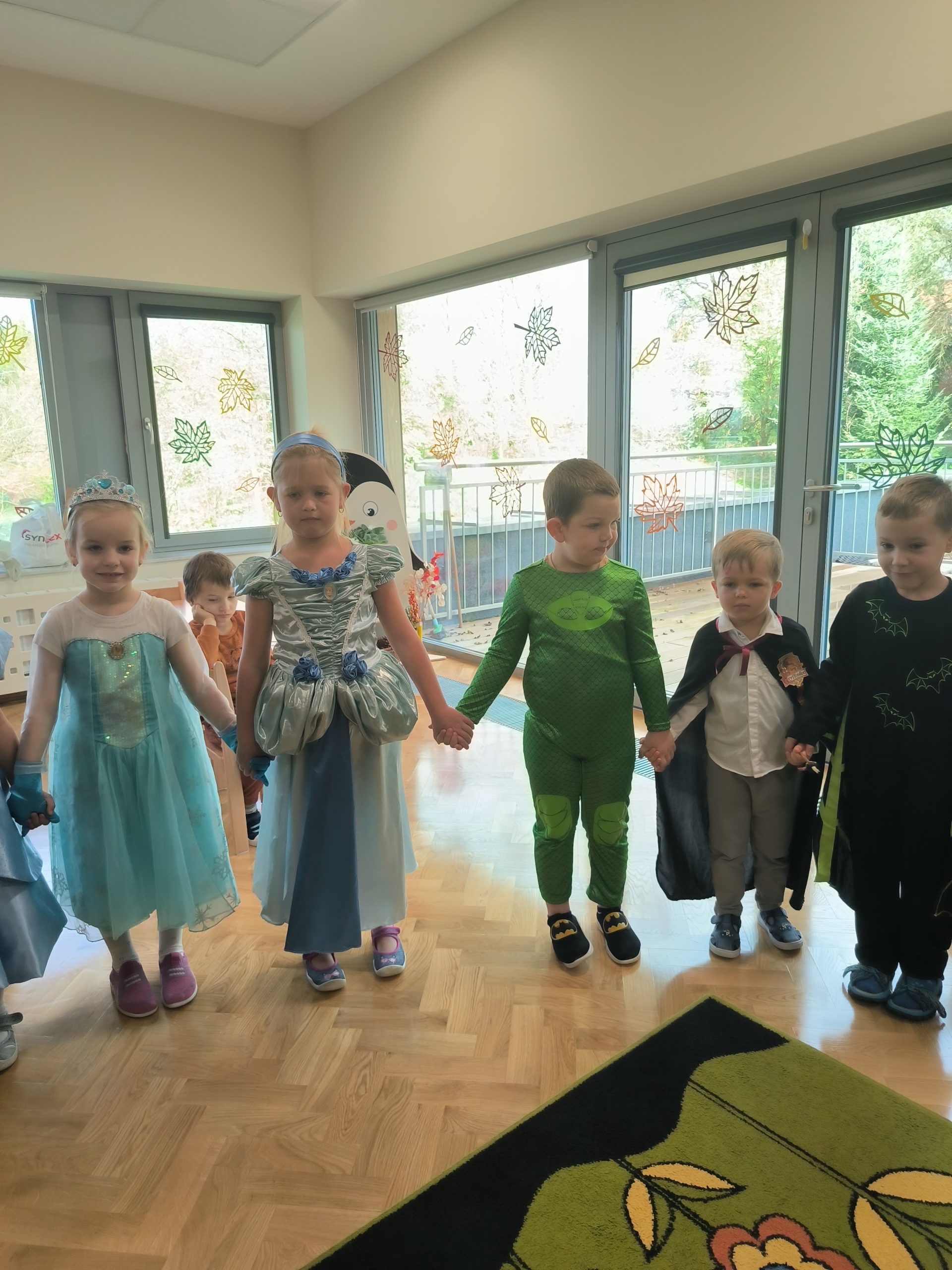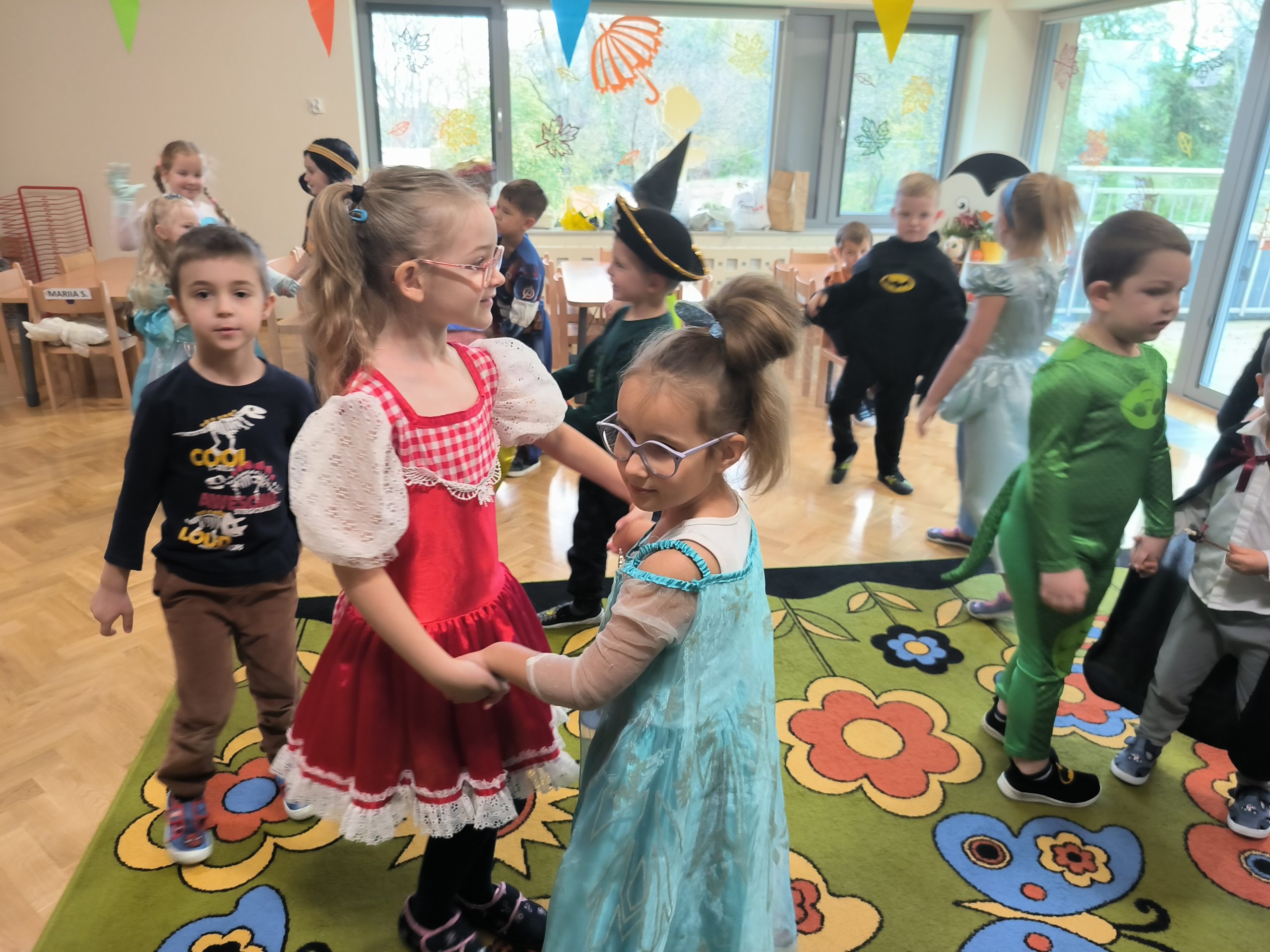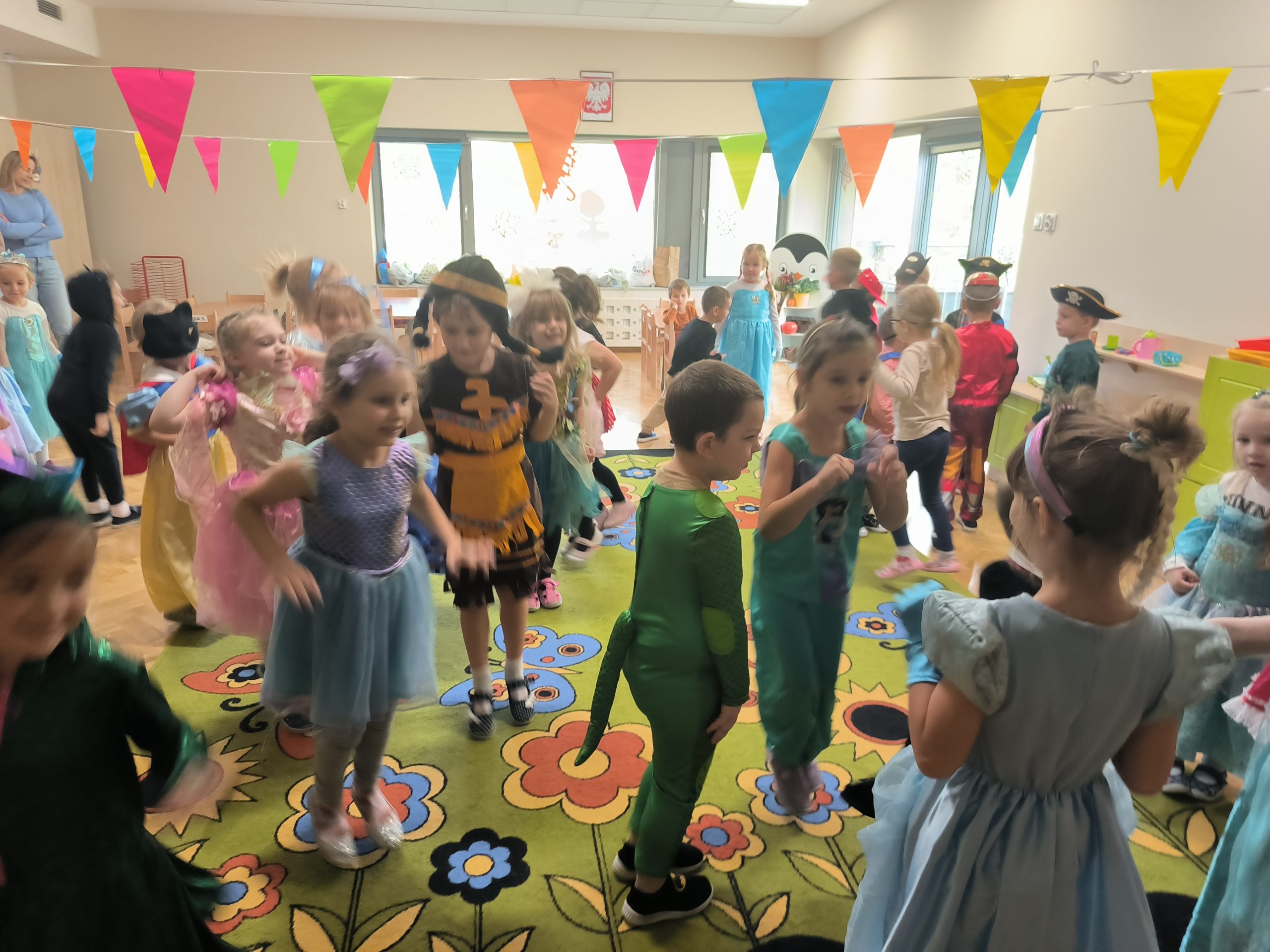 W naszej grupie 6 listopada urządziliśmy Bal Postaci z Bajek. Do wspólnej zabawy zaprosiliśmy dzieci z grupy „Lisków” i wspólnie tańczyliśmy do znanych piosenek z naszych ulubionych filmów. Ponadto było wiele ciekawych konkurencji, między innymi dzieci musiały odgadnąć zagadki, znaleźć ulubionych bohaterów.