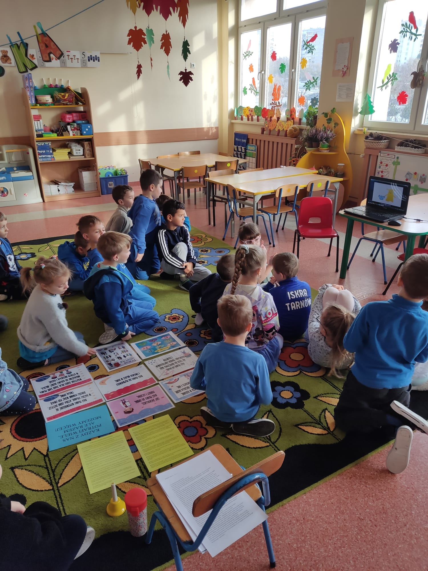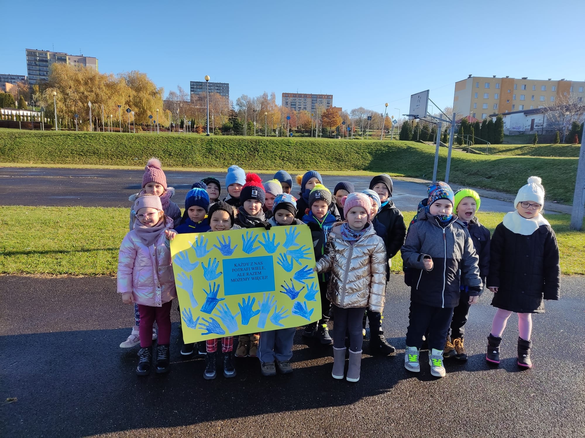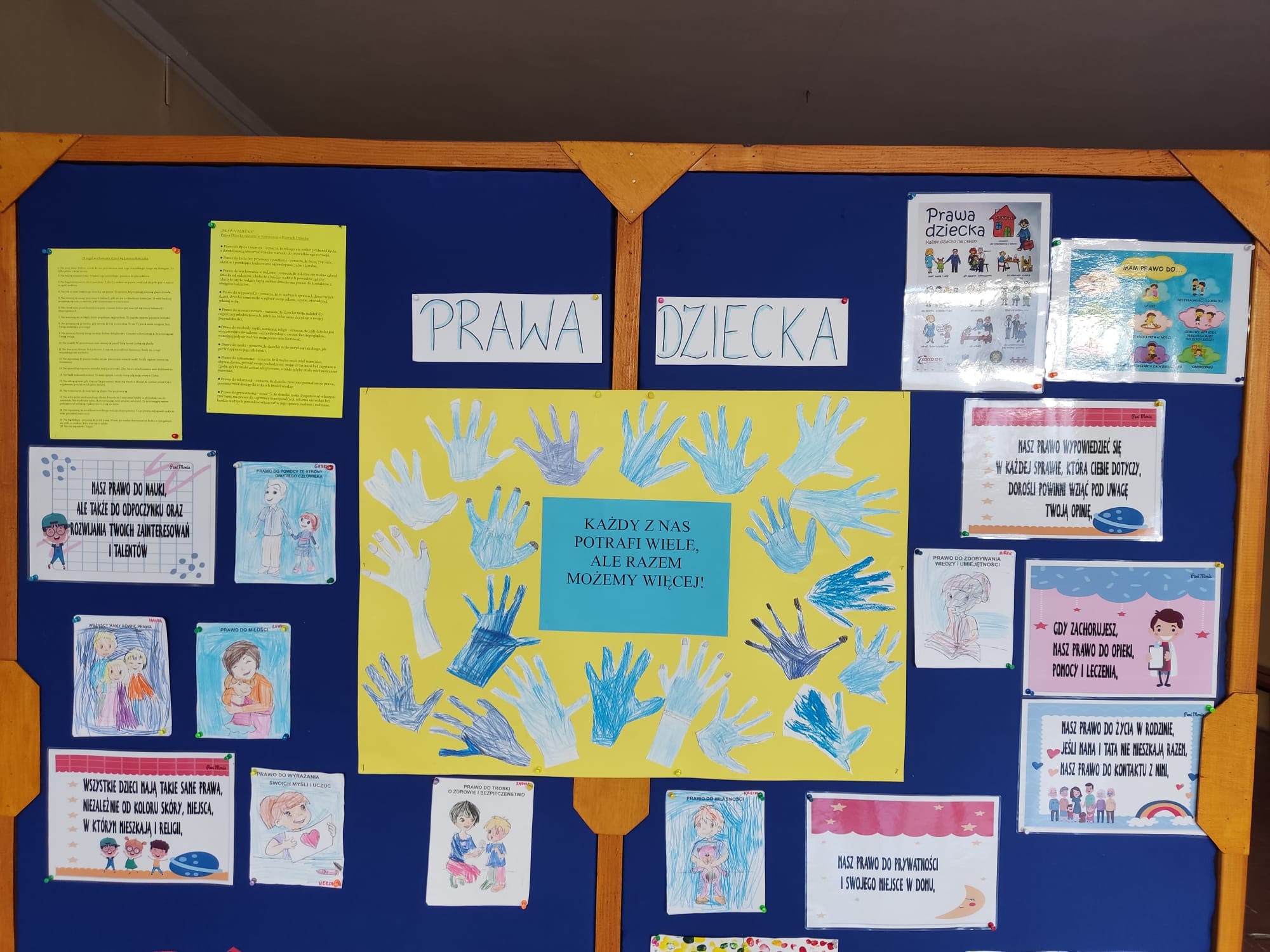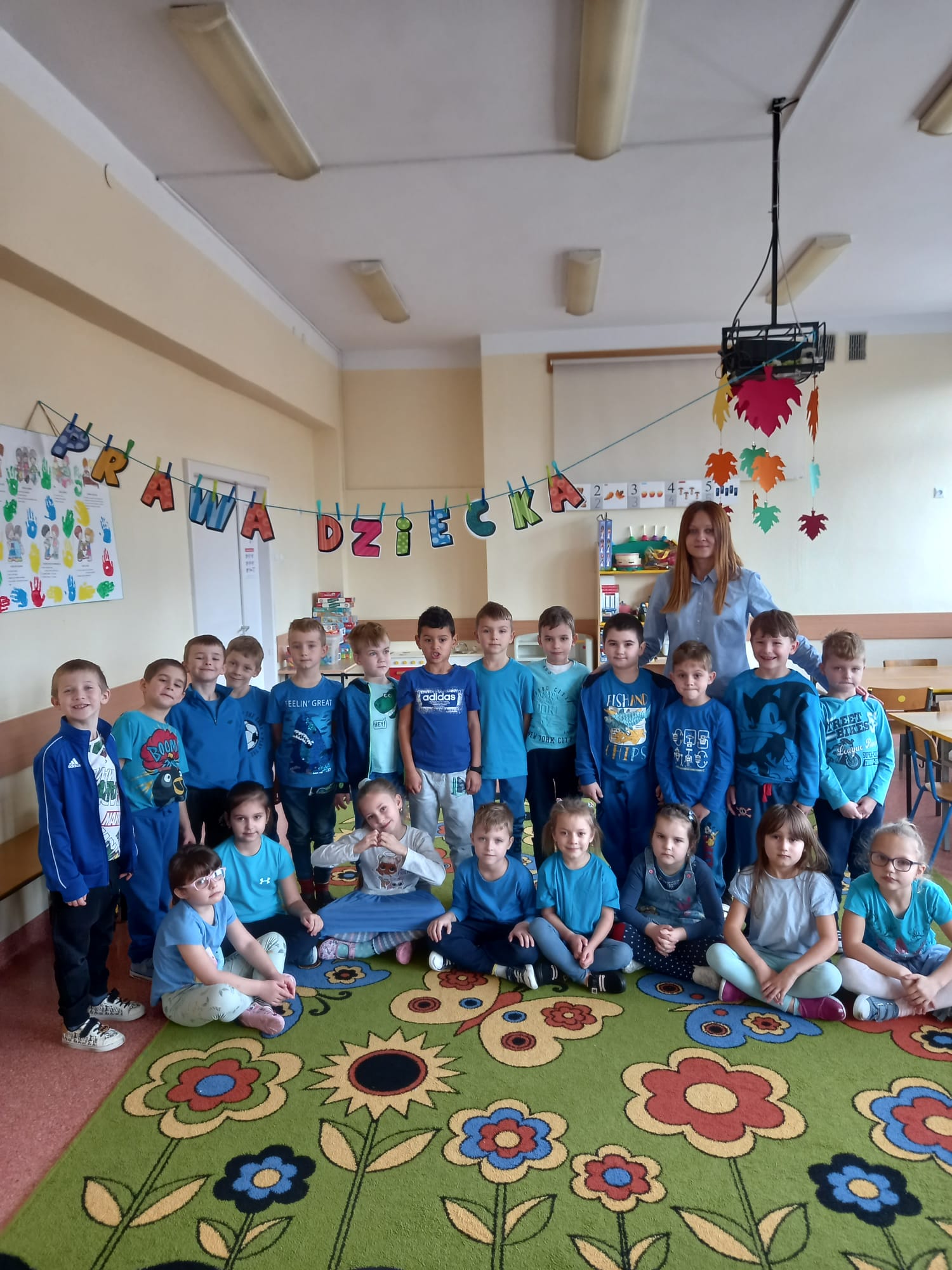 21 listopada świętowaliśmy w naszej grupie Międzynarodowy Dzień Praw Dziecka pod patronatem UNICEF. Jest on obchodzony w rocznicę uchwalenia Konwencji o Prawach Dziecka z roku 1989. W tym roku ten dzień wypadł w niedzielę, dlatego też nasze przedszkolaki obchodziły go w poniedziałek. Nasza grupa wzięła udział w projekcie edukacyjnym „Międzynarodowy Dzień Praw Dziecka z UNICEF 2022”. Tego dnia wszystkie dzieci, nauczyciele i pracownicy przyszli ubrani na niebiesko. Organizacja UNICEF łączy kolor niebieski w działaniach związanych z Międzynarodowym Dniem Praw Dziecka. Jest to symbol solidarności ze wszystkimi dziećmi na świecie, zwłaszcza tymi, których prawa nie są właściwie przestrzegane. Po śniadaniu wszystkie dzieci ustawiły się w serce, po czym wzięły udział w niebieskim marszu „Dla każdego dziecka”. Przedszkolaki w oparciu o film edukacyjny oraz ilustracje wymieniały podstawowe prawa dziecka. Z pomocą nauczyciela wyjaśniały, co oznaczają wybrane prawa. Wszystkie dzieci włączyły się w śpiew piosenki „Mam prawo żyć, mam prawo być sobą”. Dzieci są świadome, że prawa łączą się z obowiązkami. Wiedzą, że przestrzeganie ich praw jest konieczne, by bawić się i zgodnie współdziałać w grupie. W ramach podsumowania, stworzyliśmy drzewko z najważniejszymi prawami i obowiązkami dzieci. W holu korytarza przygotowano także interesującą i kolorową gazetkę z informacjami o prawach dziecka dla uczniów Szkoły Podstawowej nr 23 w Tarnowie.