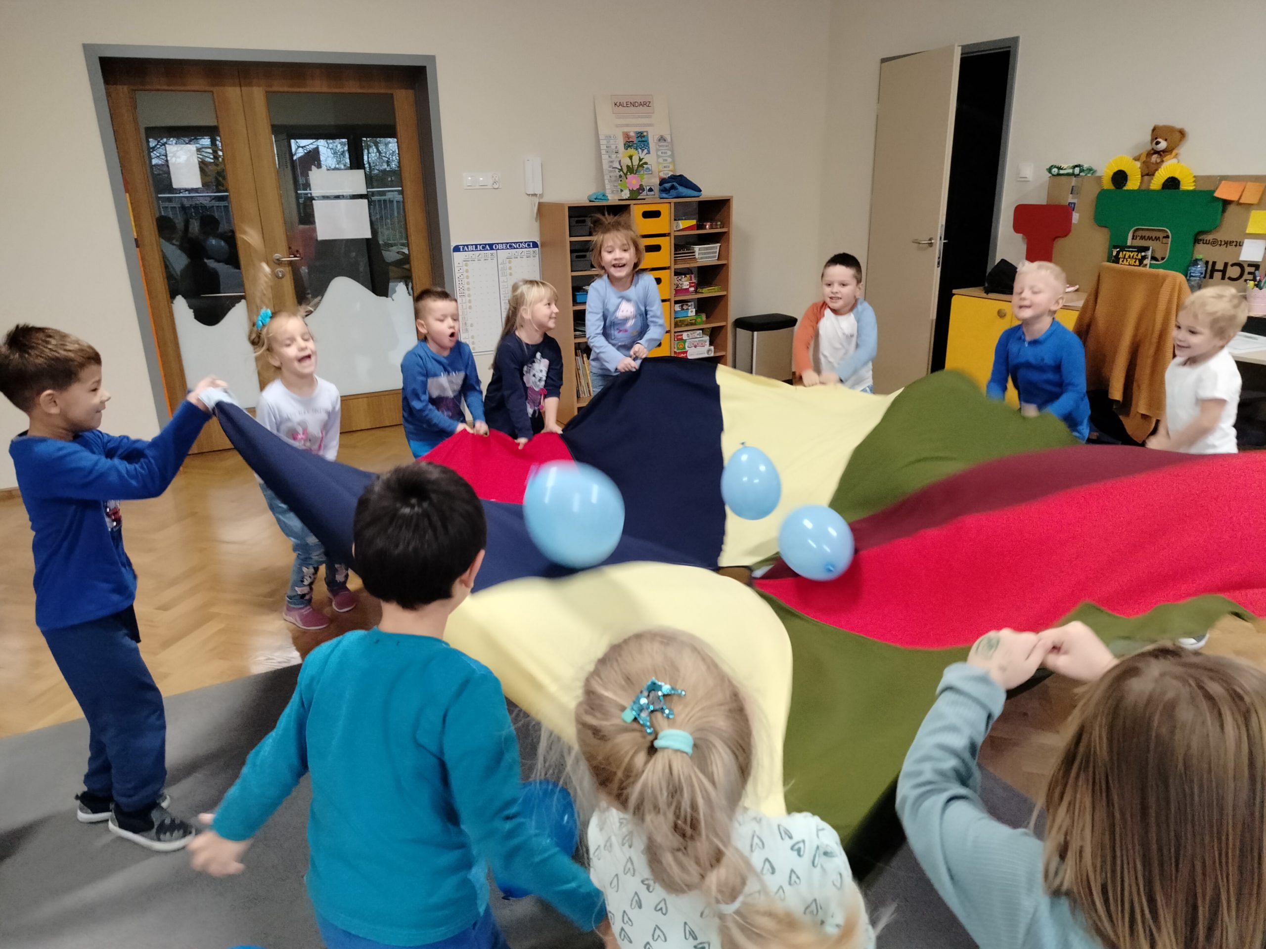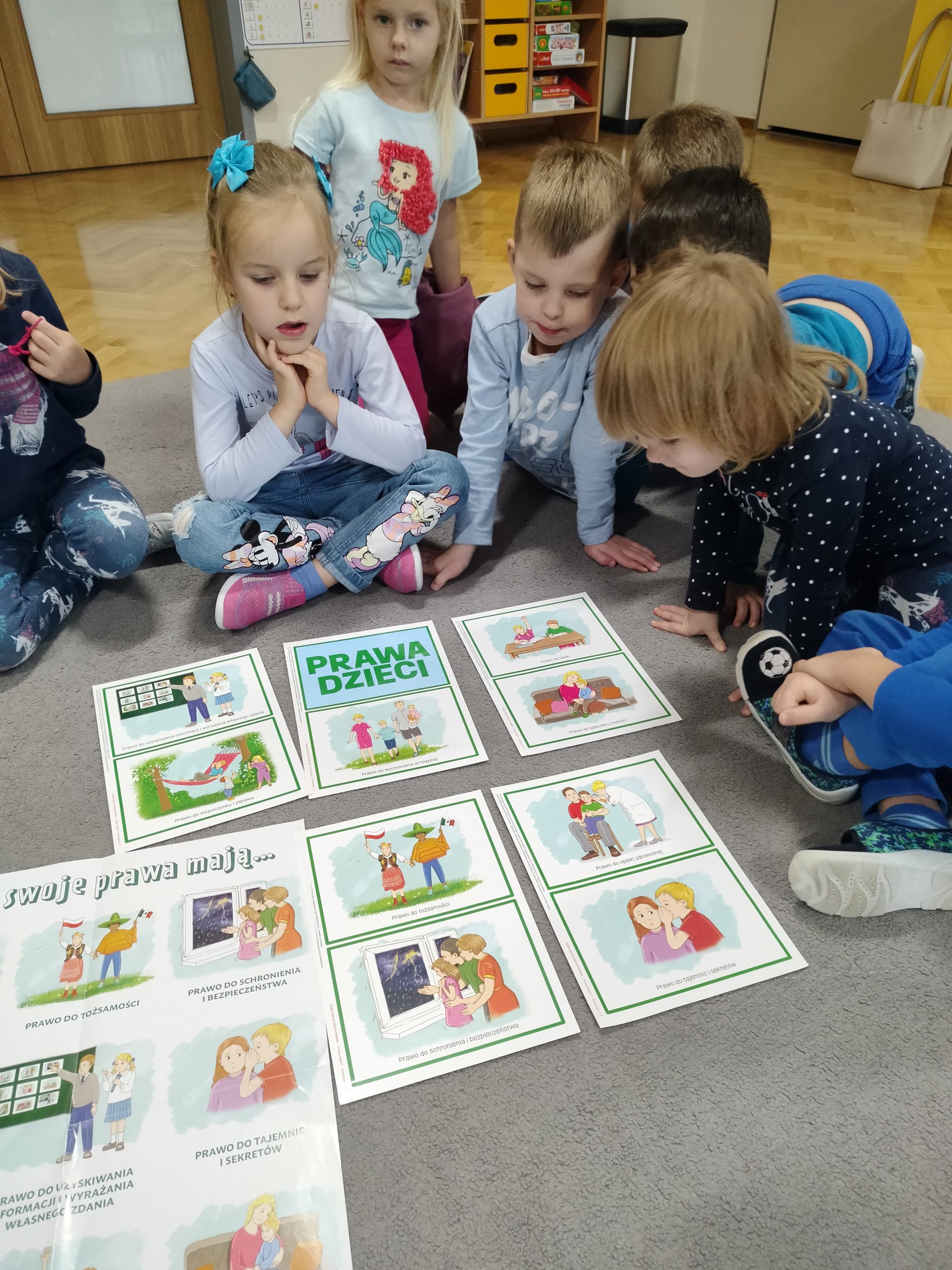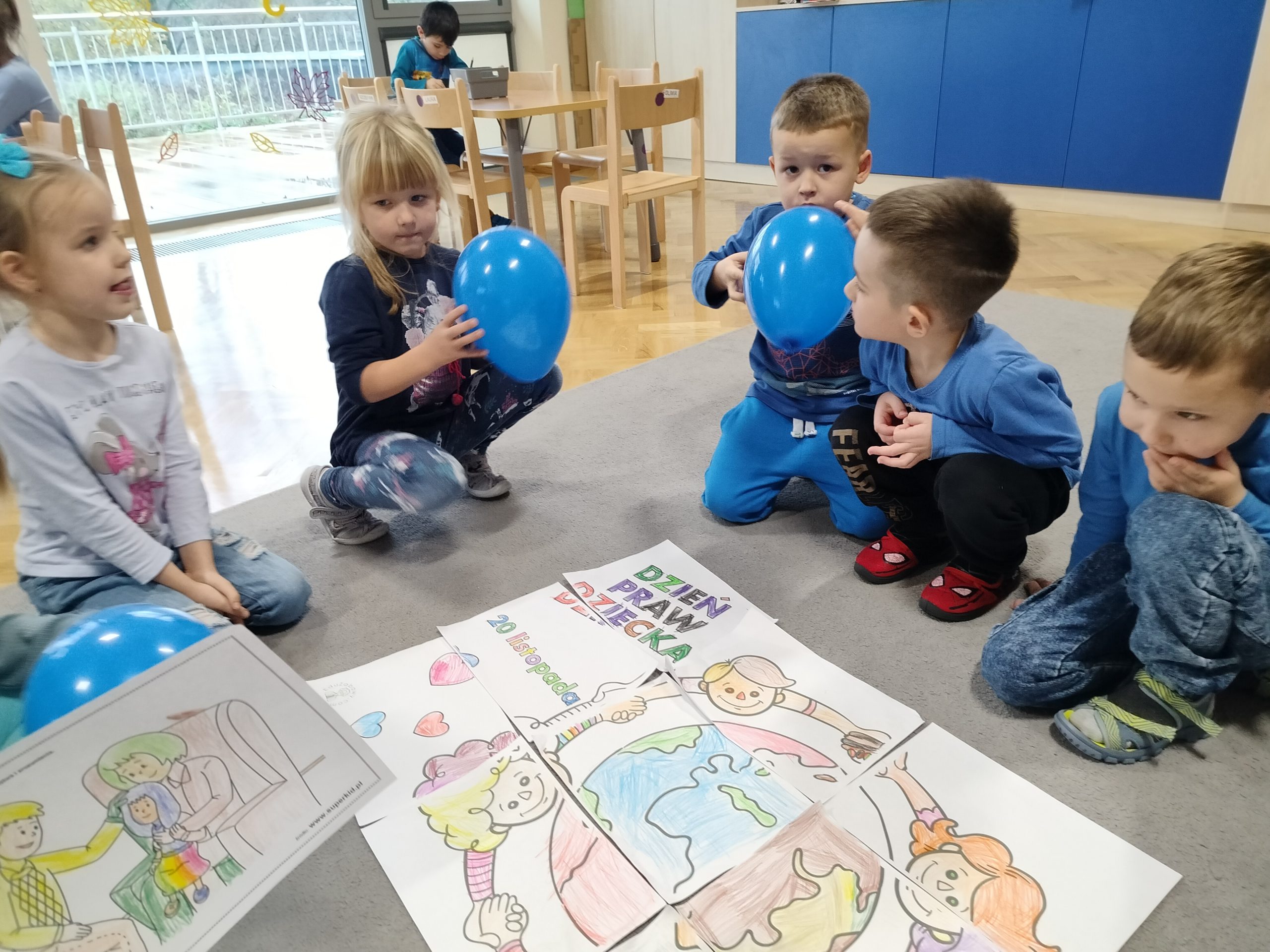 Dnia 20.11.2023r. świętowaliśmy w naszym przedszkolu Międzynarodowy Dzień Praw Dziecka pod patronatem UNICEF. 20 listopada to wyjątkowy dzień – rocznica uchwalenia Konwencji o prawach dziecka. Tego dnia wszystkie dzieci, nauczyciele i pracownicy przyszli ubrani na niebiesko lub mieli na sobie jakiś niebieski dodatek. Niebieski to kolor UNICEF symbolizujący jedność z dziećmi na całym świecie. Przedszkolaki wysłuchały opowiadania pt:” Mam swoje prawa”, uczestniczyły w zabawie z ilustracjami przedstawiającymi prawa dzieci. Układały puzzle, tańczyły do piosenki pt: „Dzieci swoje prawa mają”. Celem świętowania było kształtowanie świadomości posiadania własnych praw, stworzenie okazji do nazywania i okazywania emocji, rozwijanie umiejętności wyrażania się pozawerbalnie.