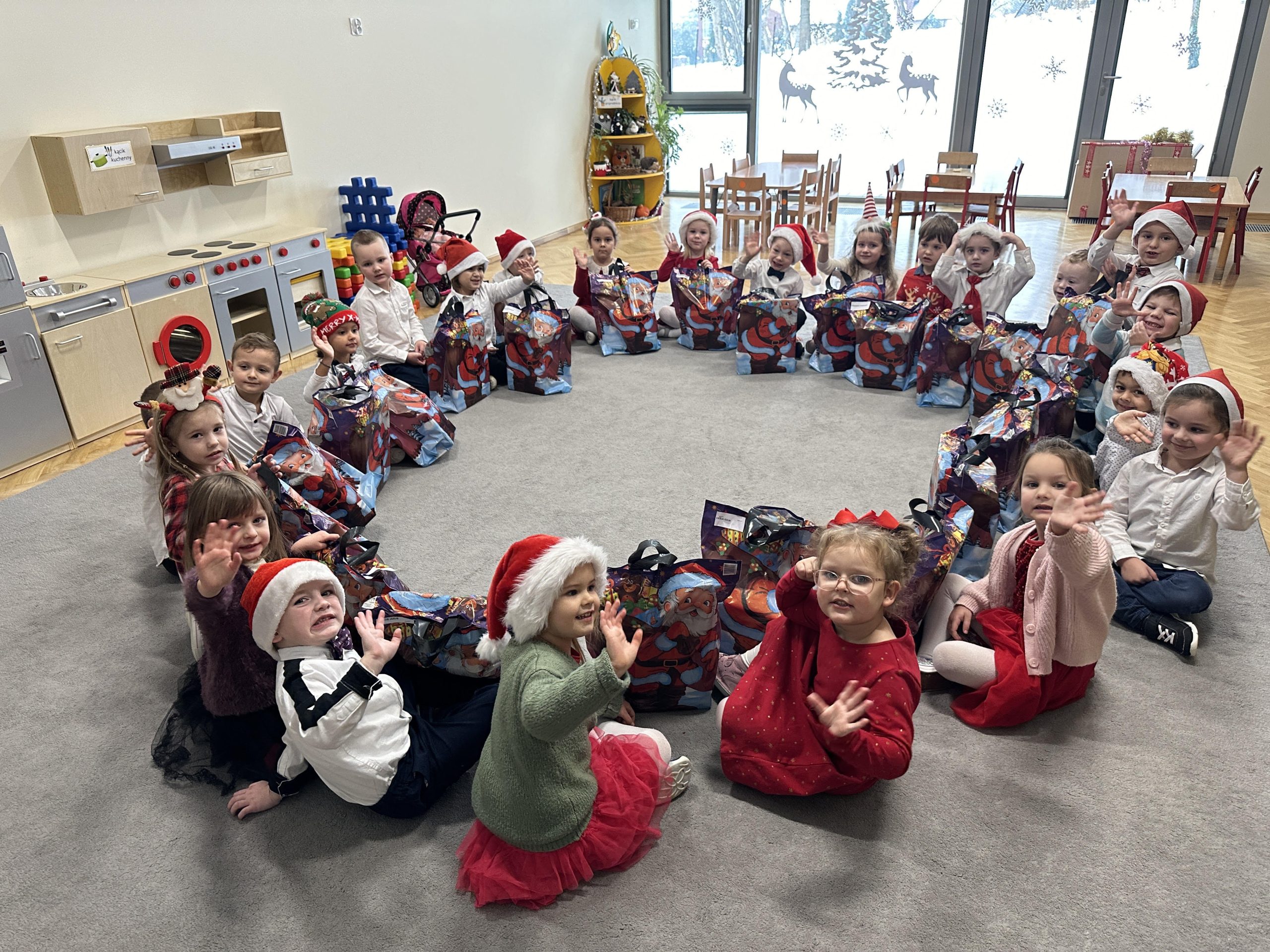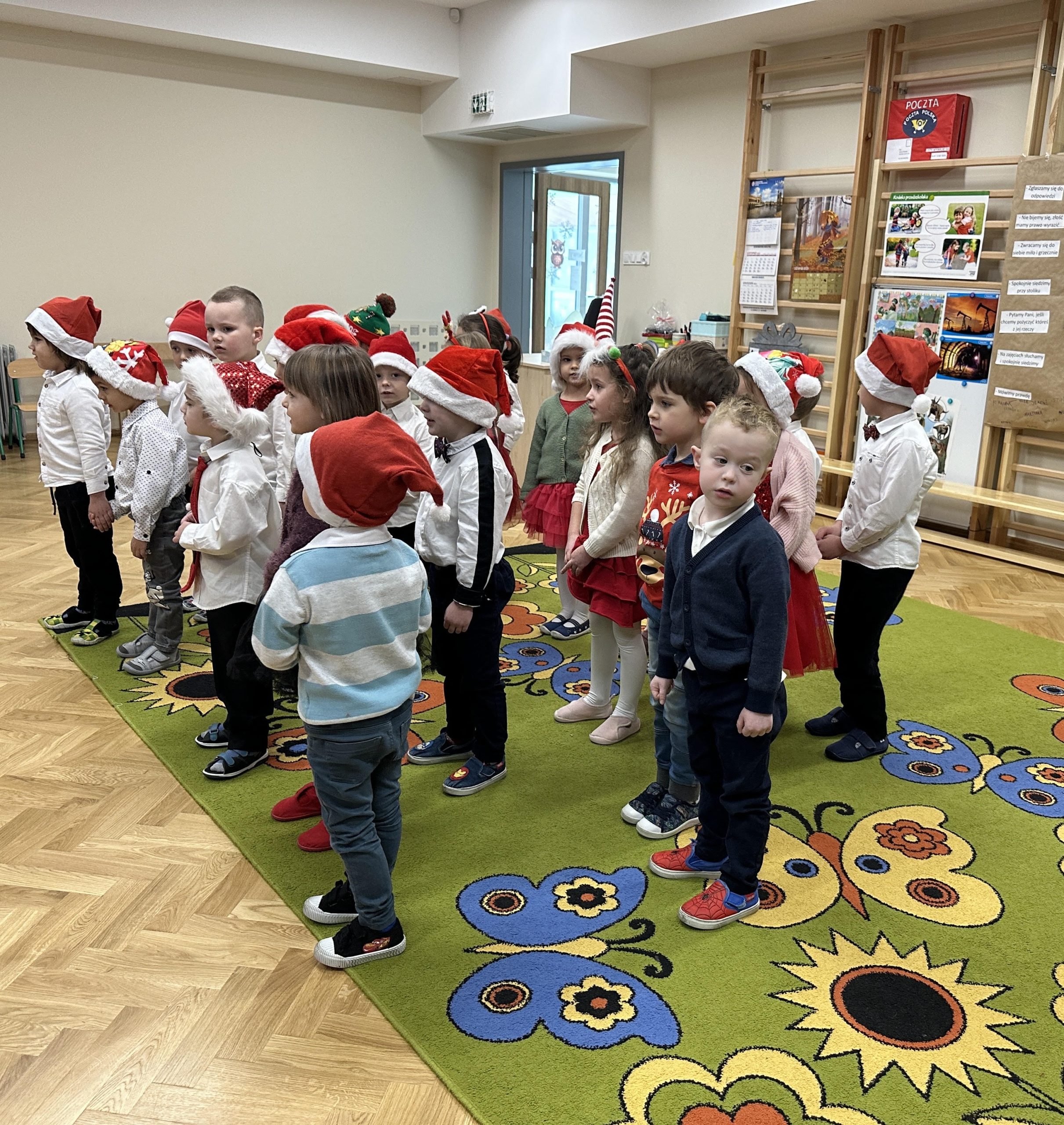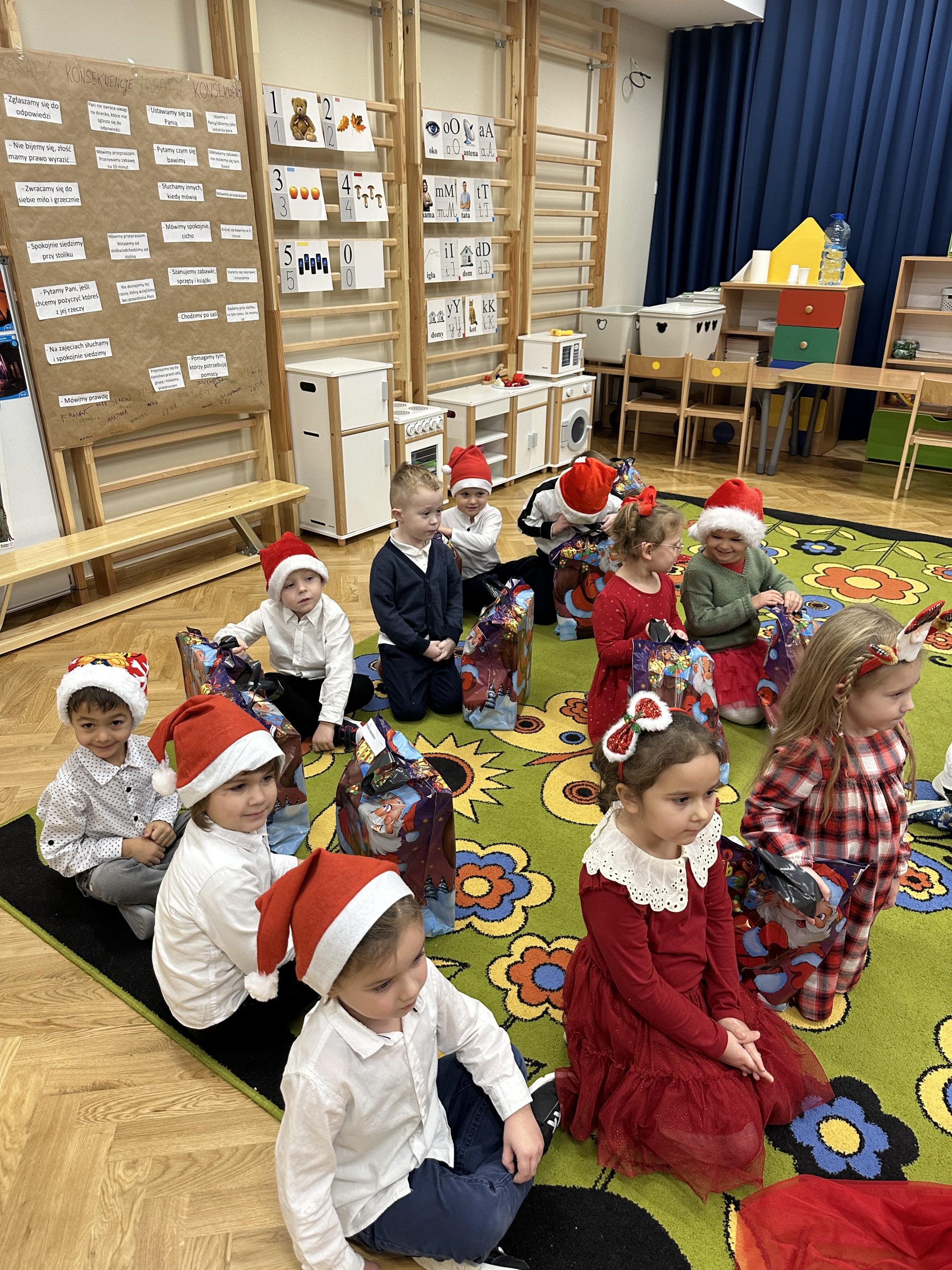 W środę 6 grudnia przedszkolaki już od rana czekały na wizytę Świętego Mikołaja. Dzieci nadsłuchiwały dźwięku dzwoneczków, które oznaczały przybycie długo wyczekiwanego gościa – Mikołaja. Wszystkie przedszkolaki nie mogły doczekać się tego spotkania. Dzieci z ogromną radością przywitały Mikołaja śpiewając mu piosenkę. Dzieci obiecały, że będą grzeczne i posłuszne przez cały rok. Na zakończenie Święty Mikołaj wszystkim przedszkolakom osobiście przekazał piękne prezenty. Dzieci zrobiły sobie pamiątkowe zdjęcie z Mikołajem.