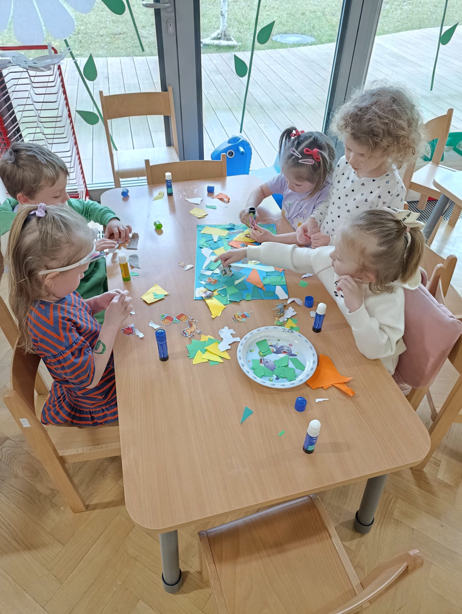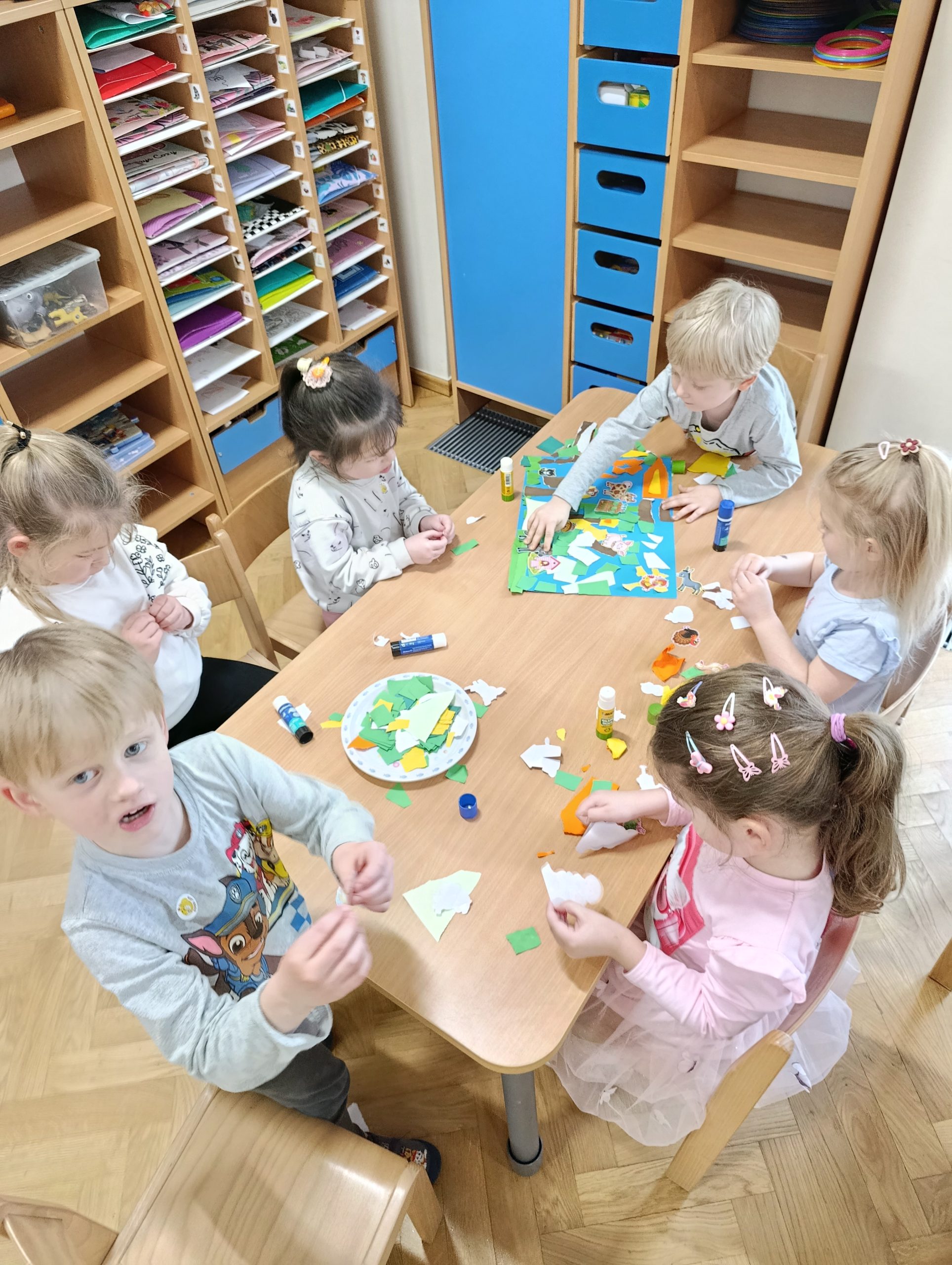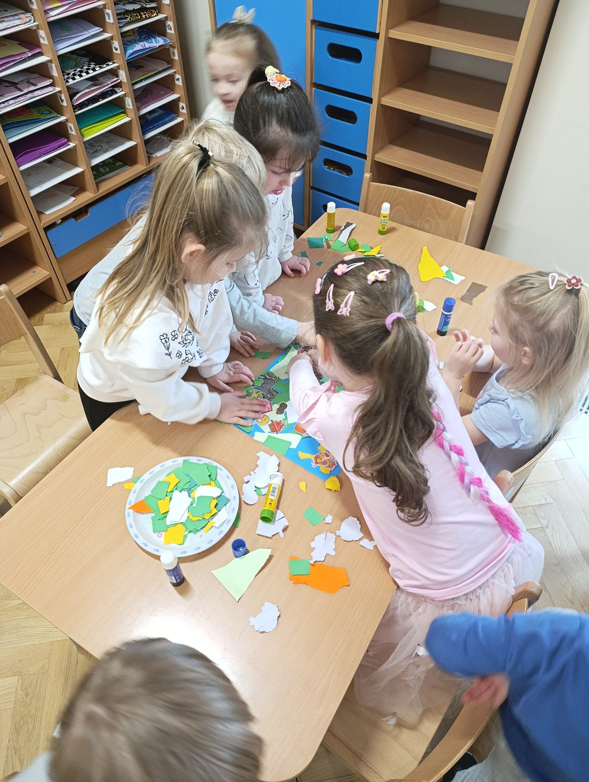 W czwartym tygodniu marca motywem przewodnim na zajęciach w grupie Misiów były zwierzęta mieszkające na wsi. Dzieci miały okazję nie tylko poznać różne zwierzęta wiejskie, ale także zrozumieć, jakie korzyści płyną z ich hodowli. Misie nazywały poszczególne zwierzęta gospodarskie, łączyły je w rodziny, a przy pomocy specjalnej aplikacji rozpoznawały je po brzmieniach ich głosów. Naśladowanie odgłosów i chodu zwierząt okazało się świetnym sposobem na rozwijanie wyobraźni oraz umiejętności motorycznych. Nie zabrakło również matematycznych aktywności, dzięki którym dzieci rozwijały umiejętności liczenia oraz logicznego myślenia. Teatrzyk sylwet pt.: „Kwoka” Jana Brzechwy przypomniał przedszkolakom nie tylko o zasadach dobrego zachowania, ale także stanowił wprowadzenie do zajęć matematycznych, w trakcie których dzieci rozwijały umiejętność przeliczania elementów w zakresie 6. Podczas zajęć plastycznych Misie stworzyły wiejską zagrodę oraz powstały biało-czarne krówki z papierowych talerzyków. Dzieci miały okazję pracować w grupach, co sprzyjało współpracy i integracji. Z radością brały również udział w zabawach muzyczno-ruchowych, które doskonale uzupełniały nasze zajęcia.