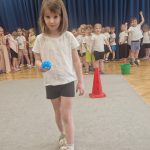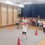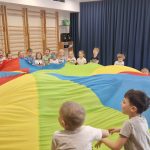 Podczas zajęć przedszkolaki brały udział w różnorodnych zabawach ruchowych, ćwicząc sprawność fizyczna, zwinność oraz koordynację ruchową. Nie zabrakło również elementu zdrowej rywalizacji -dzieci zdobywały punkty, starając się osiągnąć jak najlepszy wynik.