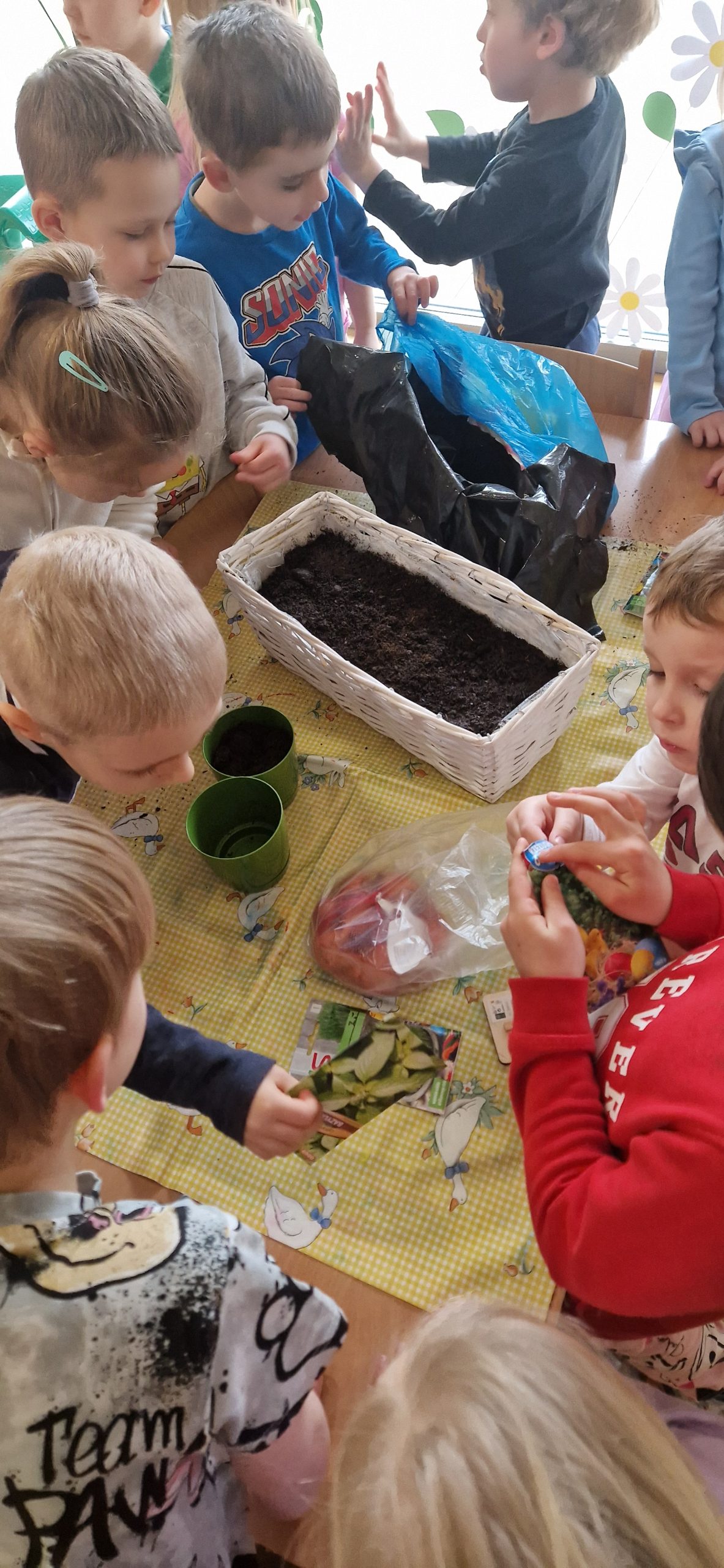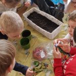 Dzieci z dużym zaangażowaniem sadziły rośliny oraz wysiewały nasiona, poznając przy tym etapy wzrostu roślin i warunki potrzebne do ich rozwoju.