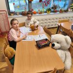 W kolejnej części dnia przedszkolaki rozwiązywały misiowe zadania matematyczne, z zapałem licząc, porównując i układając różne zadania związane z misiami. Nie zabrakło również chwili na relaks – dzieci obejrzały bajkę „Złotowłosa i trzy misie”, która wprowadziła wszystkich w bajkowy nastrój.