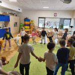 Po seansie rozpoczęły się zabawy ruchowe z misiami. Najwięcej śmiechu przysporzyła klasyczna zabawa „Stary niedźwiedź mocno śpi”, w której dzieci chętnie brały udział, zarażając wszystkich dobrym humorem.