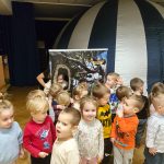 W naszym przedszkolu odbyła się niezwykła podróż w kosmos! Dzięki Mobilnemu Planetarium „Orbitek” dzieci wzięły udział w interaktywnym seansie pt. „Misja Zielone”, podczas którego pomagały kosmicznym przyjaciołom – Imani, Aki i Johnowi – uratować ich ukochany las. Podczas interaktywnego seansu dzieci odkryły, jak ważna jest przyroda wokół nas. Podczas seansu mali odkrywcy dowiedzieli się: czego rośliny potrzebują do życia, dlaczego naturalne siedliska są tak ważne dla wszystkich istot, jak wspólne działania mogą zmieniać świat na lepsze.