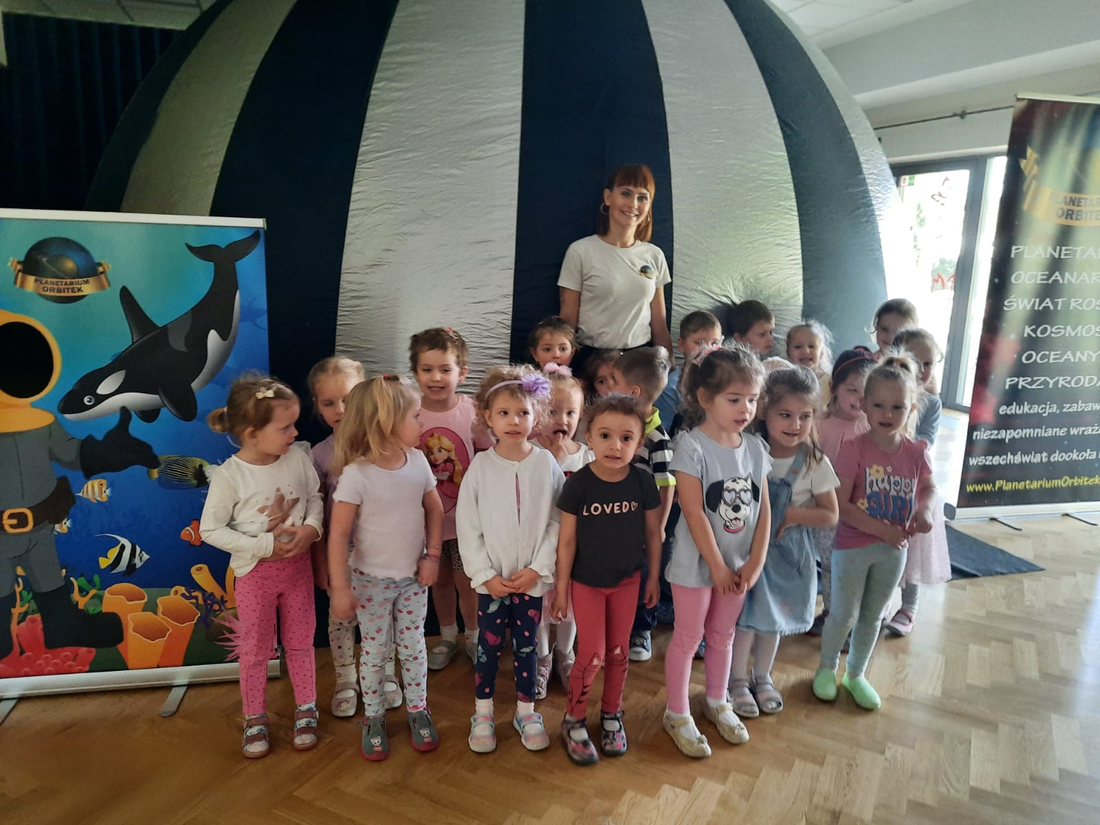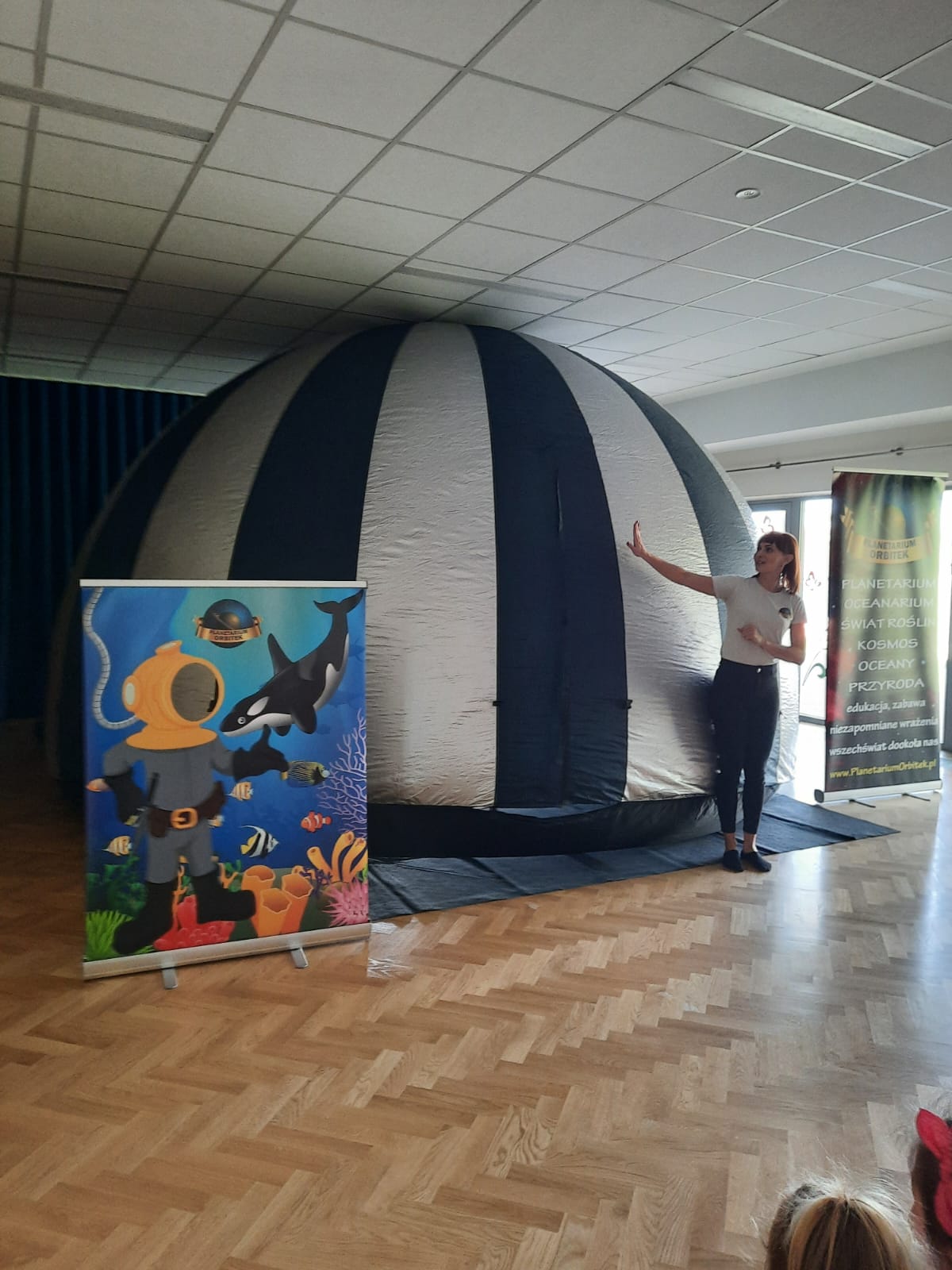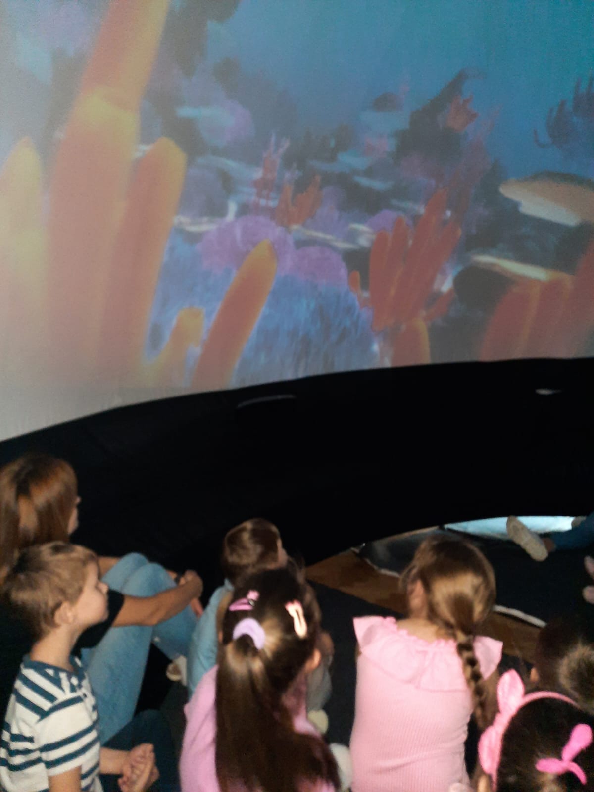 9 kwietnia 2024 roku nasze przedszkole odwiedziło Mobilne Oceanarium, które zabrało dzieci w niezwykłą podwodną podróż. W specjalnej kopule ustawionej w sali gimnastycznej, wyświetlona została prezentacja 3D „Zaczarowana Rafa – Kaluoka’Hina”. Dzieci po wejściu do środka mogły odnieść wrażenie, że znajdują się na dnie oceanu. A to wszystko za sprawą pływających wokół ryb i innych morskich stworzeń, mieszkańców raf koralowych. Była to przepiękna opowieść o przyjaźni, odwadze i o tym, jak niewielkie decyzje mogą mieć wpływ na cały świat. Ta inspirująca podróż w głąb mórz i oceanów była dla dzieci źródłem wielu pozytywnych emocji i wrażeń.