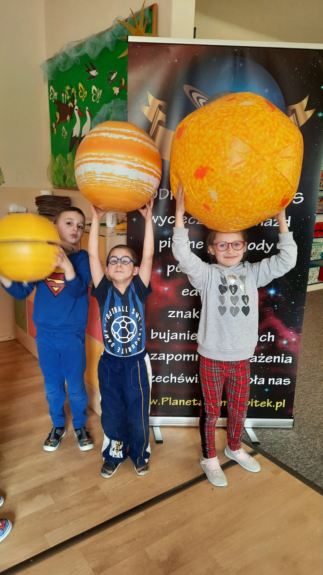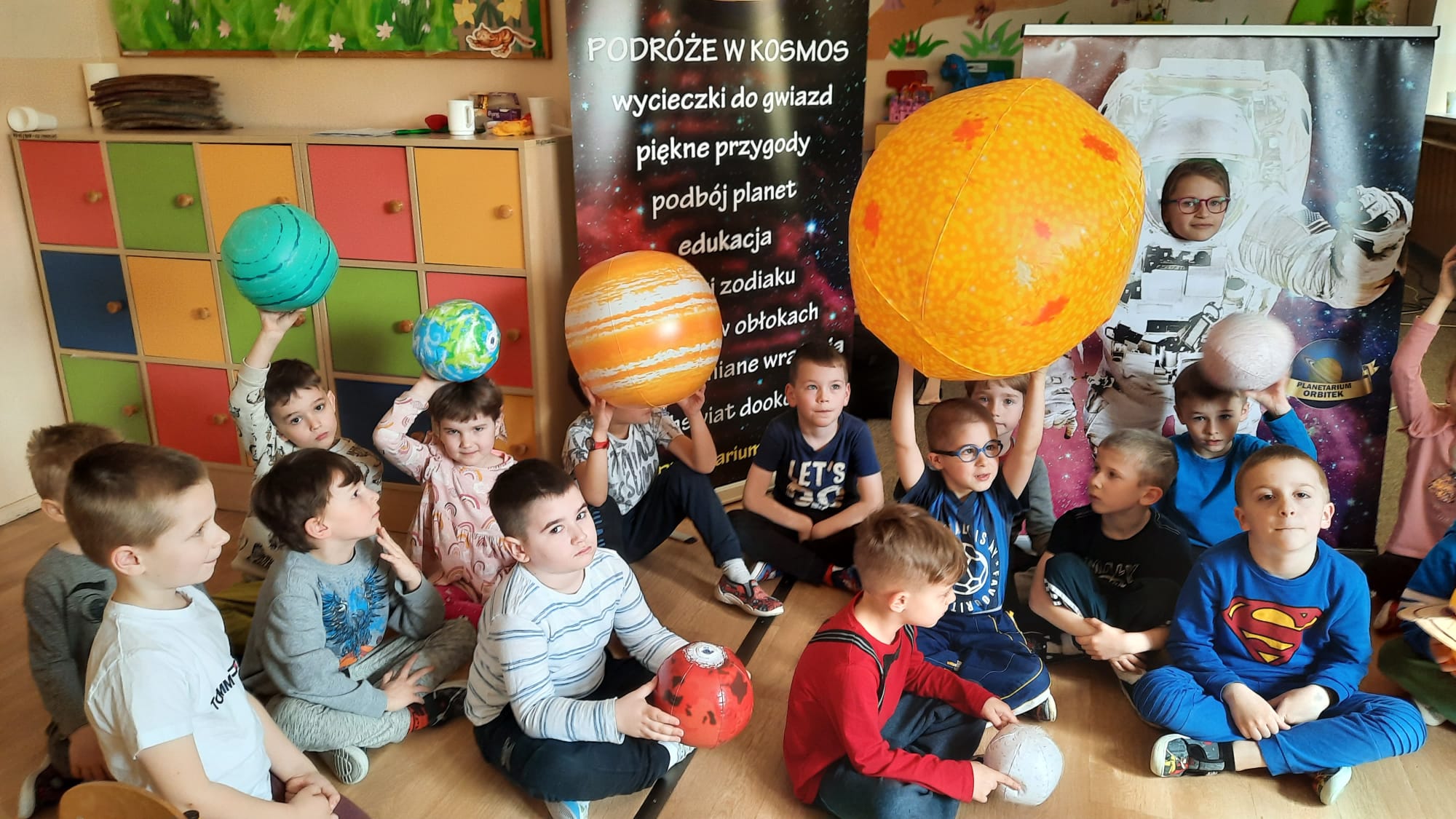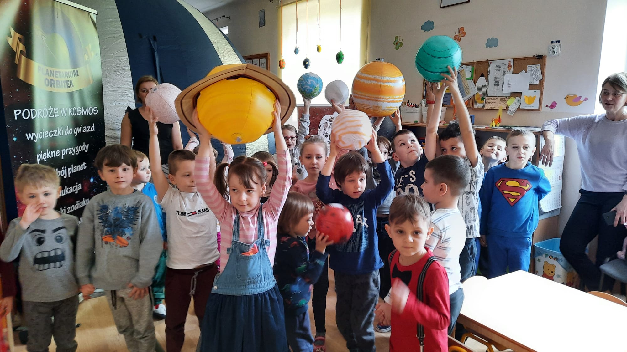 21 kwietnia Jeżyki uczestniczyły w seansie edukacyjnym „ Mój kosmos” w mobilnym planetarium. Dzięki pokazom w kopule, która dawała wrażenie przestrzeni kosmicznej, dzieci odbyły podróż przez Układ Słoneczny, przechadzały się po Marsie, lądowały na Księżycu. Mogły również poznać zjawiska związane z ruchem sfery niebieskiej, zmianą położenia planet, zaćmieniem słońca i deszczem meteorytów. W jednej chwili Jeżyki przeniosły się w zagadkowy świat kosmosu. Pokaz wszystkim dostarczył niezapomnianych wrażeń.