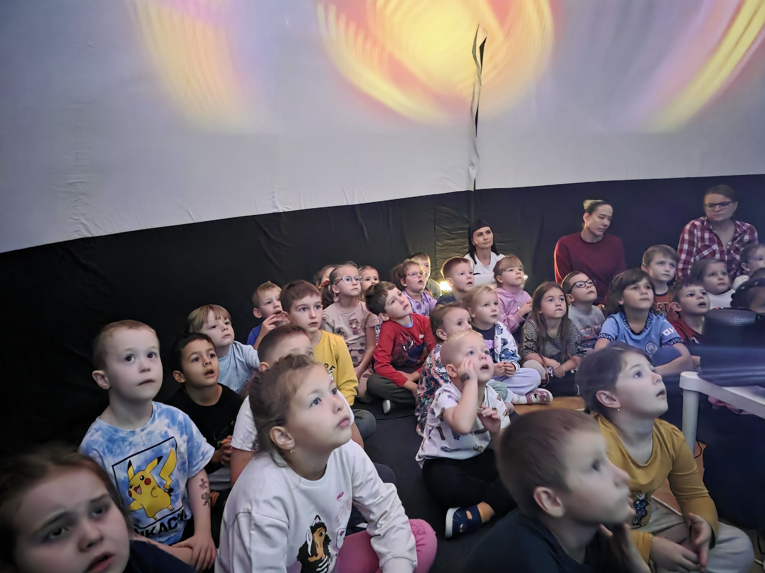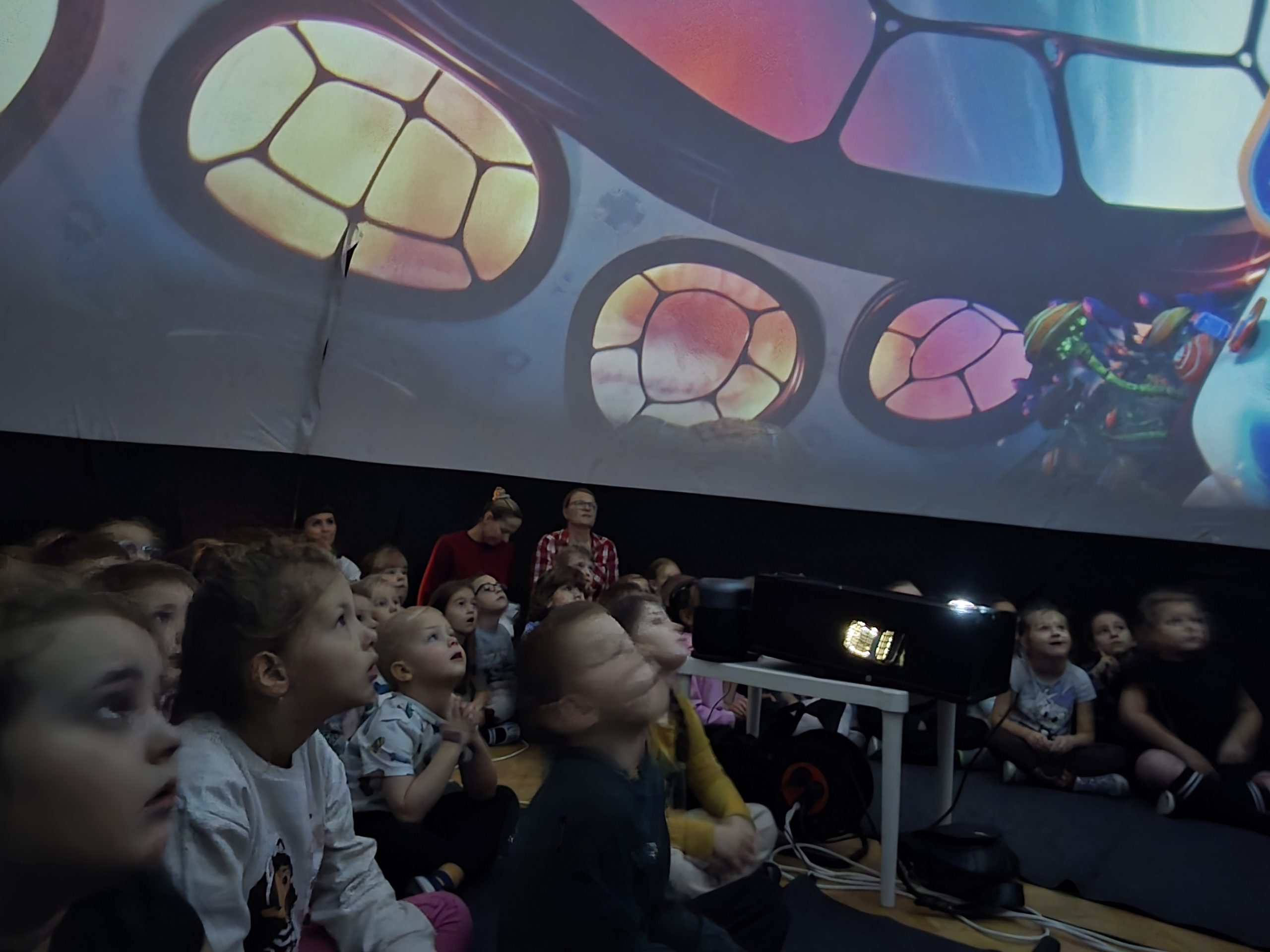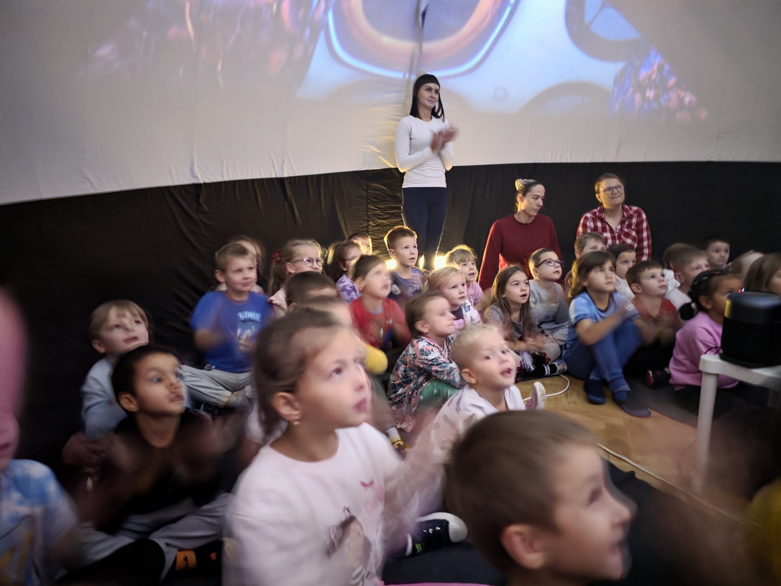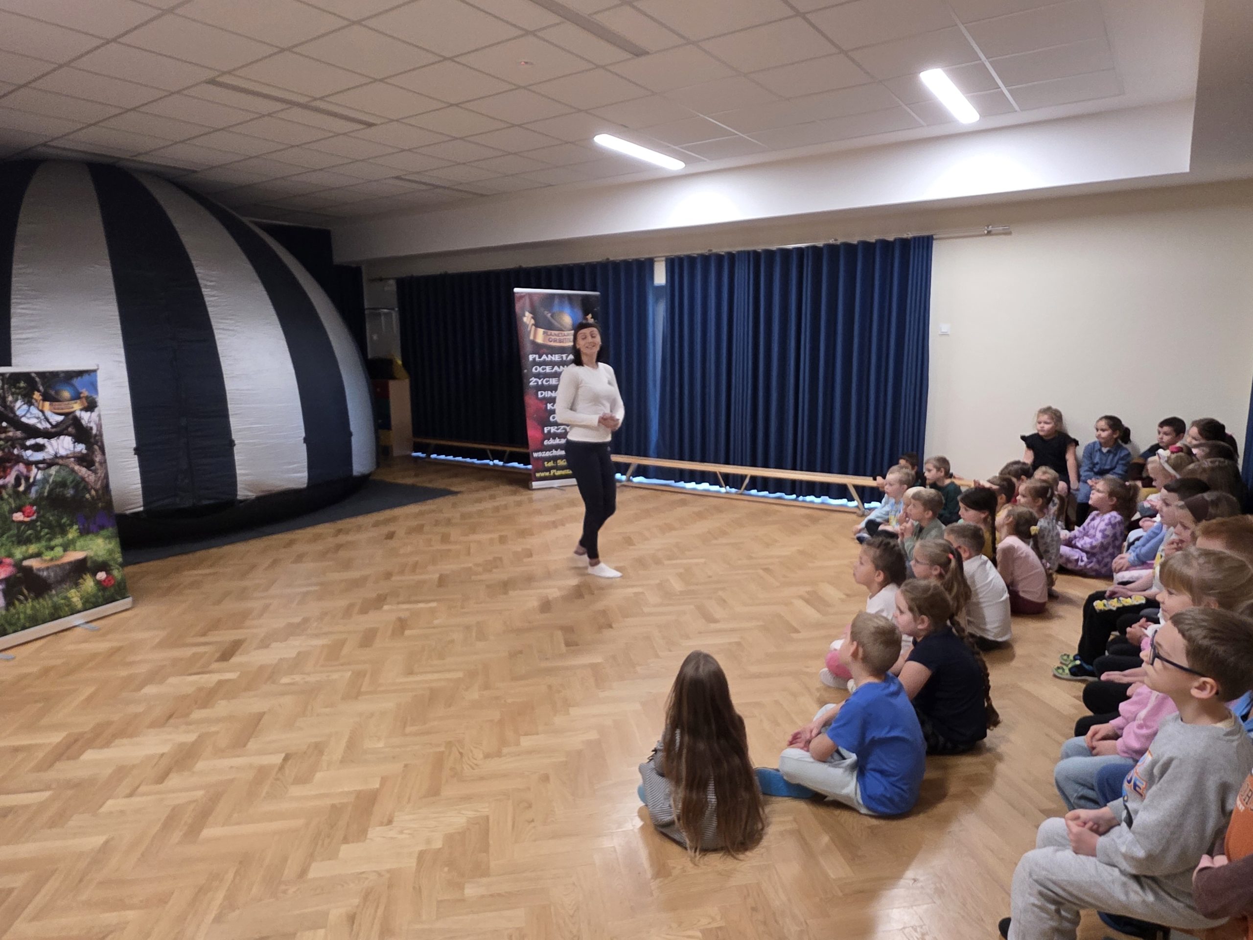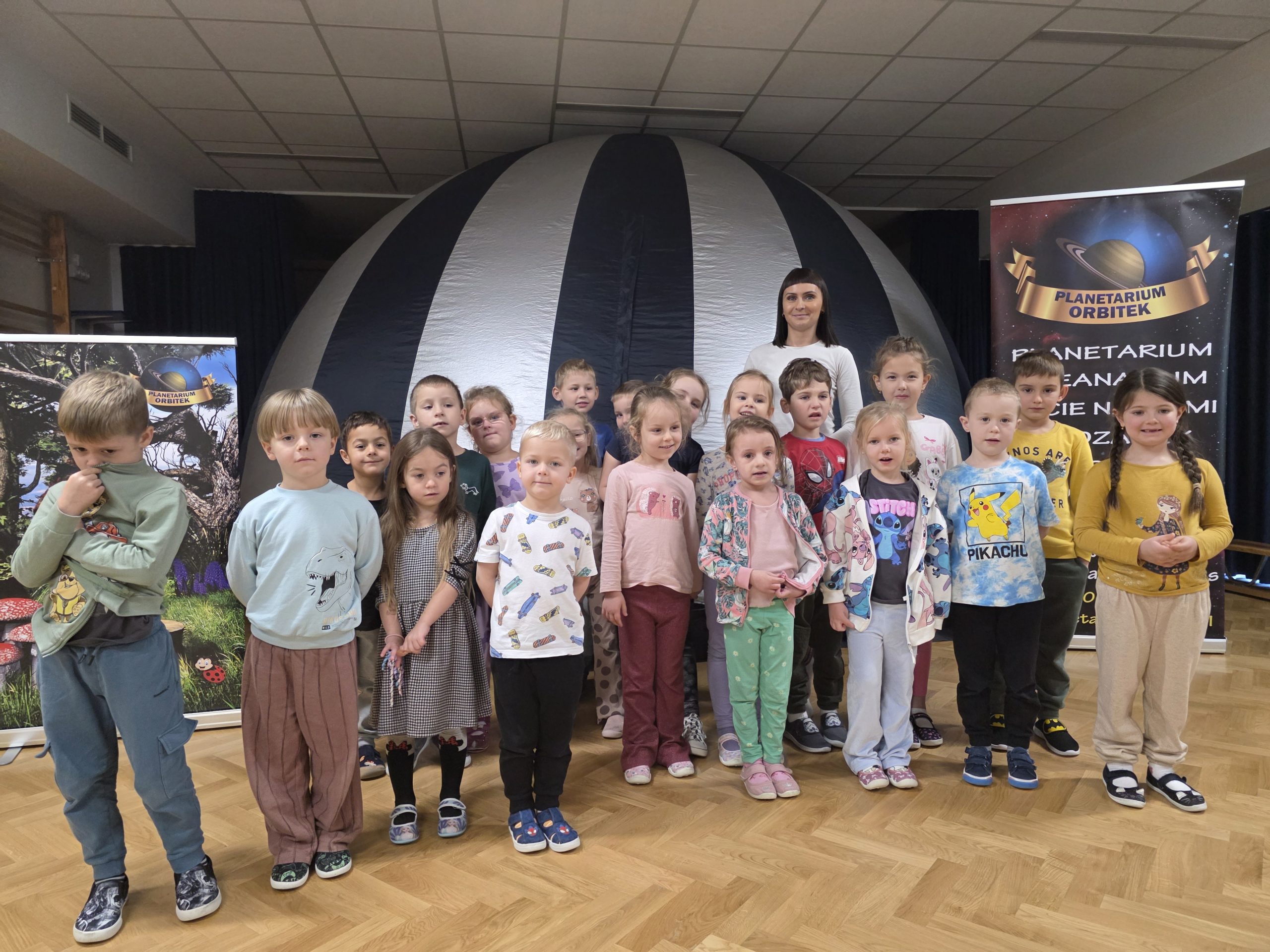 23 października gościliśmy w naszym przedszkolu Mobilne Planetarium Orbitek, które przeniosło nasze przedszkolaki w fascynujący i cudowny świat przyrody. Wielką atrakcją było wejście do wielkiej nadmuchanej kopuły, w której za pomocą projektora wyświetlany był film animowany, który w prosty sposób wyjasnił dzieciom niektóre tajemnice życia na Ziemi. Dzięki niemu dzieci odkrył również, jak niezwykły jest ten mały ekosystem.