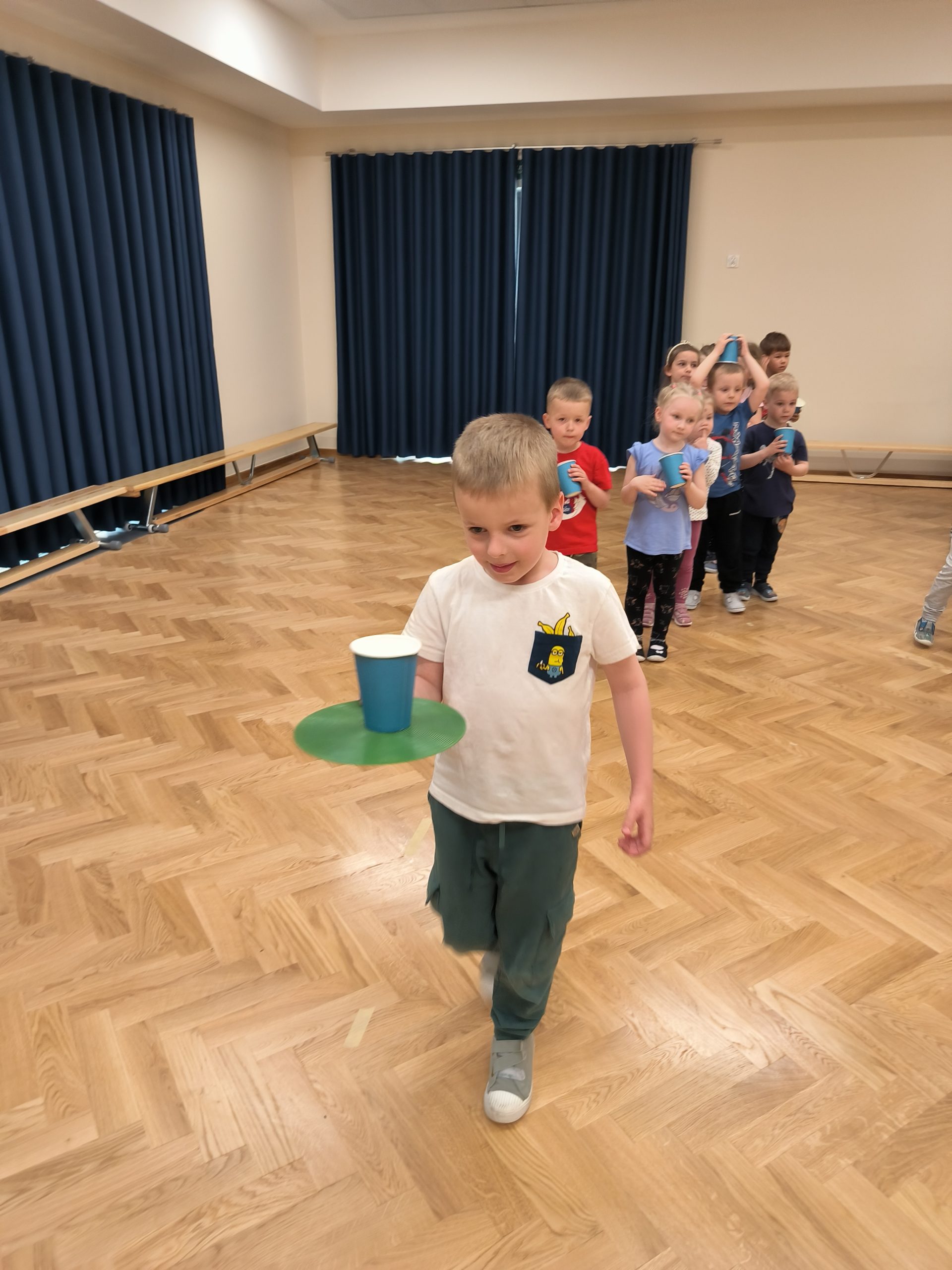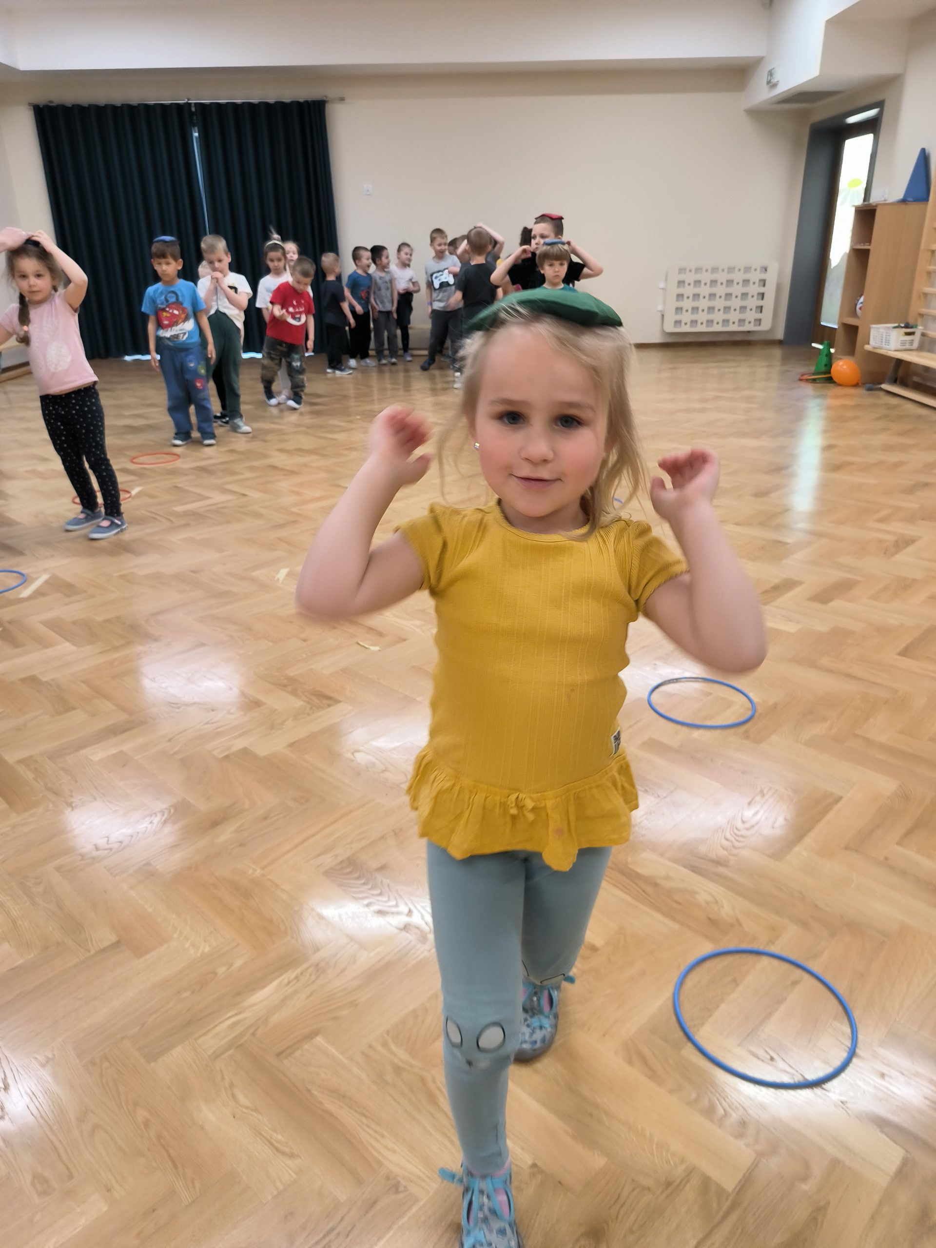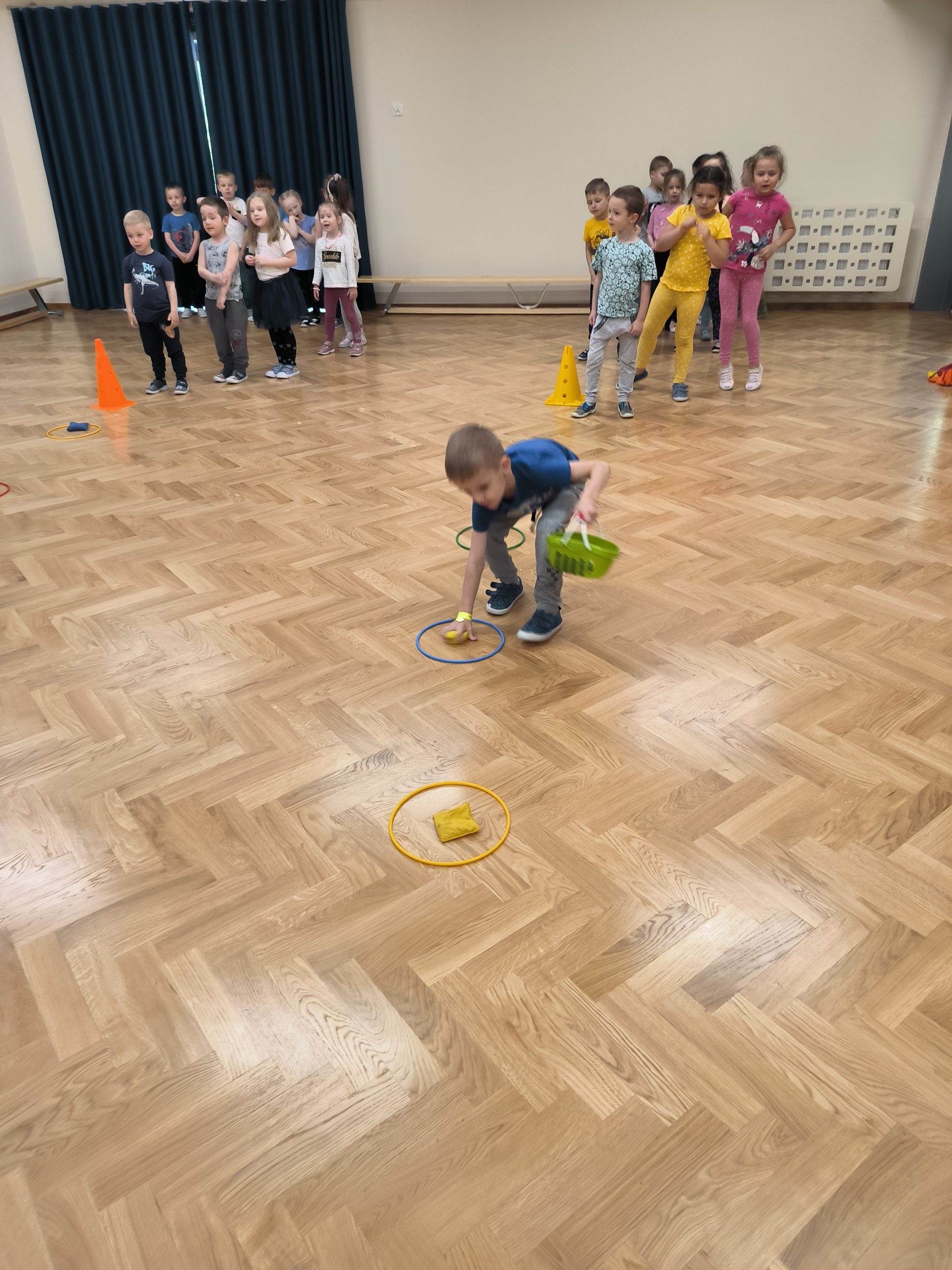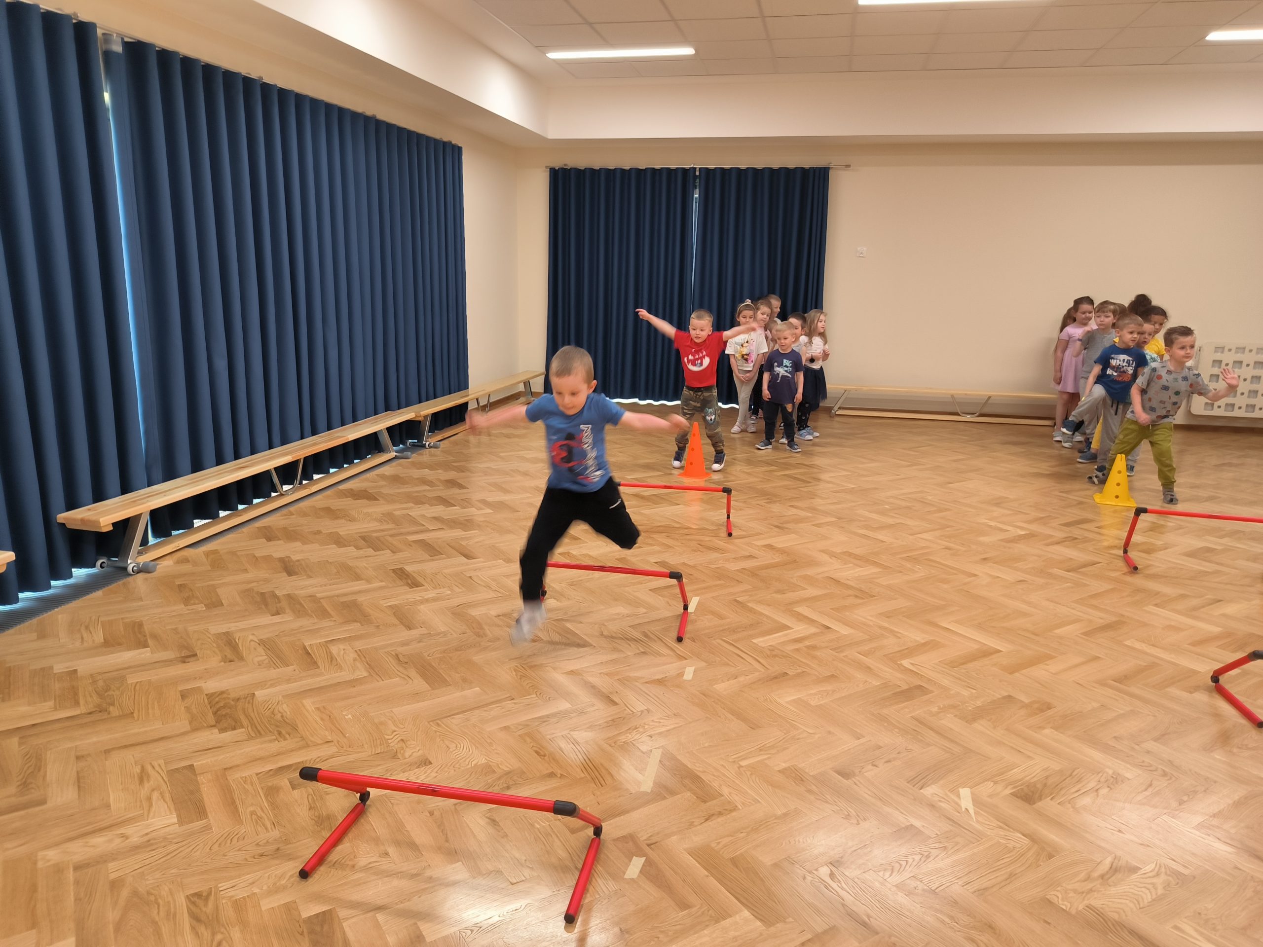 W dniu dzisiejszym „Wiewiórki” i „Jeżyki” wzięły udział w zawodach sportowych. Wśród wielu konkurencji było przeskakiwanie przez płotki, slalom z woreczkami na głowie, czy też wyścig z balonami. Wszystkim konkurencjom towarzyszyło dużo śmiechu i dobrej zabawy. Wszystkie dzieci na zakończenie zawodów otrzymały zasłużone złote medale.