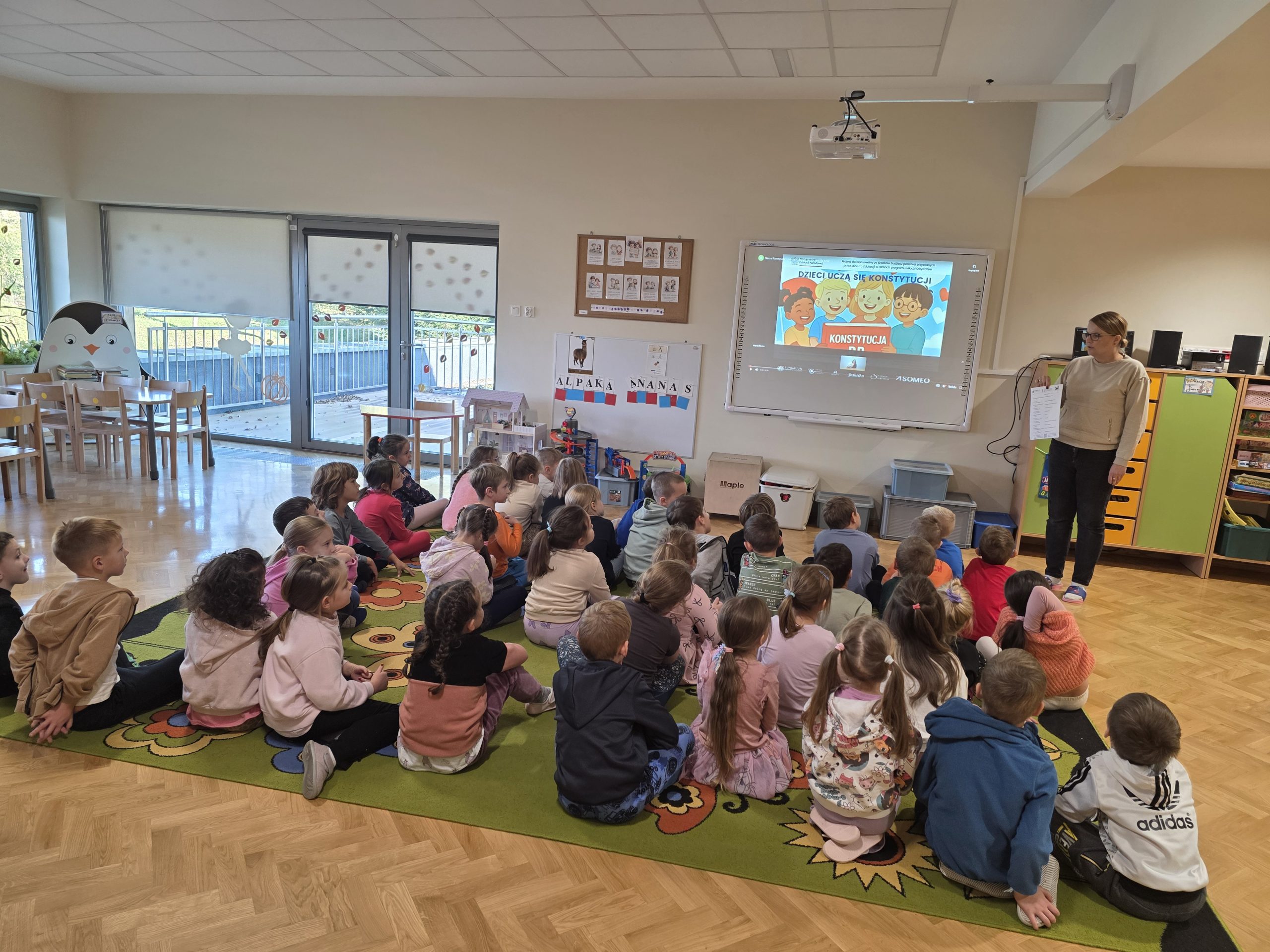 Prezentacja wprowadziła najmłodszych w świat najważniejszego dokumentu w państwie poprzez proste definicje, ilustracje i pytania aktywizujące. Dzieci dowiedziały się m.in. czym są prawa i obowiązki obywateli, dlaczego ważne jest bezpieczeństwo, zdrowie i rodzina, a także jakie znaczenie mają symbole narodowe.