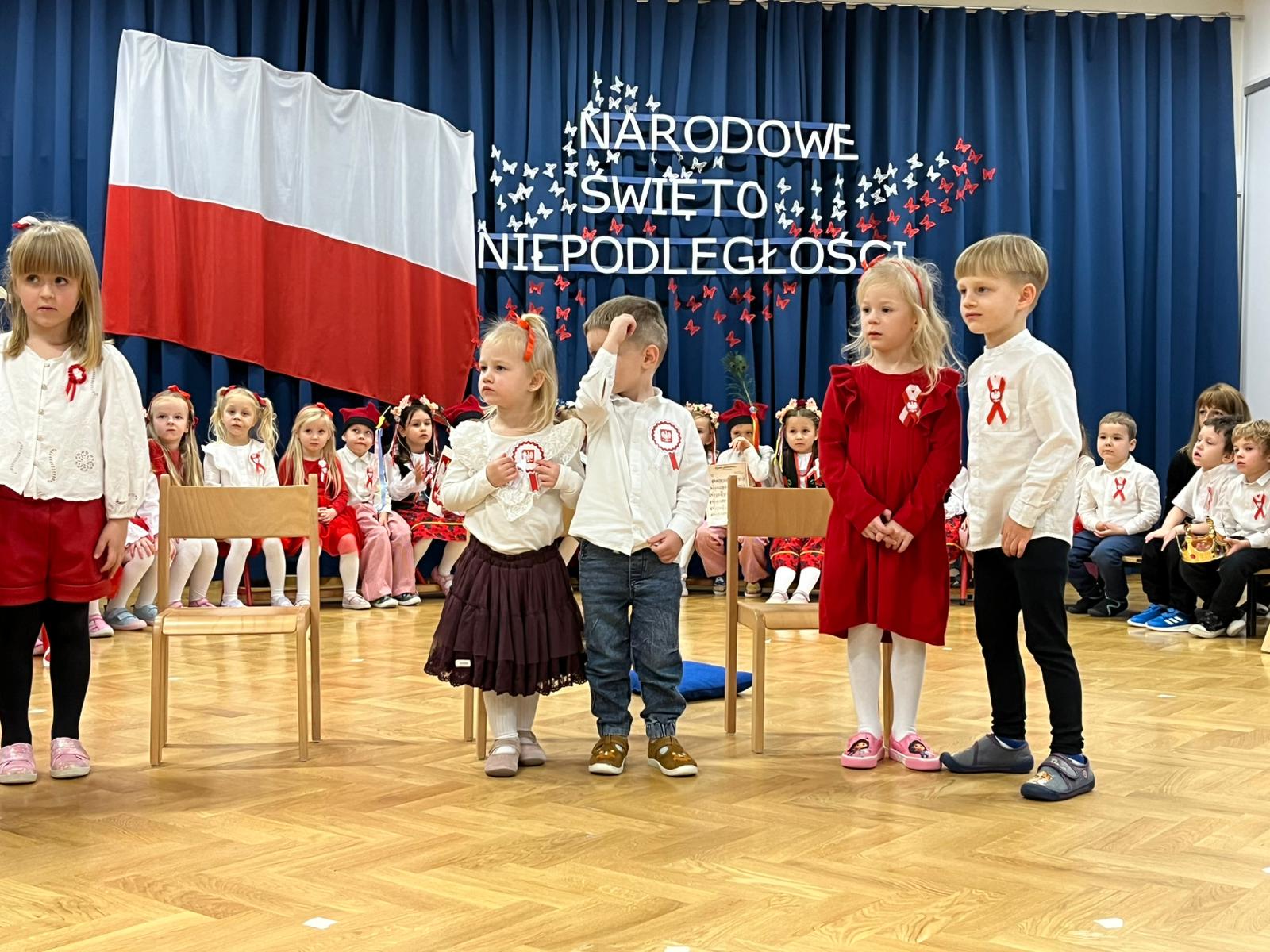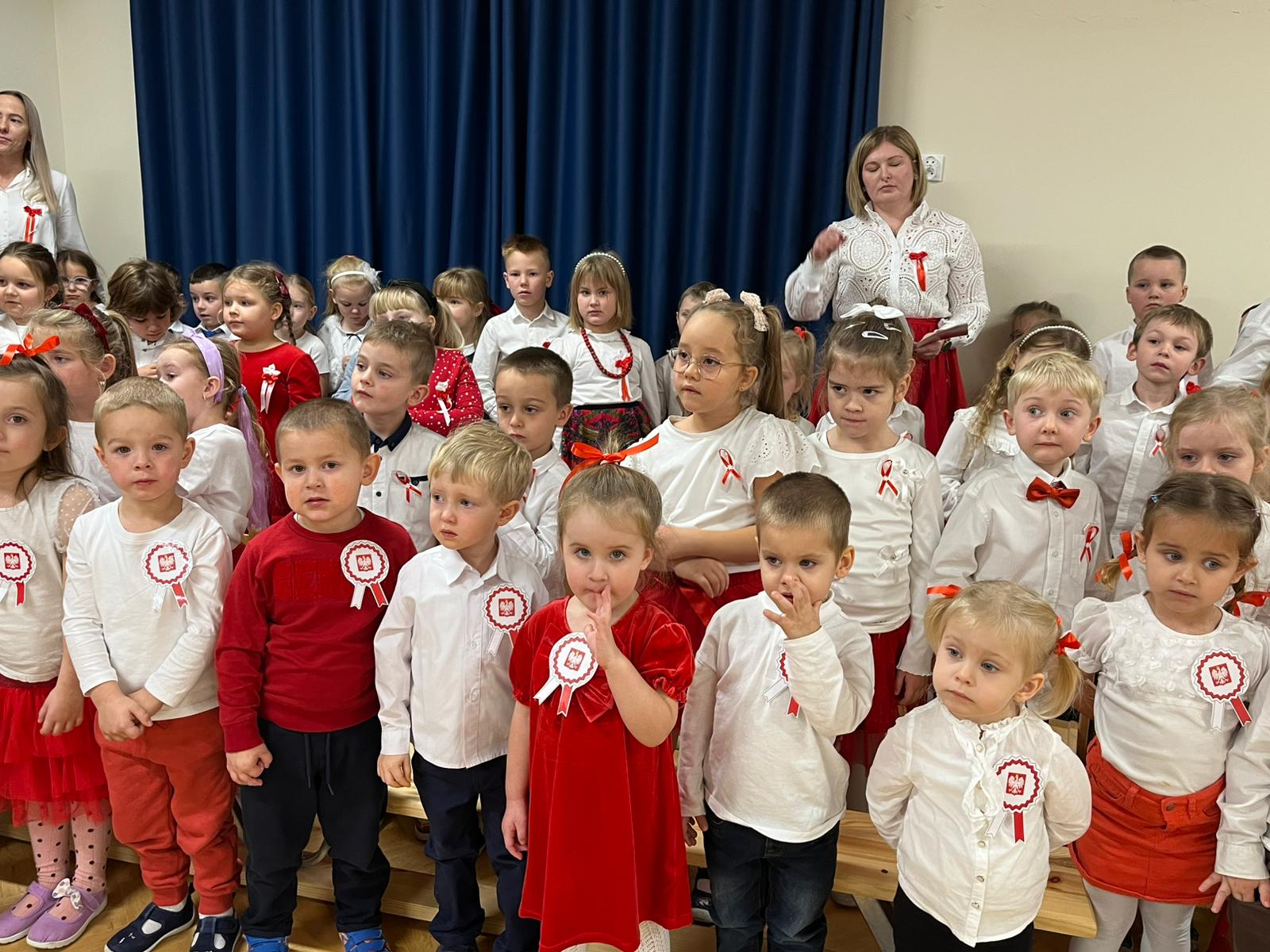 7 listopada w naszym przedszkolu odbyła się uroczysta akademia z okazji Narodowego Święta Niepodległości. Cała społeczność przedszkolna z dumą odśpiewała Hymn Polski, oddając hołd bohaterom, którzy walczyli o wolność naszej Ojczyzny. Uroczystość była częścią ogólnopolskiej akcji „Szkoła do hymnu”. Młodsze grupy włączyły się w obchody, wykonując piosenkę patriotyczną „Hymn małego patrioty”. Dzięki temu nawet najmłodsze „Jeżyki” mogły z zaangażowaniem uczcić ten wyjątkowy dzień i lepiej zrozumieć jego znaczenie. W dniach poprzedzających akademię dzieci tworzyły prace plastyczne o tematyce narodowej – flagę Polski oraz biało-czerwone symbole, które ozdobiły naszą salę i korytarz przedszkola. Był to wyjątkowy i wzruszający dzień, który pozwolił najmłodszym w prosty i piękny sposób zrozumieć, czym jest miłość do Ojczyzny, wolność i wspólnota narodowa.