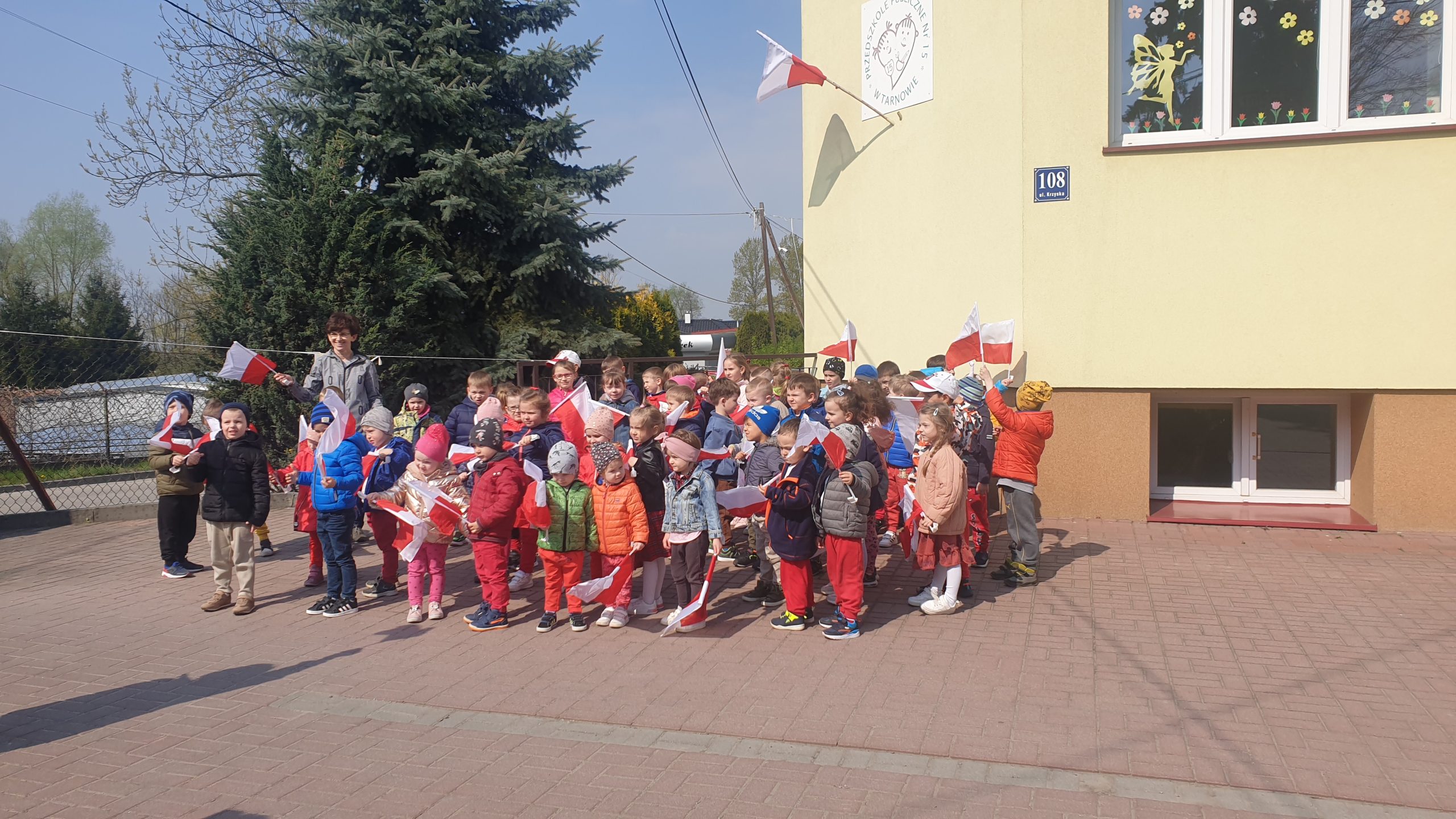 Nasze przedszkole wzięło udział w tegorocznej akcji organizowanej przez Biuro Programu „Niepodległa” #mojaflaga. Dzieci ze wszystkich grup włączyły się do akcji poprzez wyjście na plac przedszkolny z flagami Polski w rękach i wykonaniu wspólnego zdjęcia pod flagą znajdującą się na budynku przedszkola.