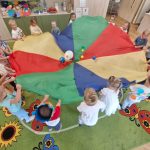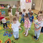 Dzień Kropki to wyjątkowe święto odwagi, kreatywności i odkrywania talentów. To właśnie wtedy każde dziecko ma szansę przekonać się, że nawet mała kropka może być początkiem wielkich rzeczy. Podczas dzisiejszych zabaw 🎨 malowaliśmy kropeczki paluszkami, rozwijając przy tym wyobraźnię i sprawność manualną, śpiewaliśmy piosenkę „Podajemy kropki” – uczyliśmy się współpracy w kole, podając sobie kropkę i rozróżniając części ciała poprzez zabawę. Nie zabrakło też ćwiczeń ruchowych z  kolorowymi piłeczkami przypominającymi kropkę.